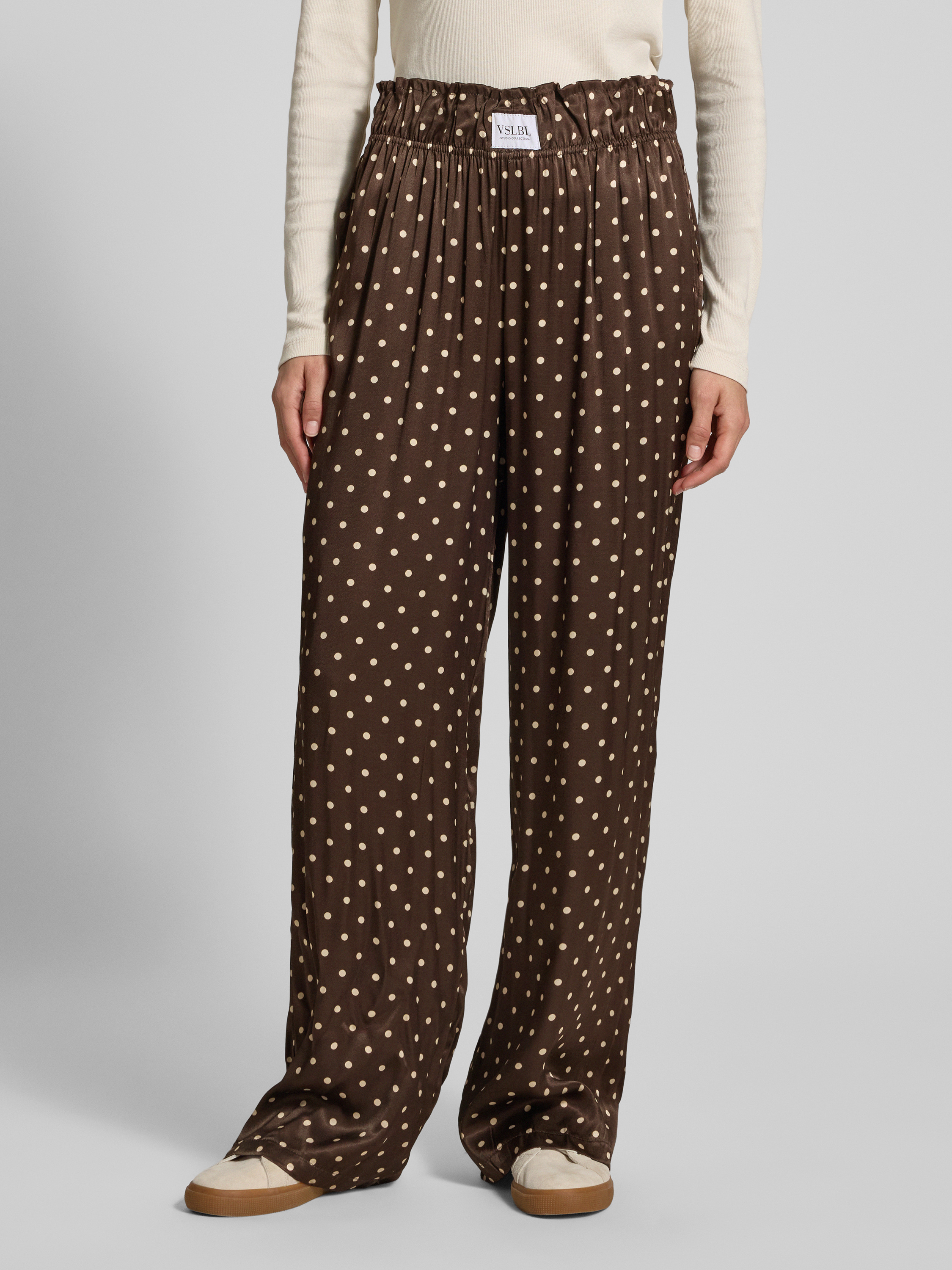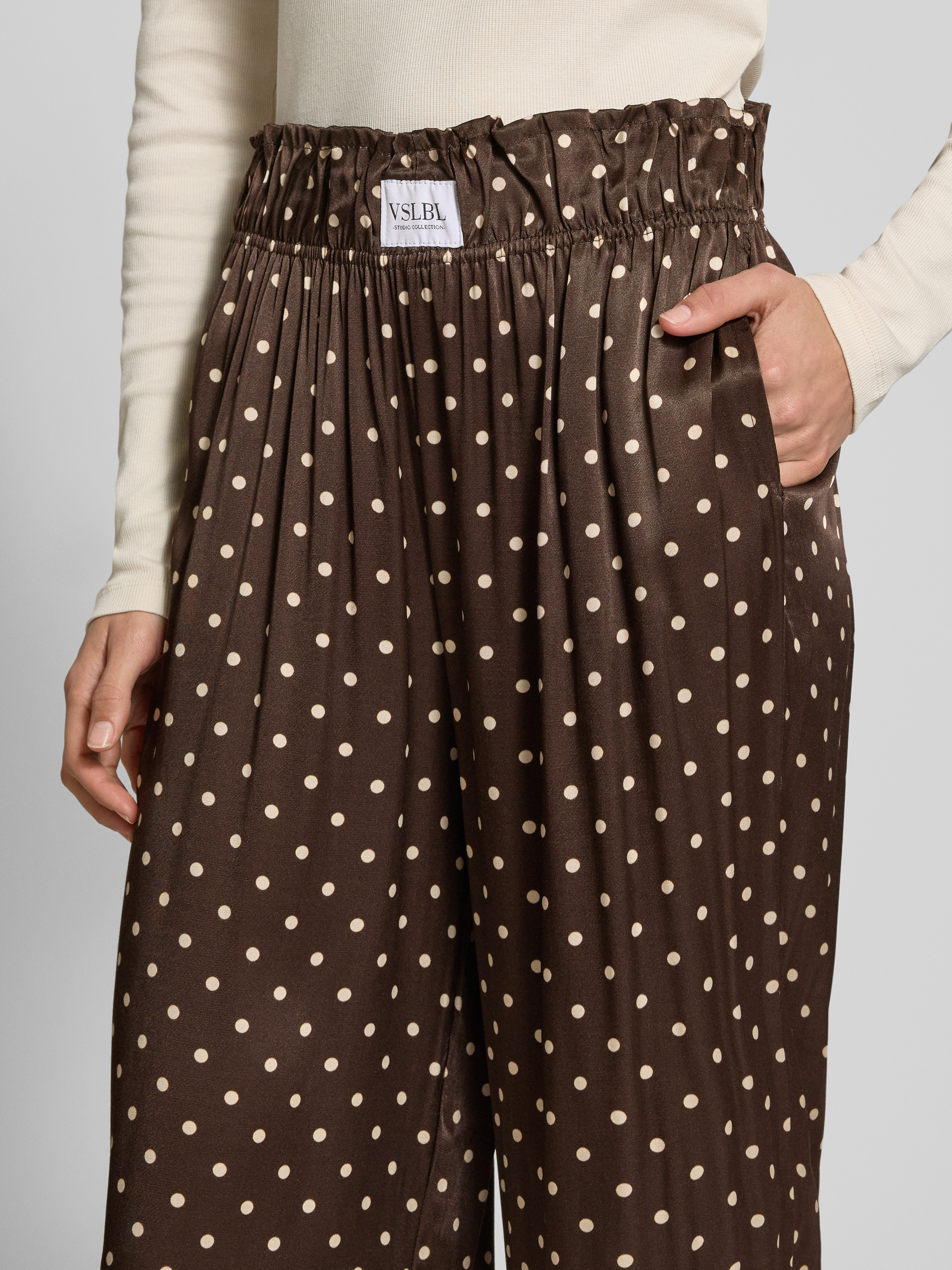 Wide leg stoffen broek van viscosesatijn, model 'ELODIE' in donkerbruin
