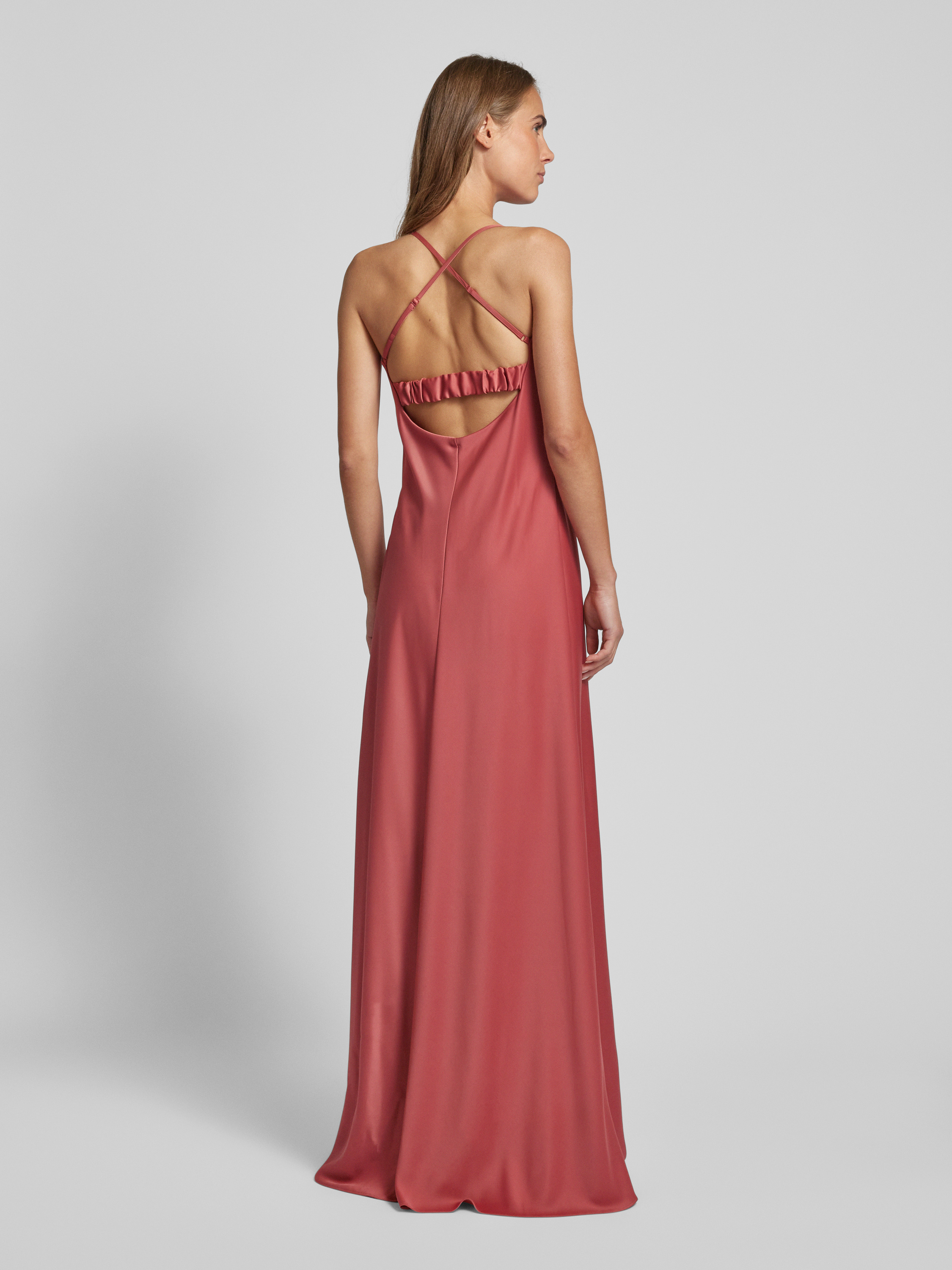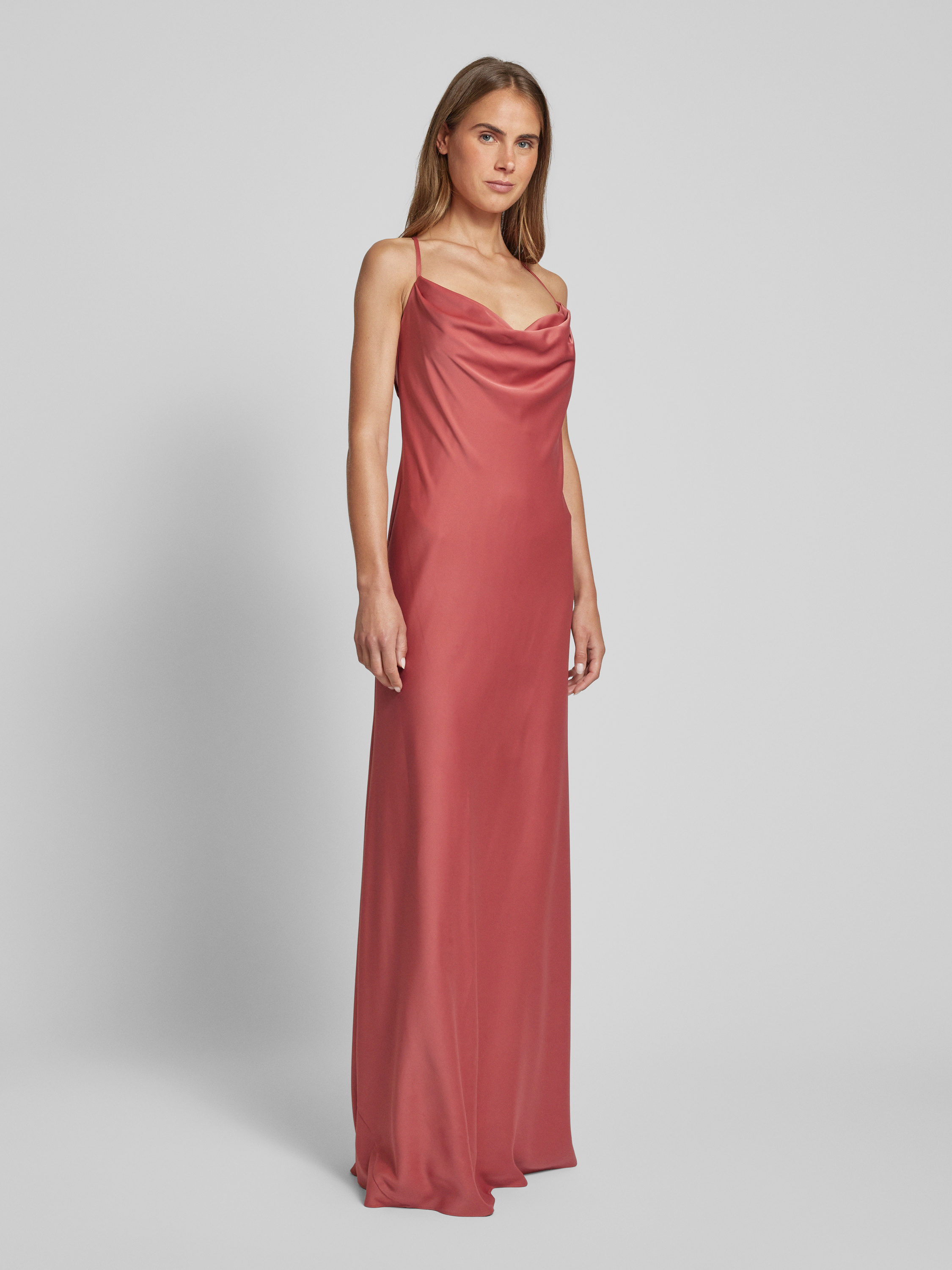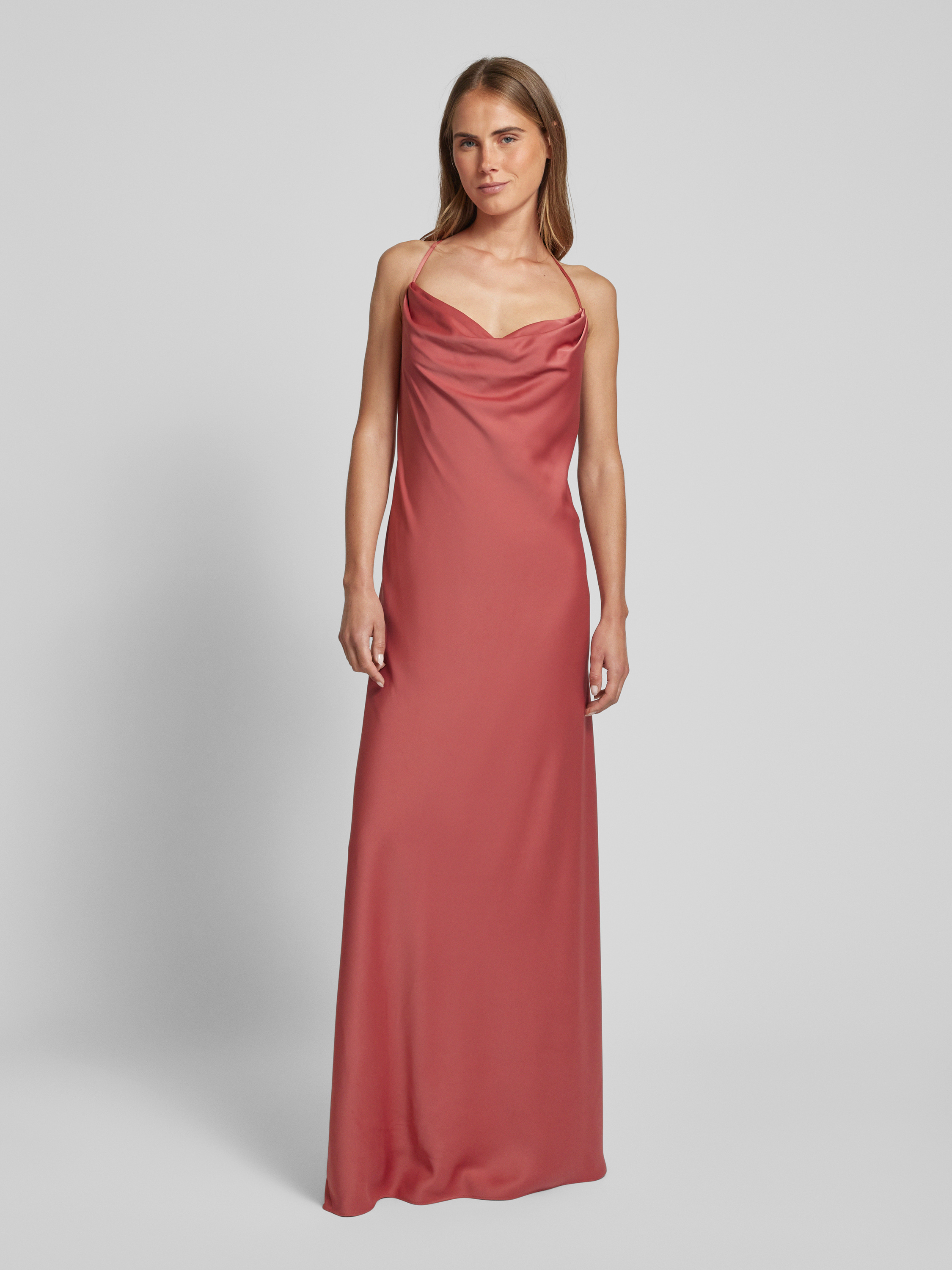 • V.M. Avondjurk met cascadehals Terracotta