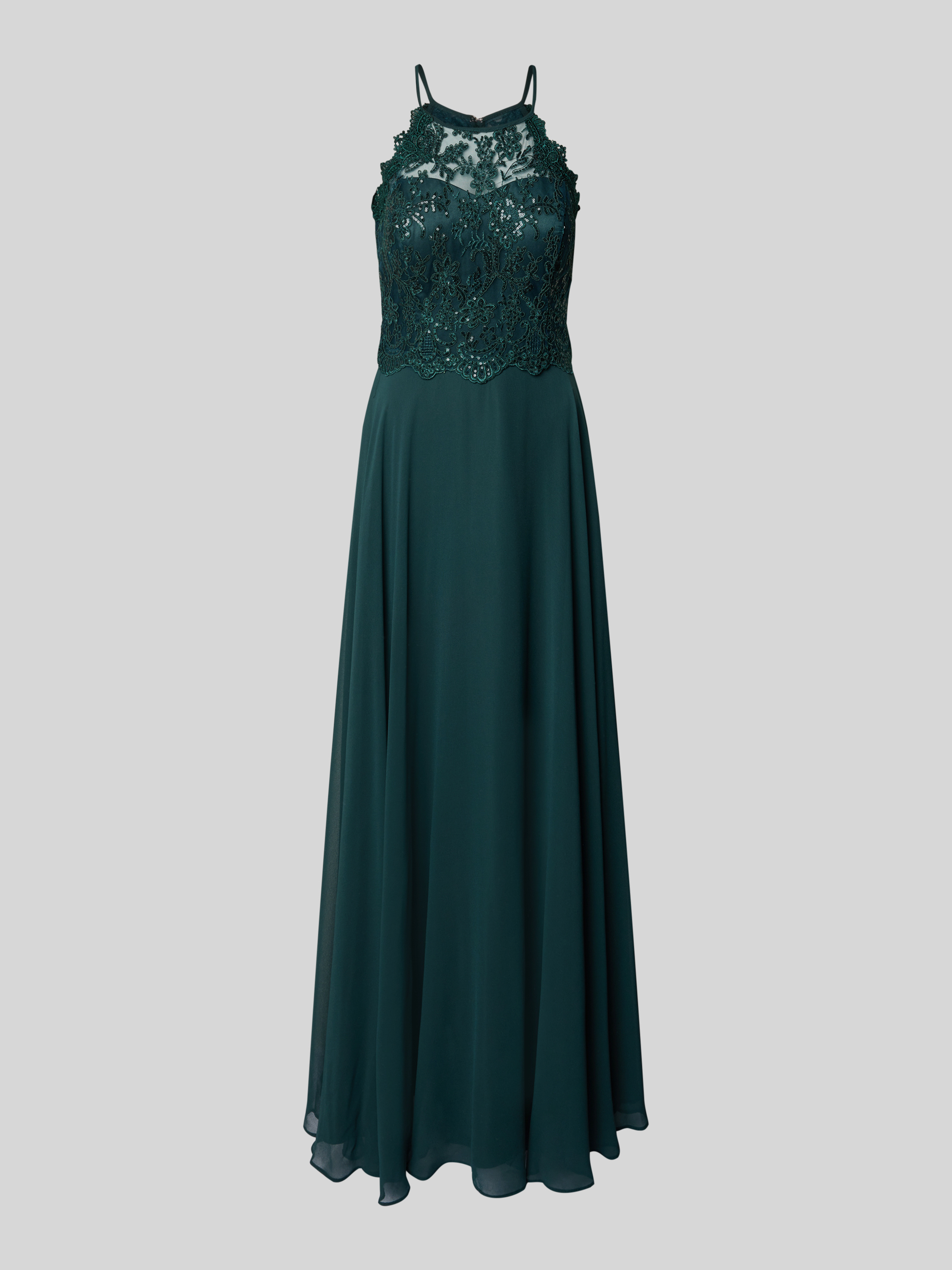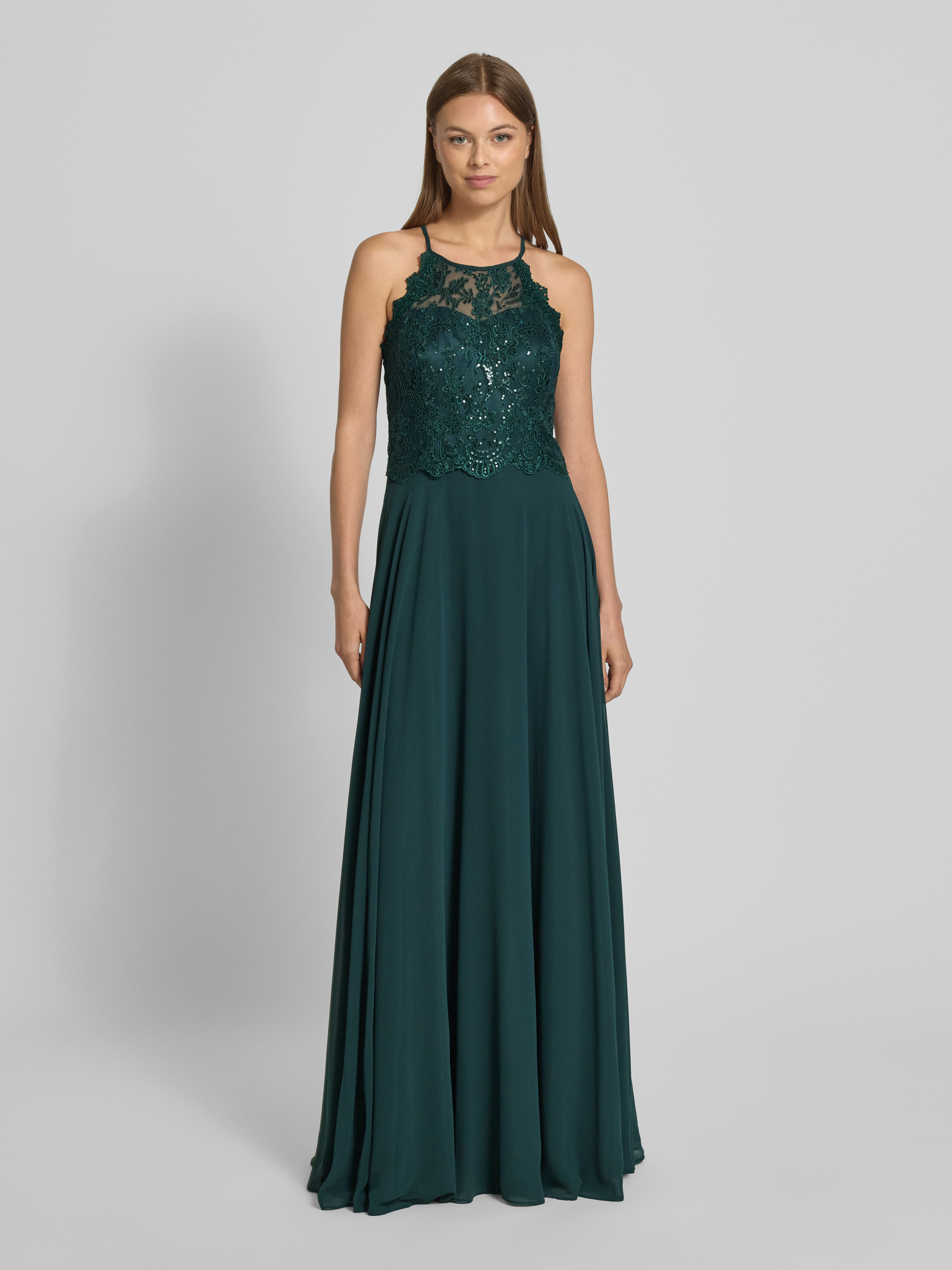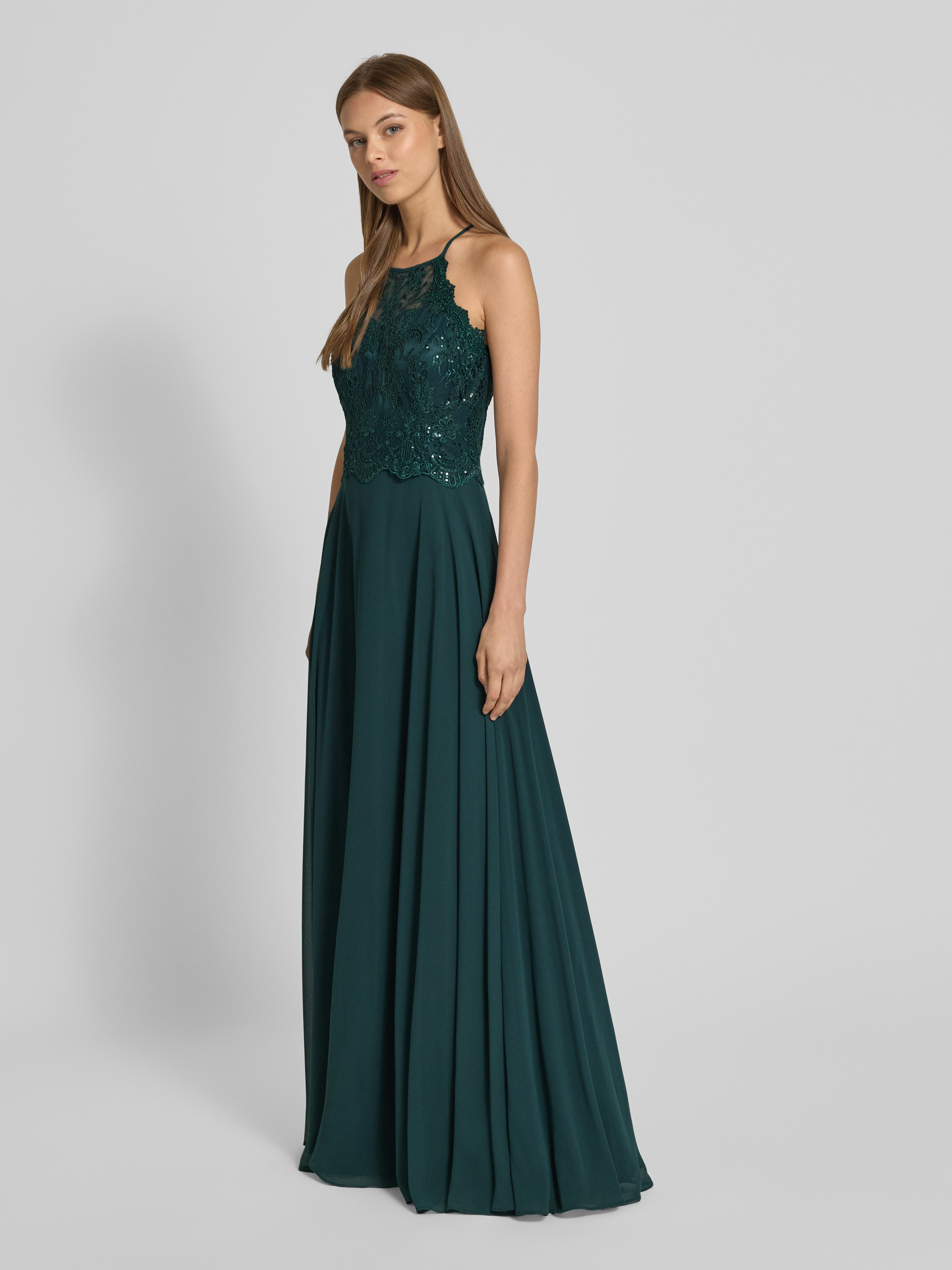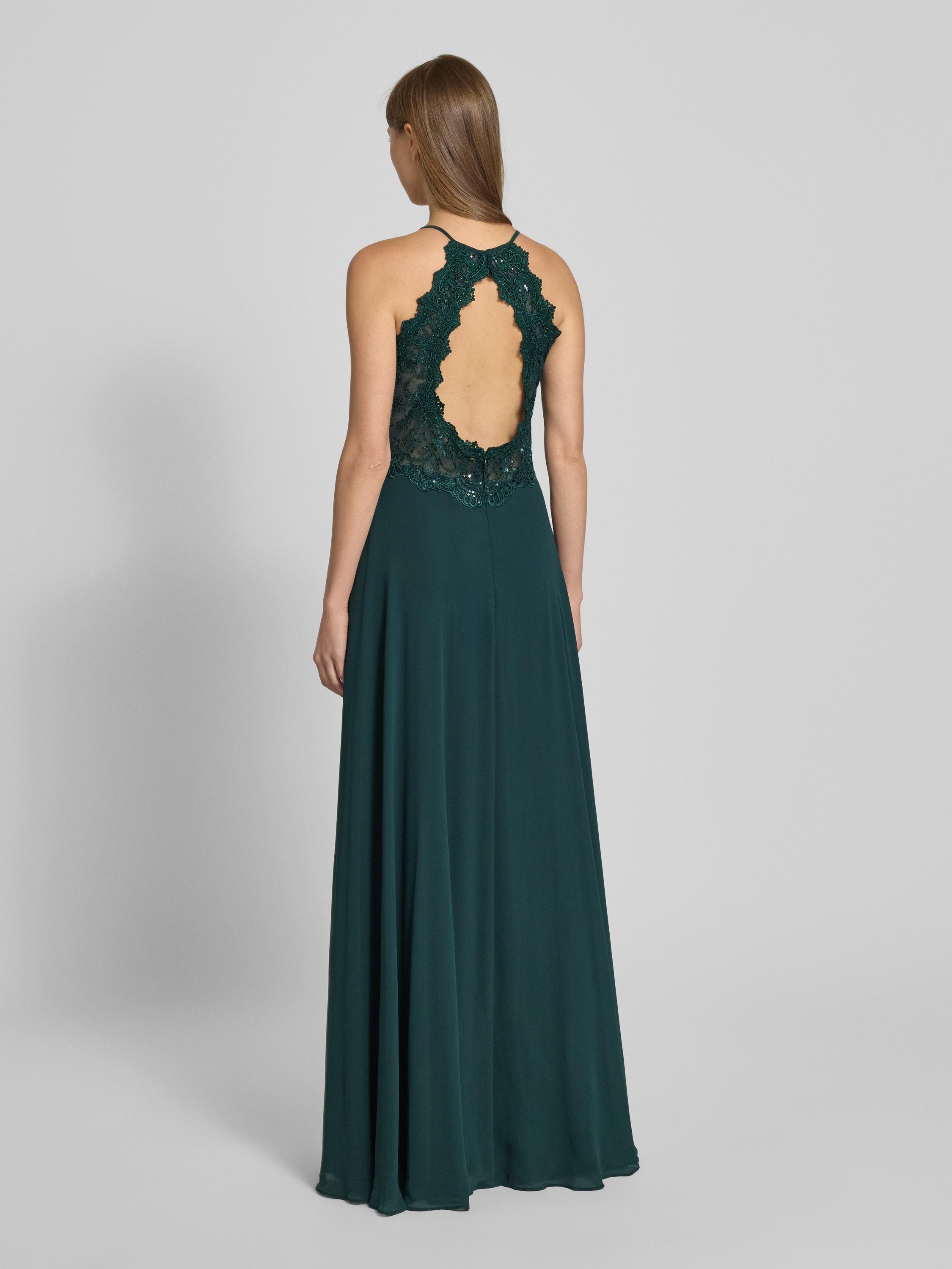 V.M.Avondjurk met kant en cut-out op de rug in donkergroen