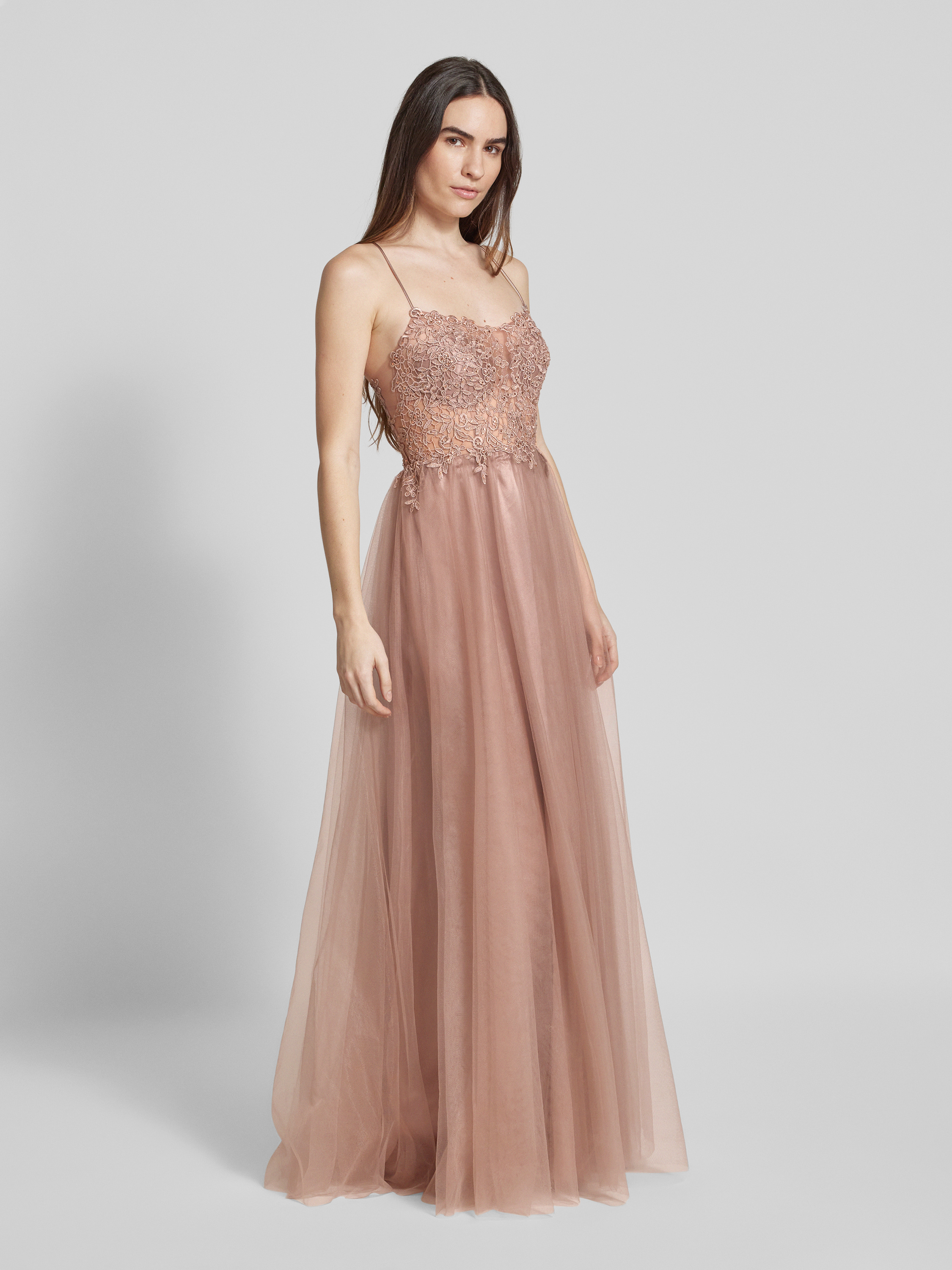 Avondjurk met kant in rosé