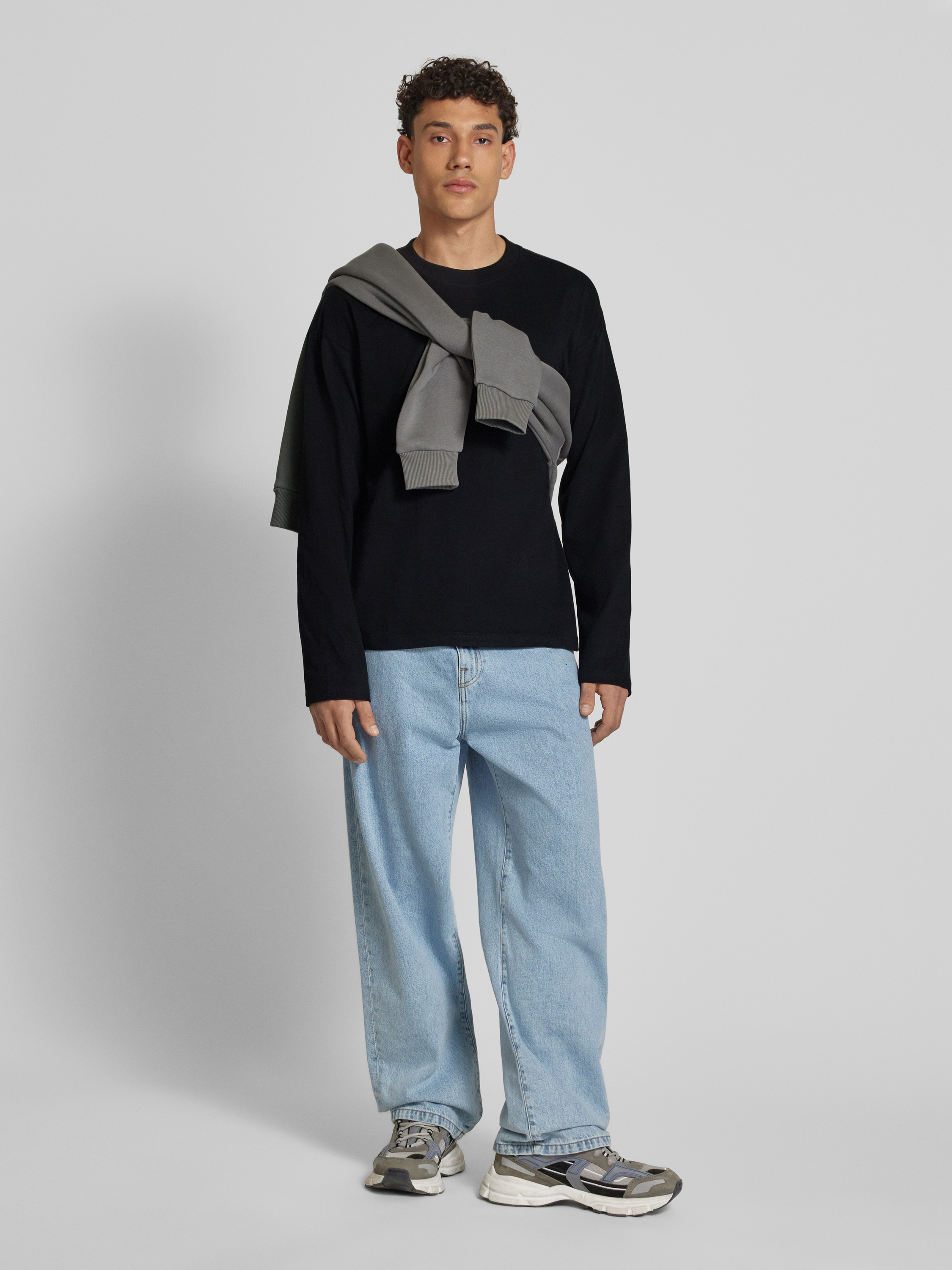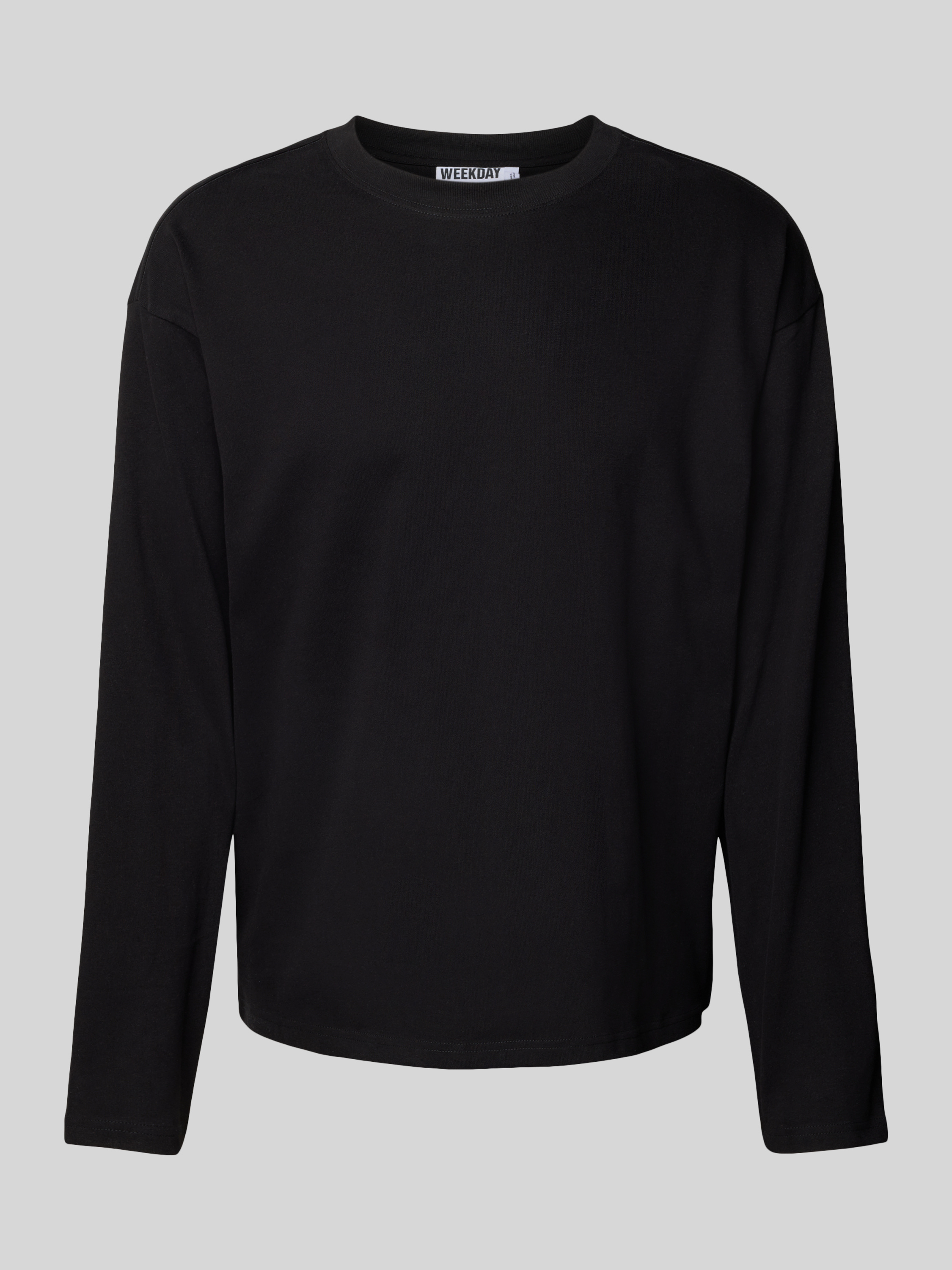 Shirt met lange mouwen en geribde ronde hals in zwart