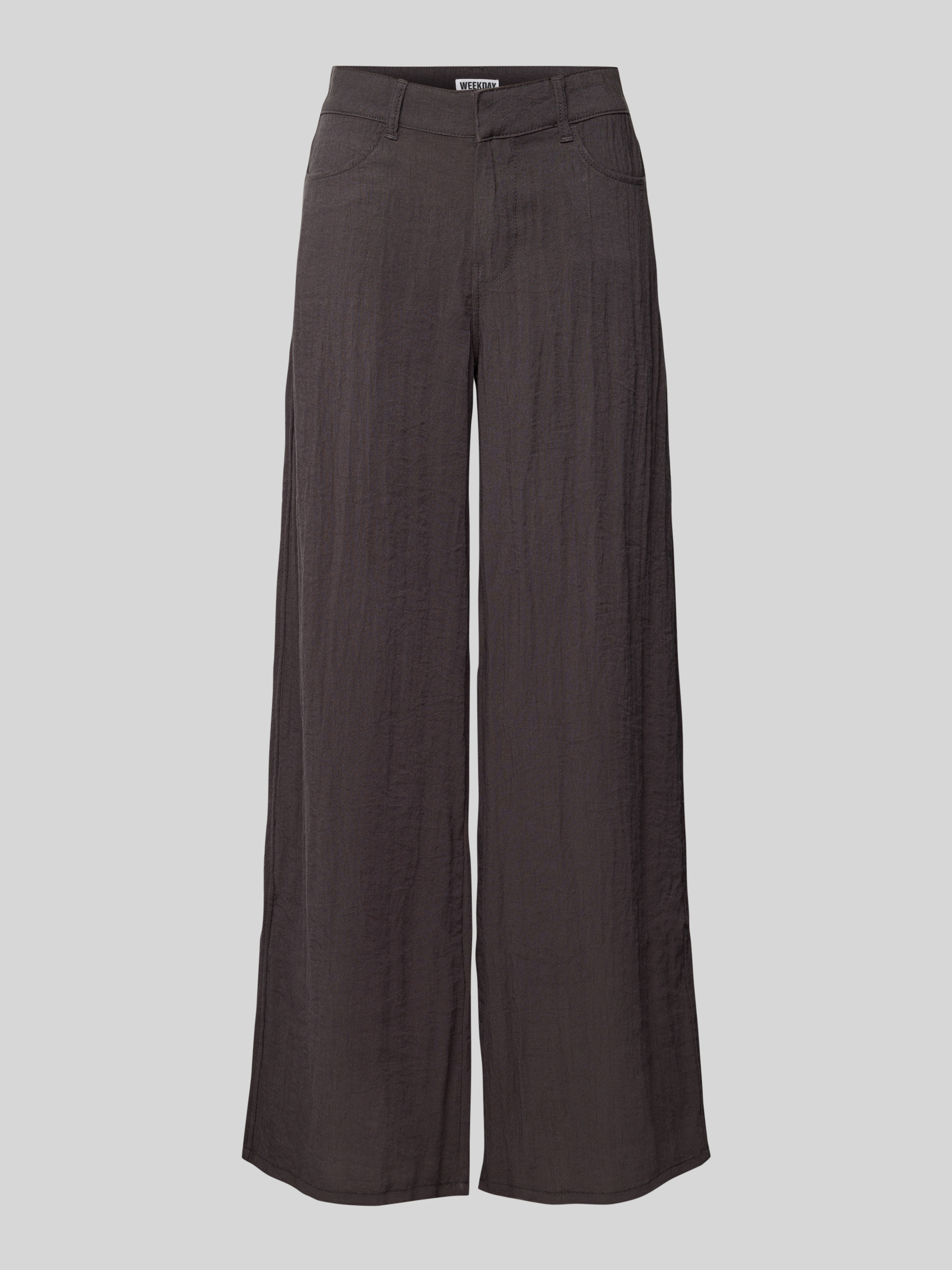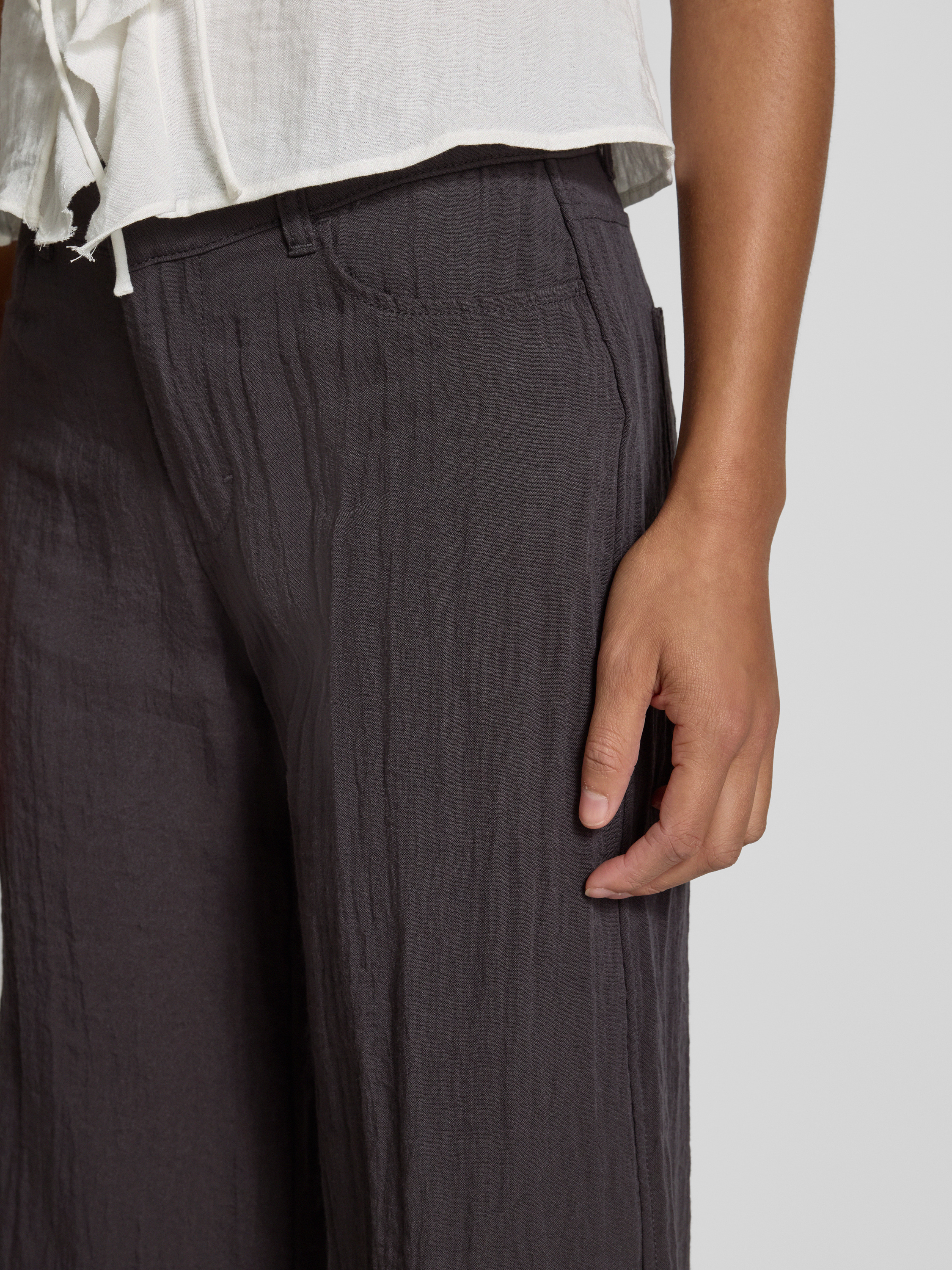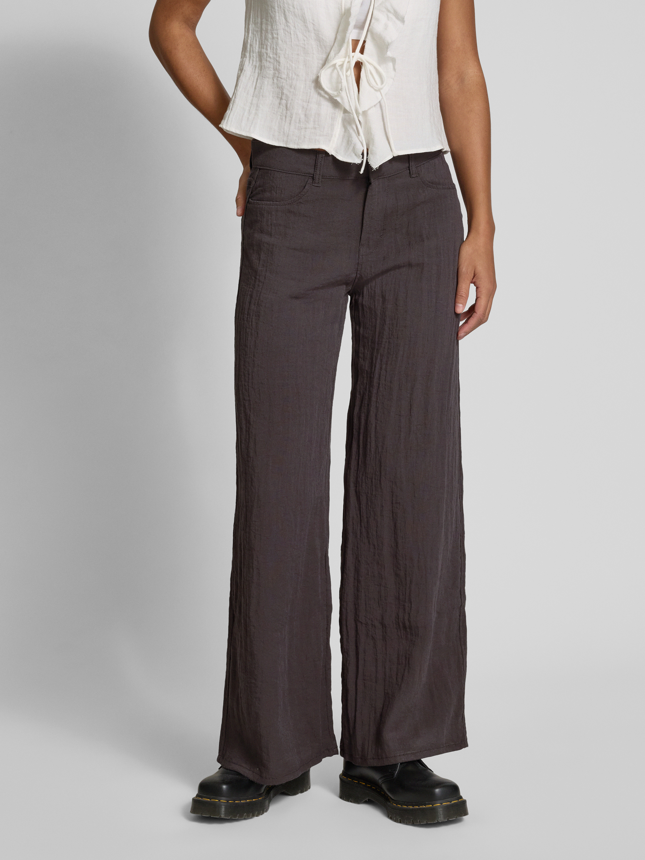 Wide leg stoffen broek in kreuklook, model 'Sander' in zwart
