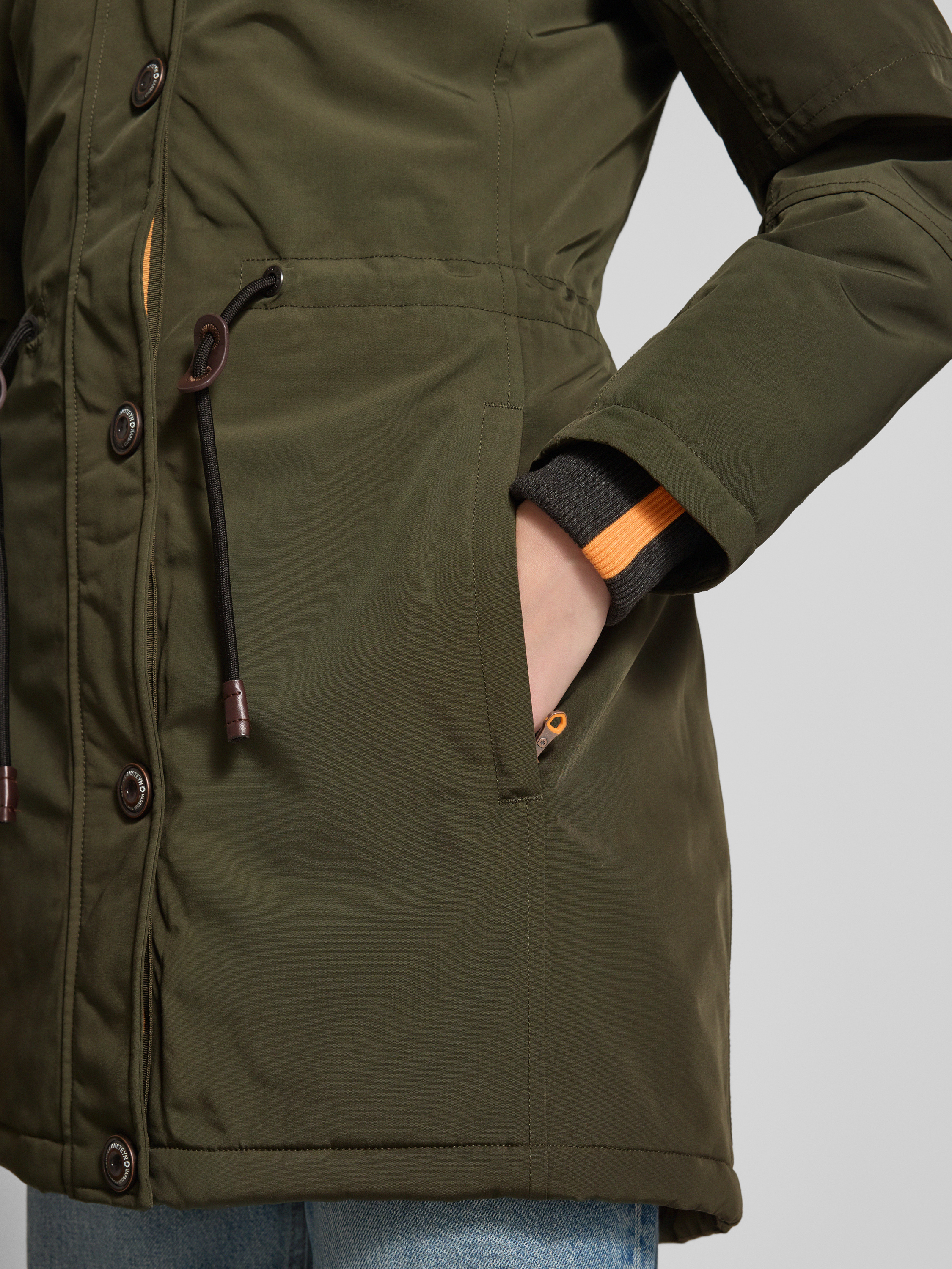 Parka met imitatiebont, model 'Wolkenlos' in olijfgroen