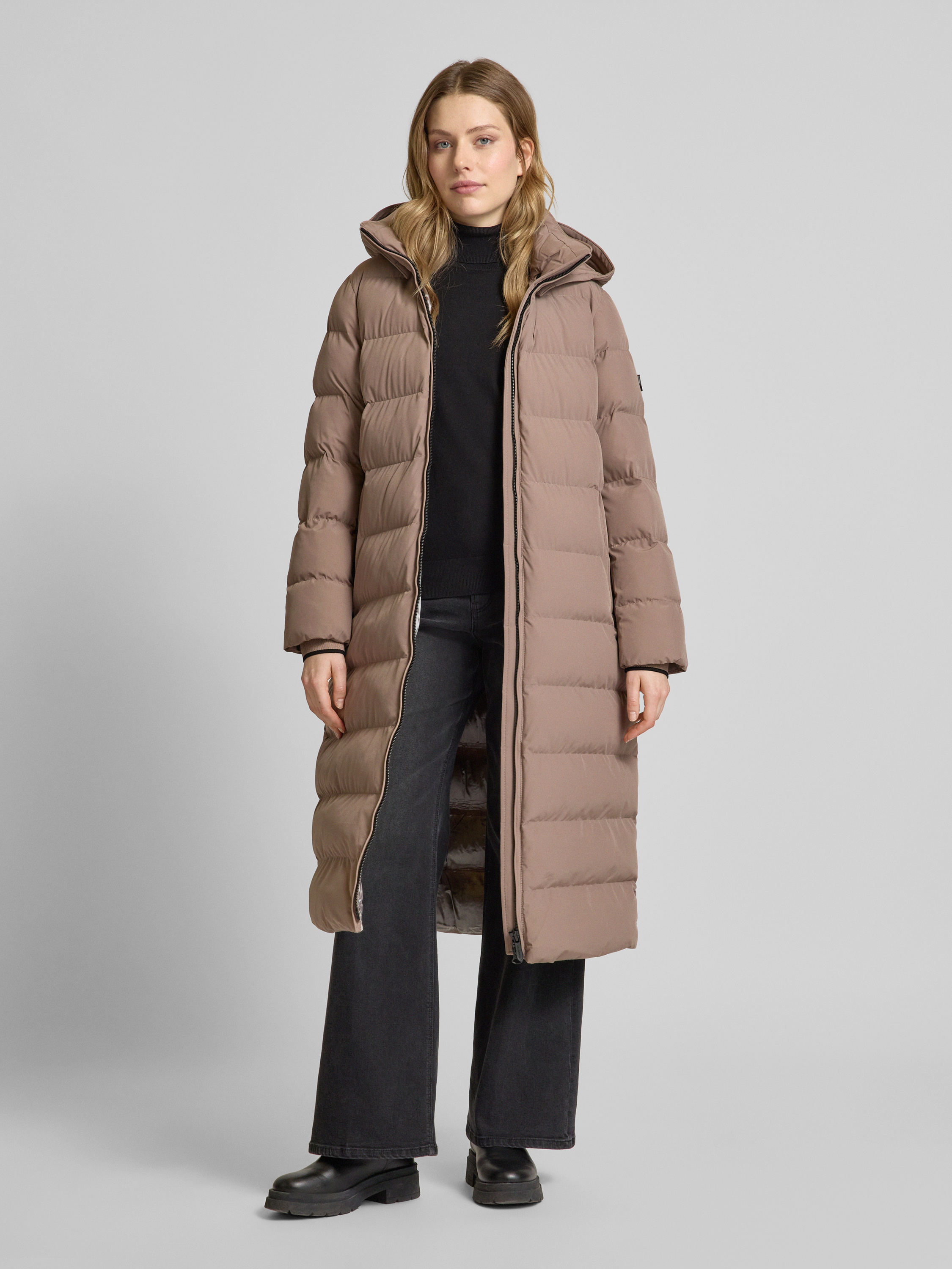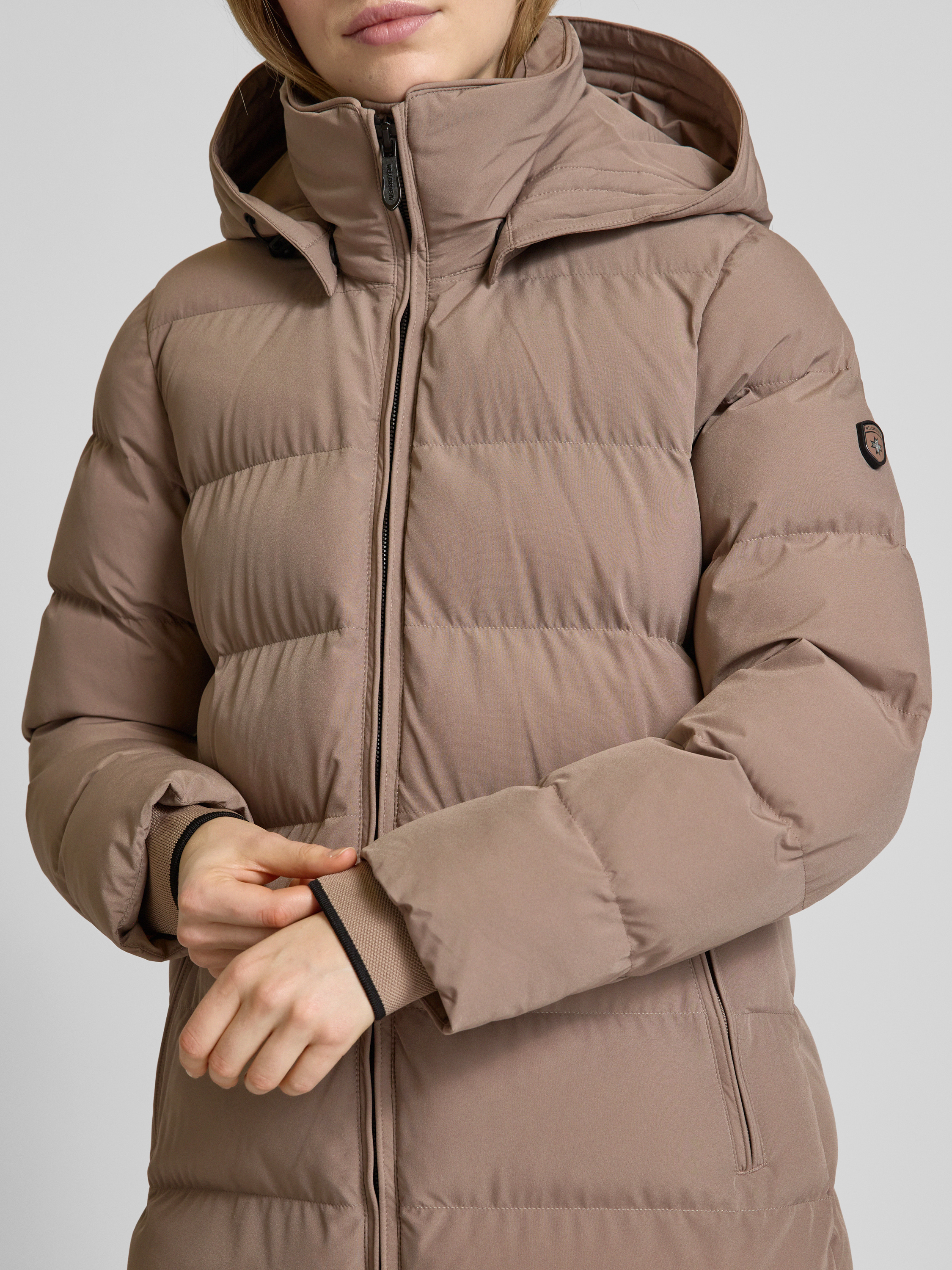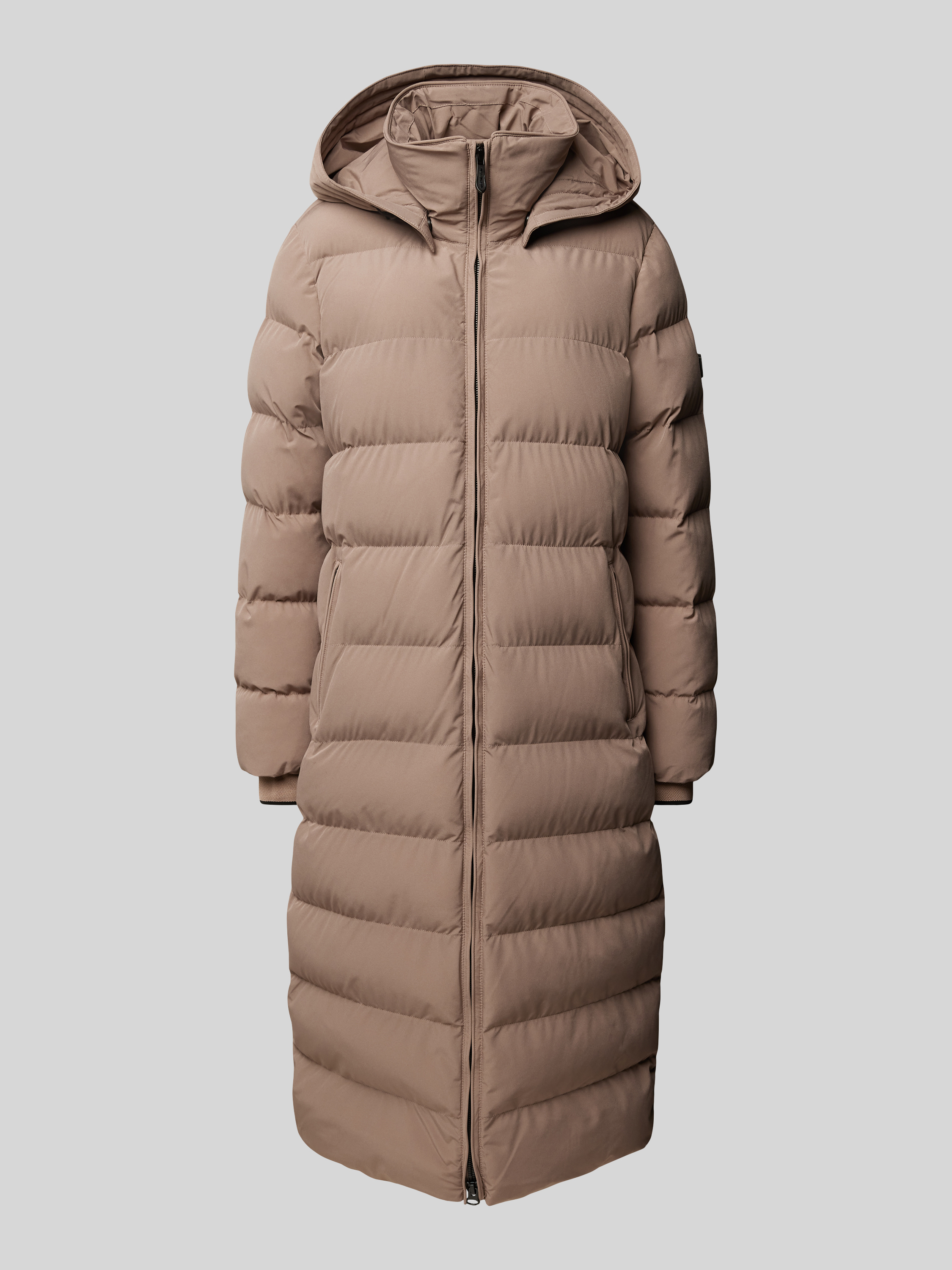 Regular fit gewatteerde lange jas met afneembare capuchon, model 'GOLDMINE' in zand