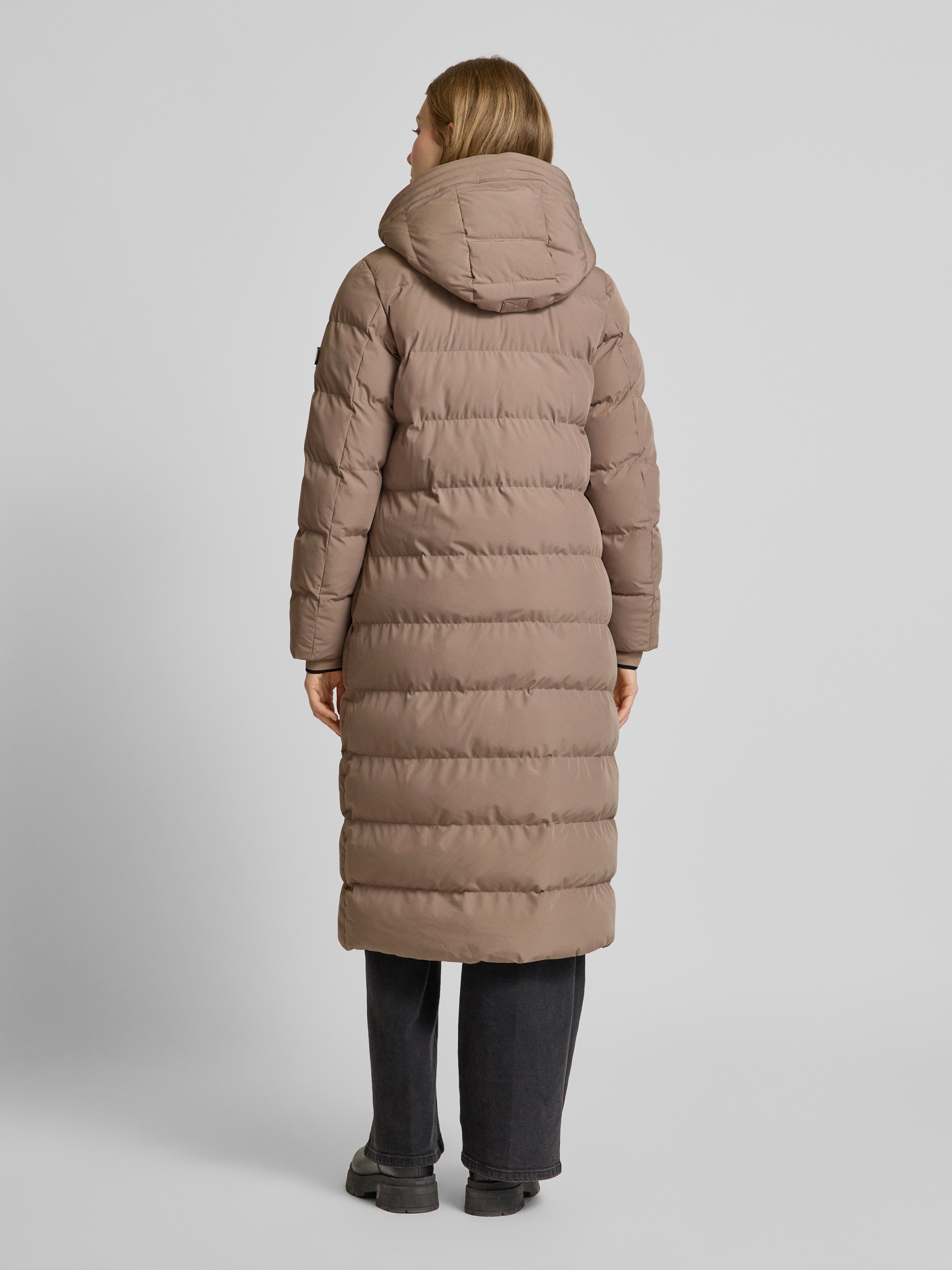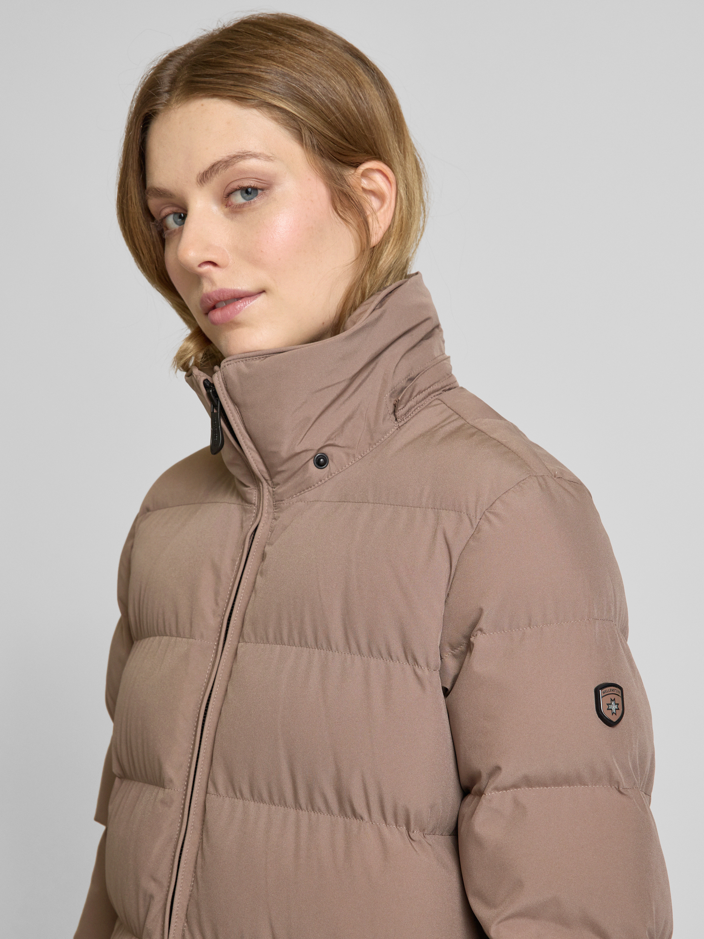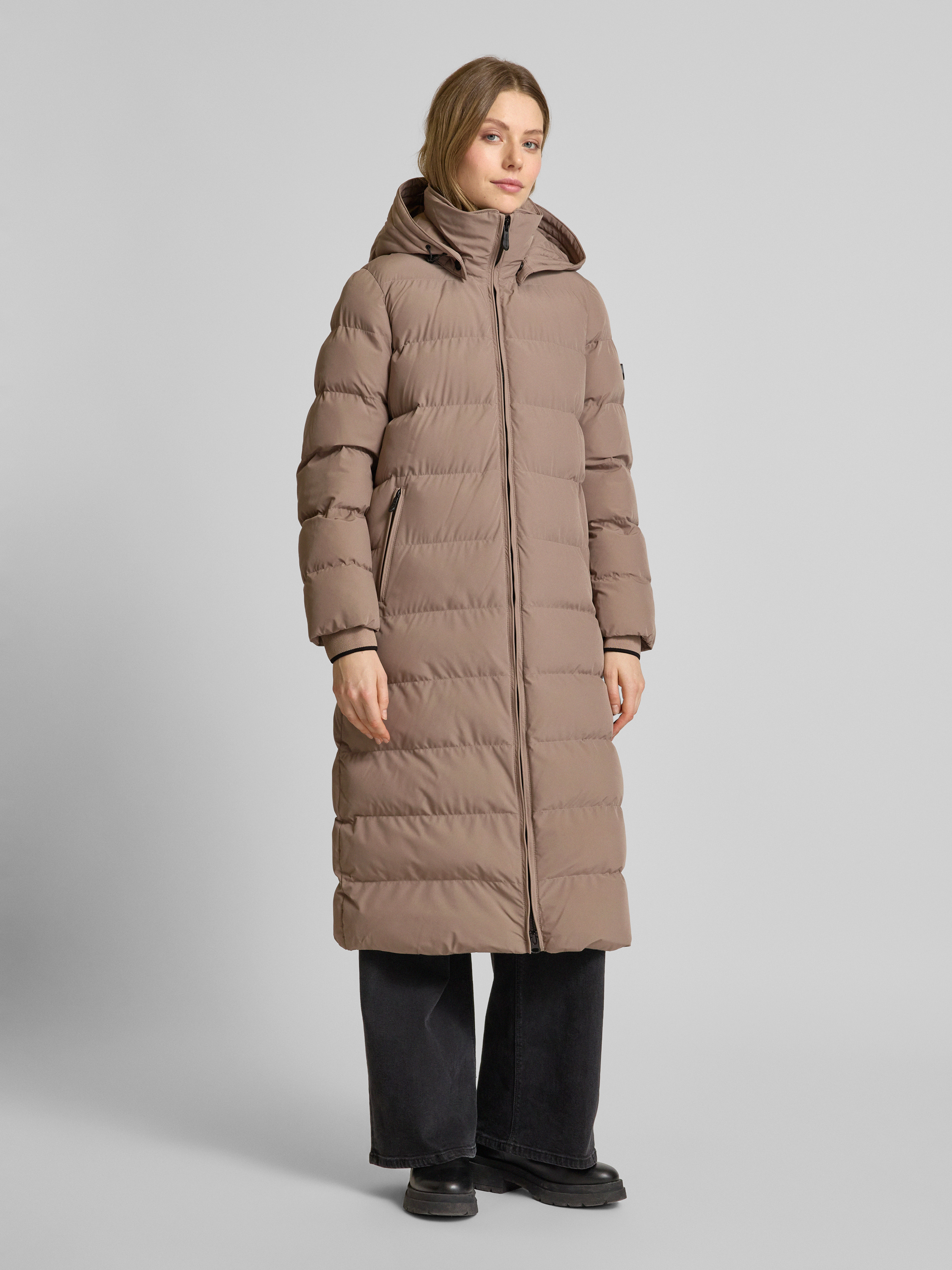 Regular fit gewatteerde lange jas met afneembare capuchon, model 'GOLDMINE' in zand