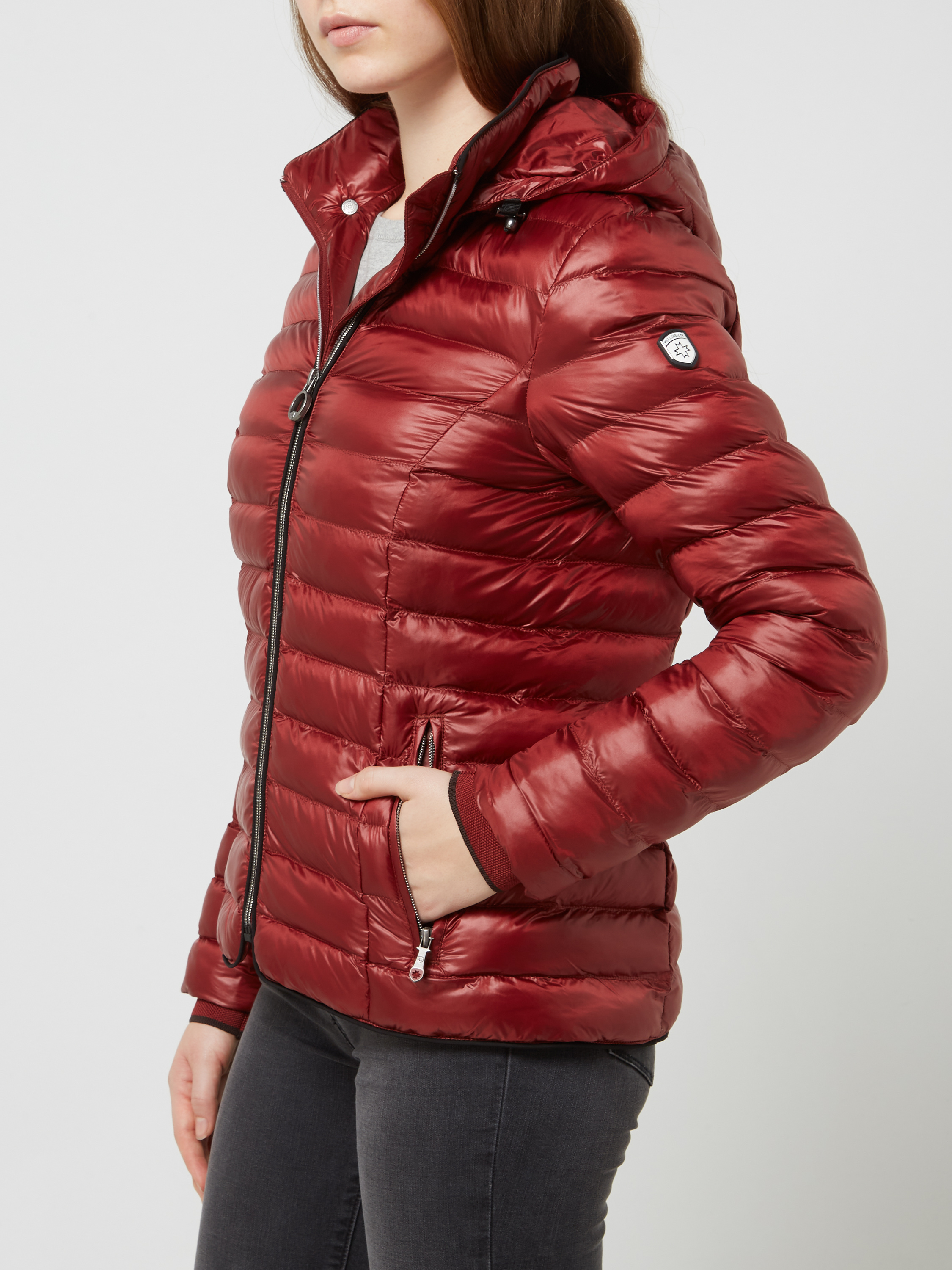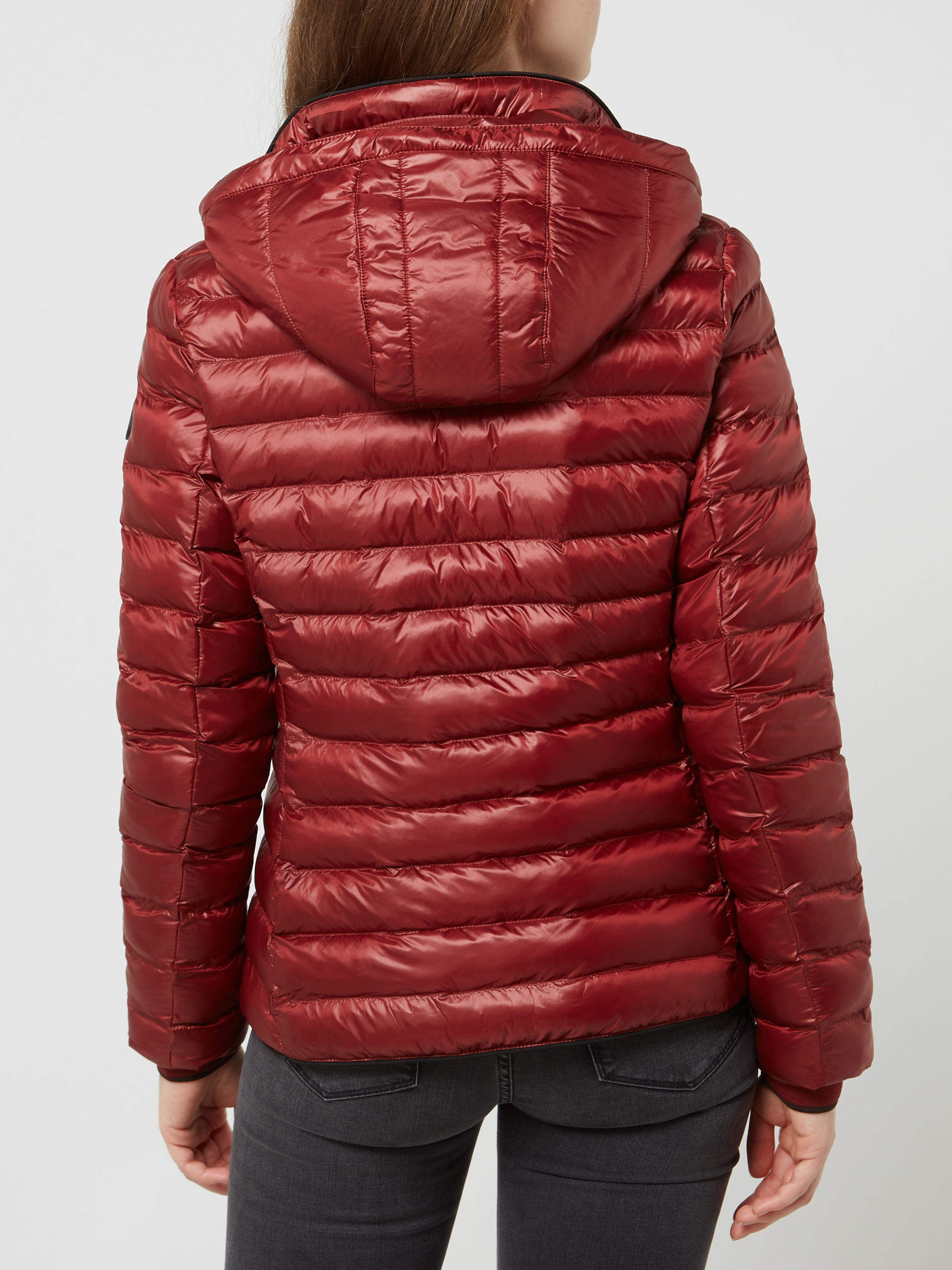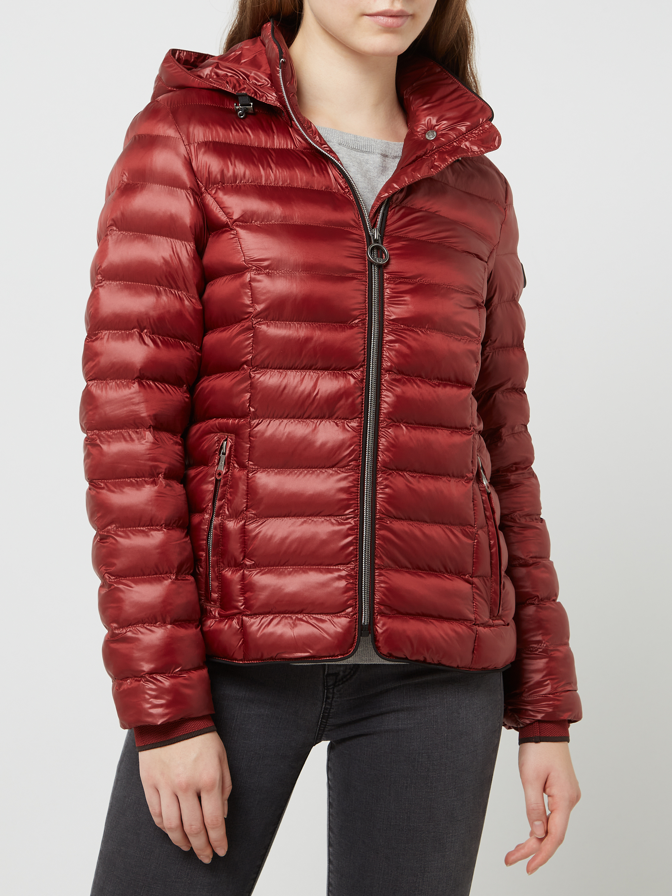 Shaped fit gewatteerd jack met afneembare capuchon, model 'ITALY HOOD' in lichtrood