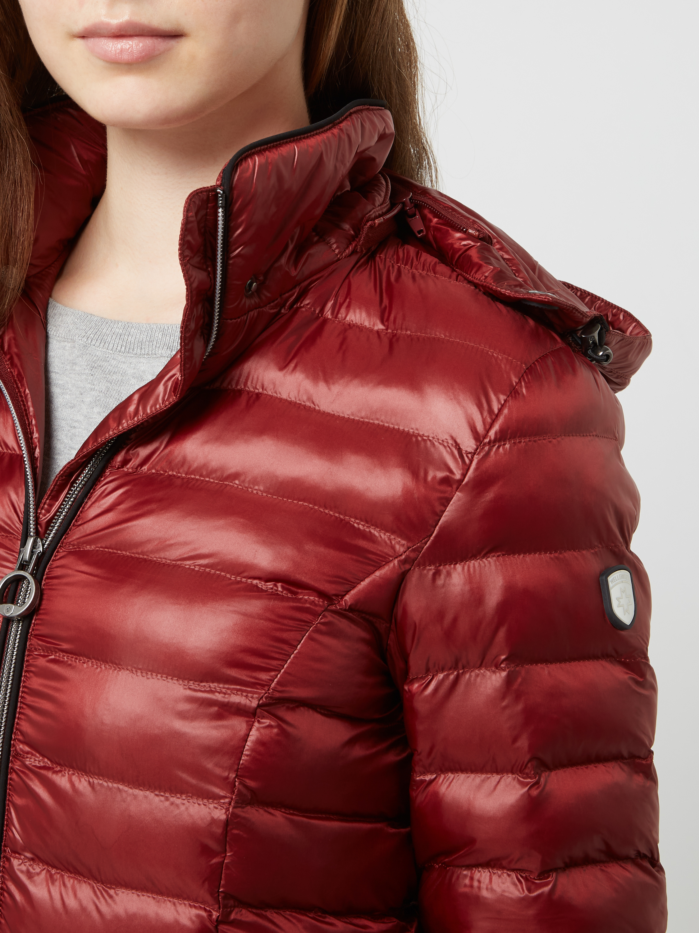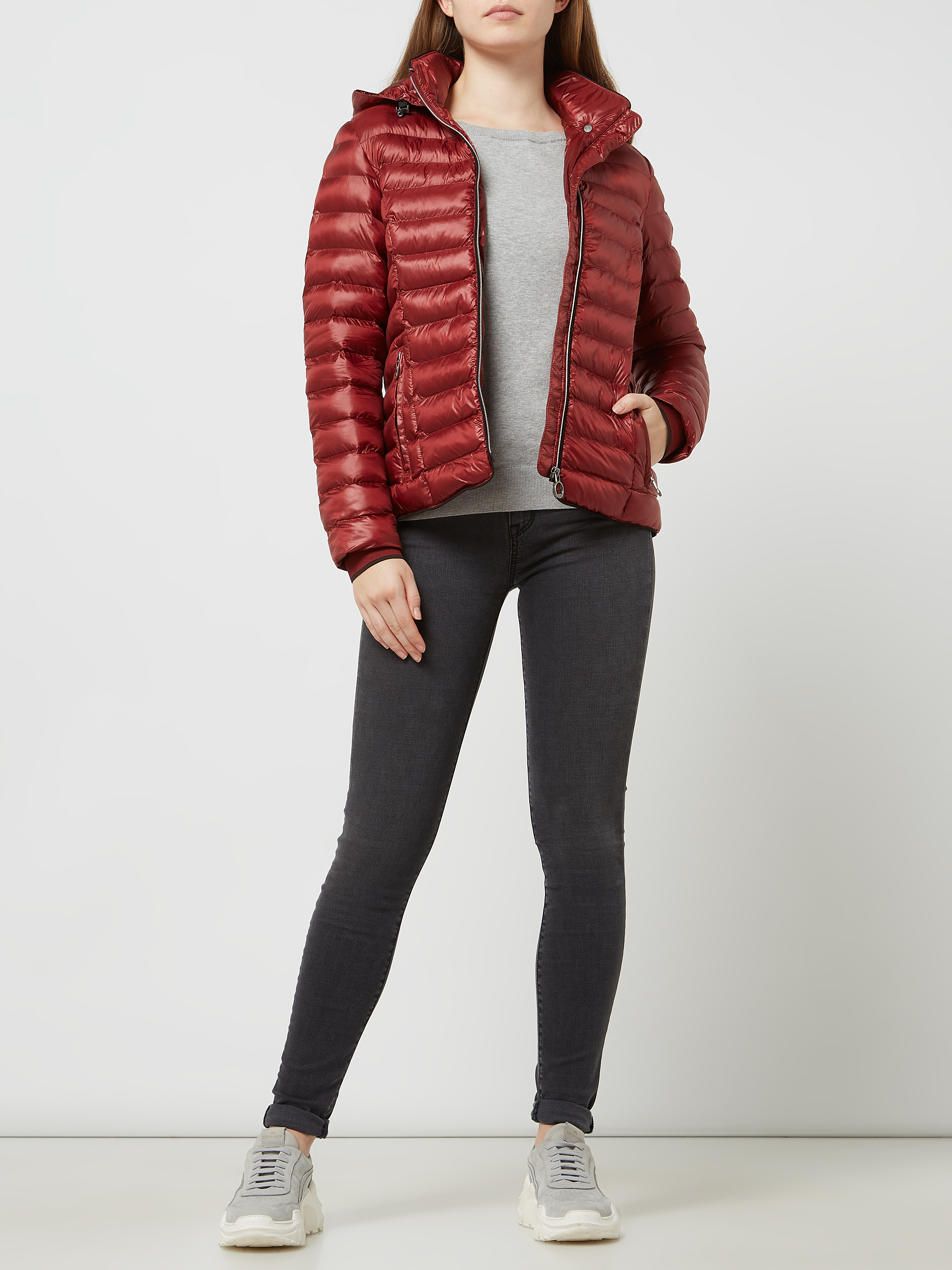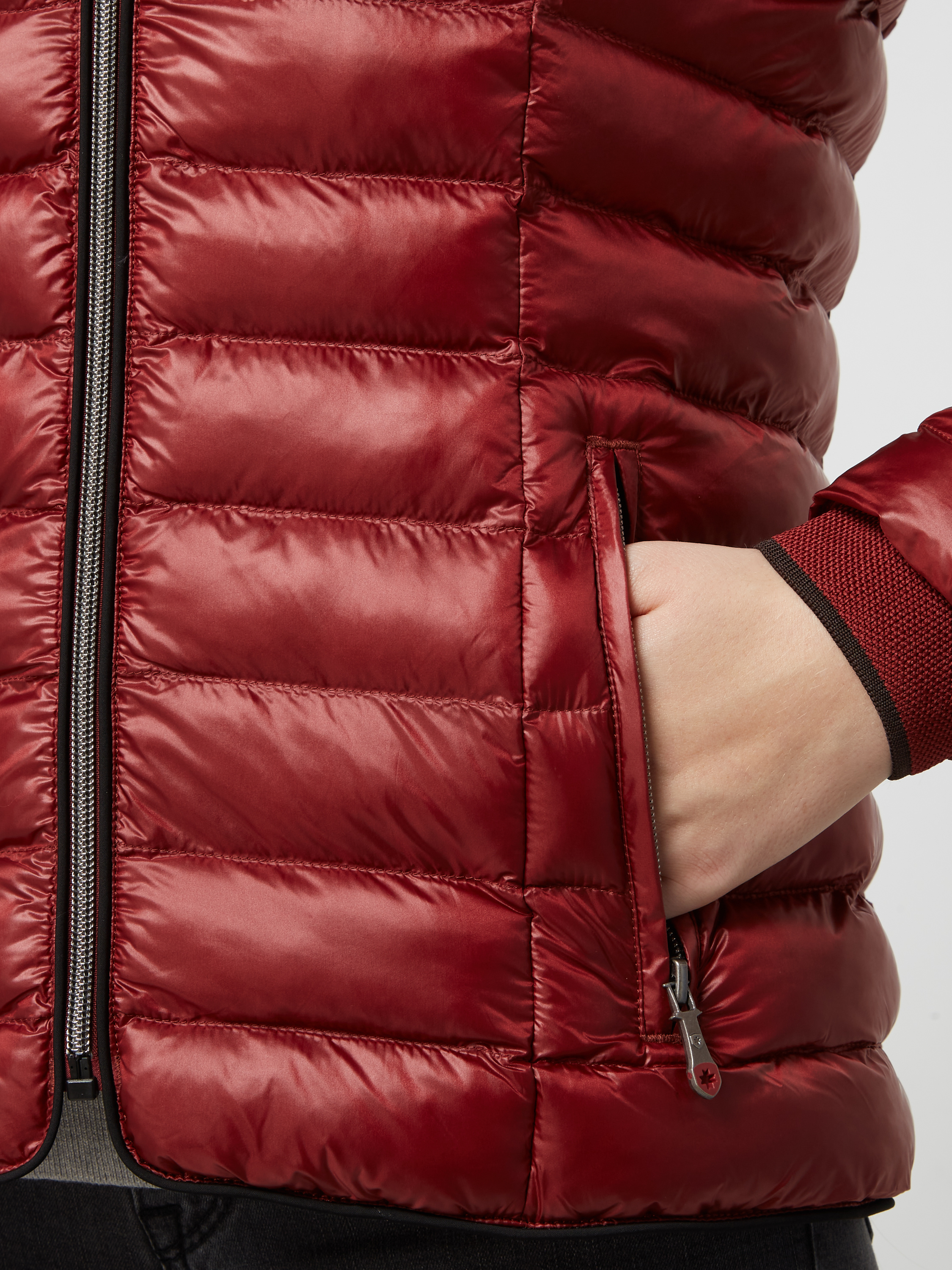 Shaped fit gewatteerd jack met afneembare capuchon, model 'ITALY HOOD' in lichtrood