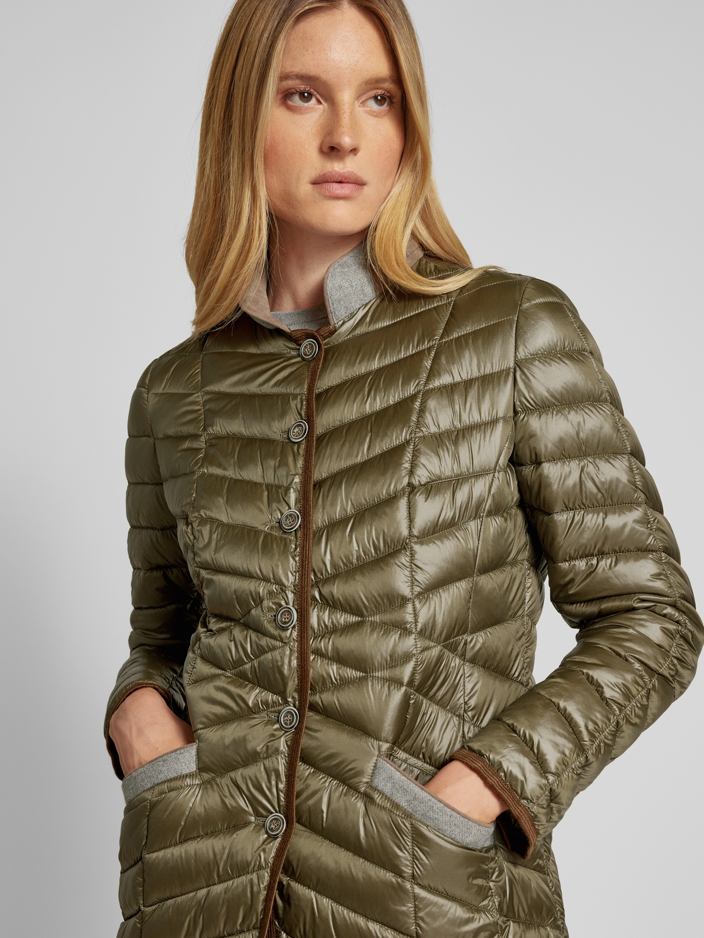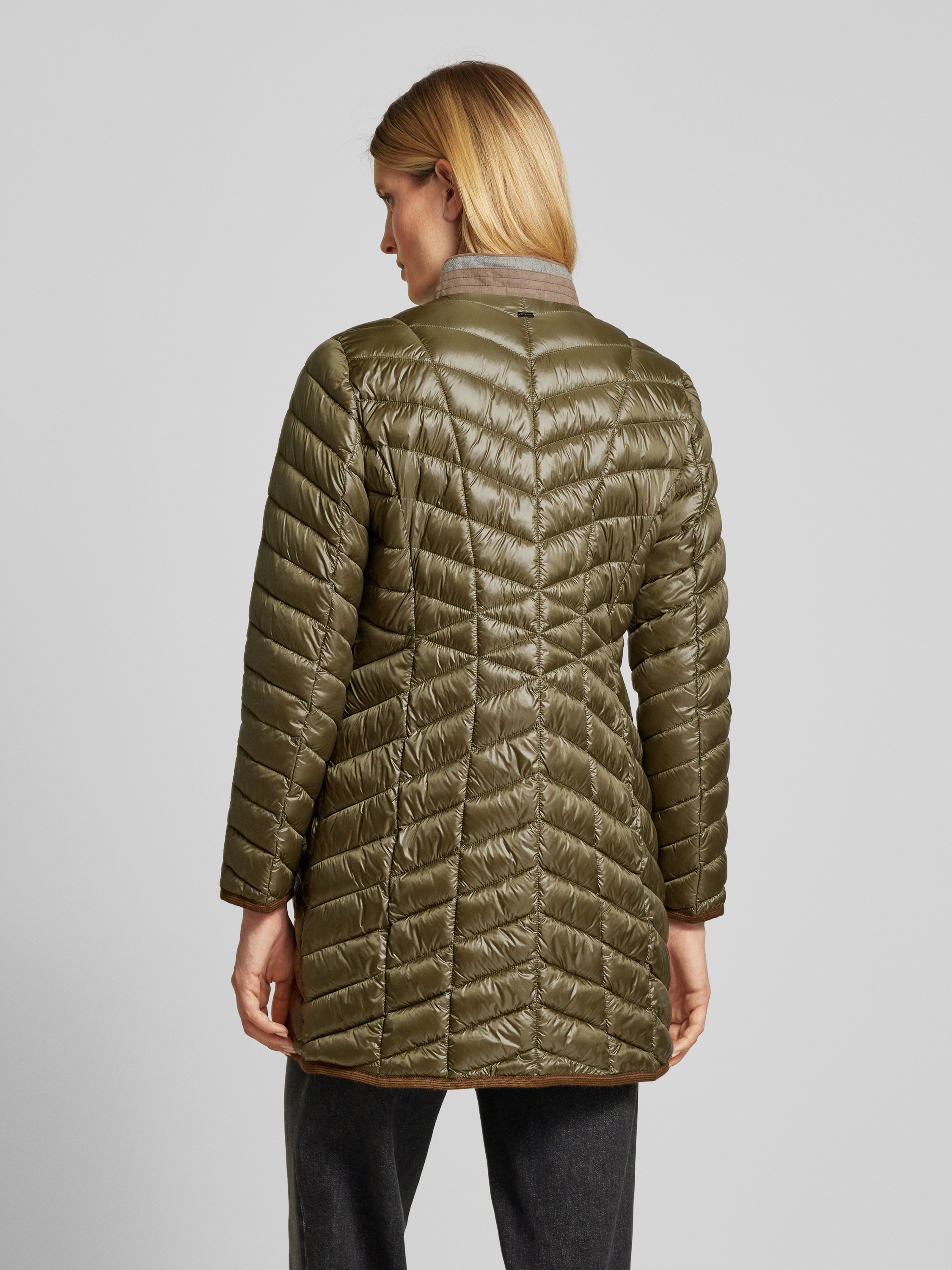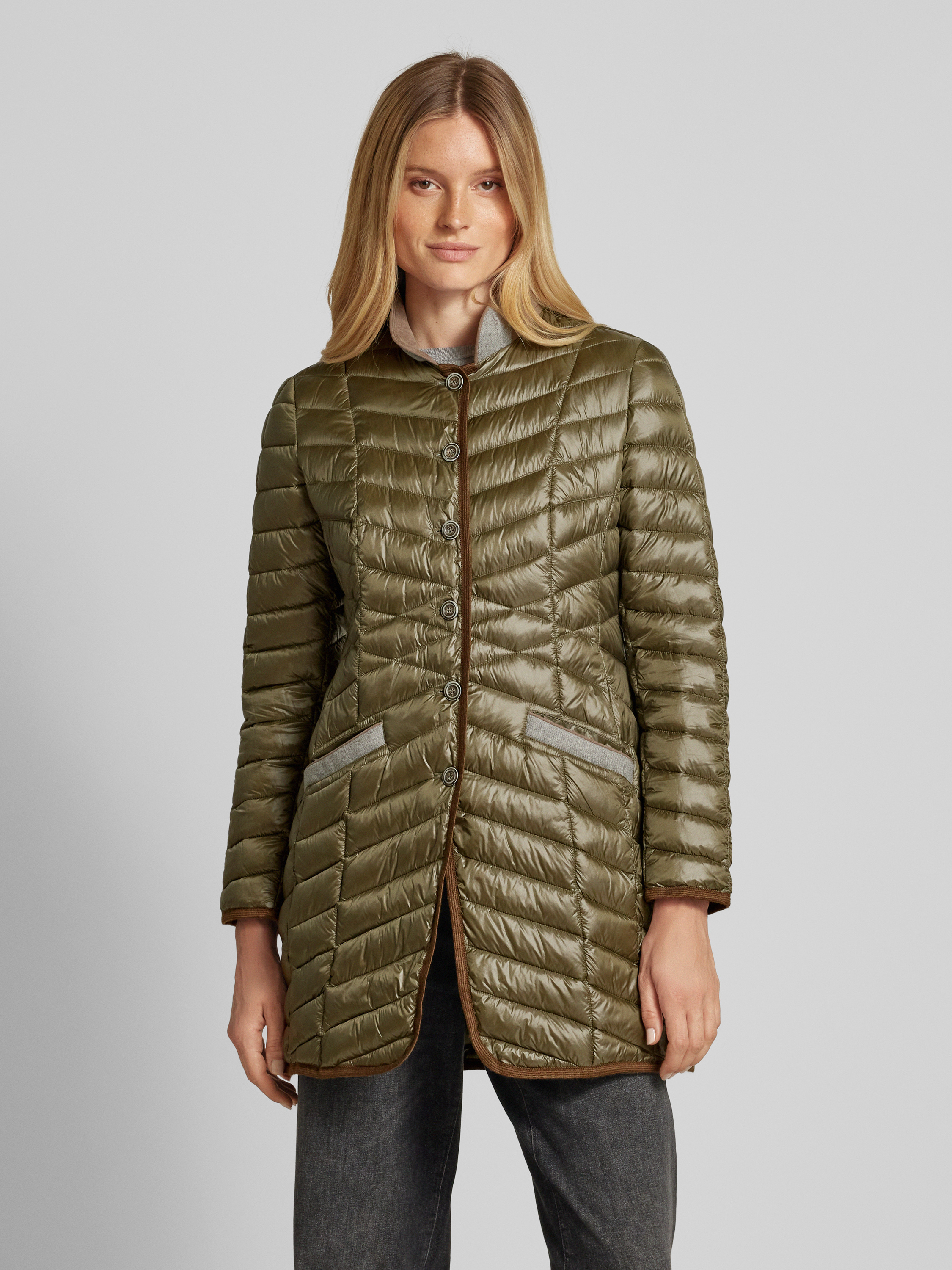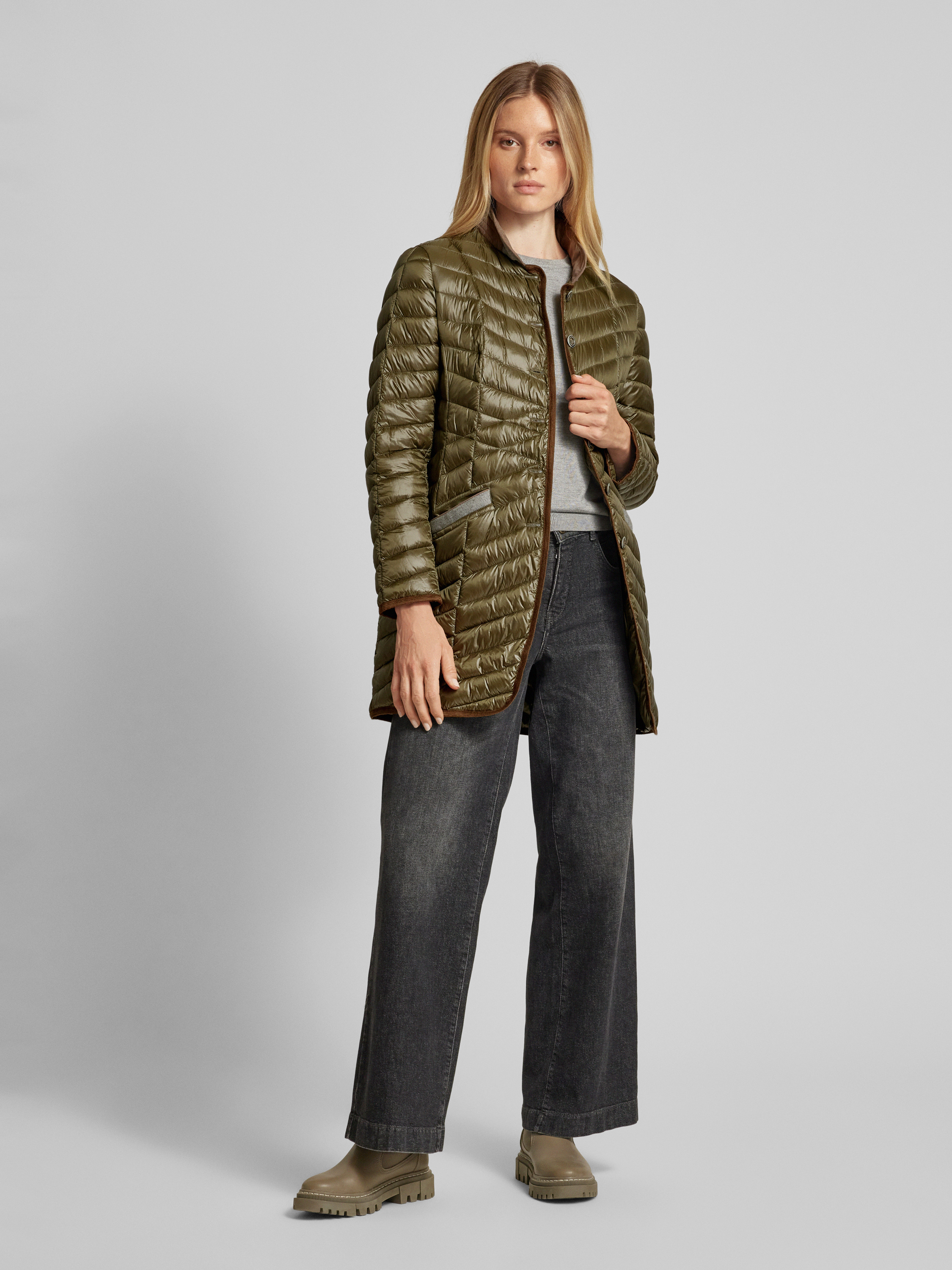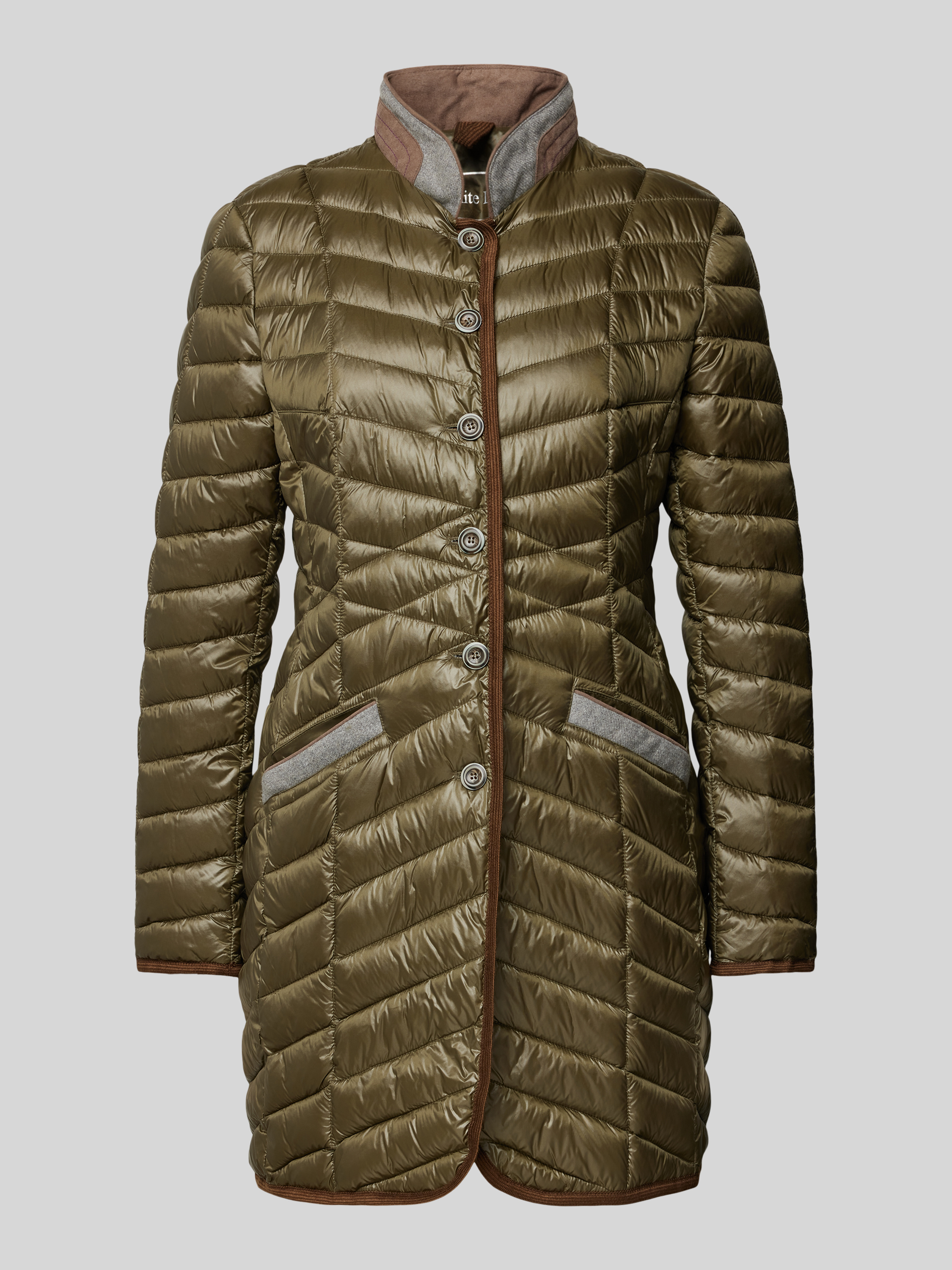 Doorgestikte mantel met opstaande kraag in olijfgroen