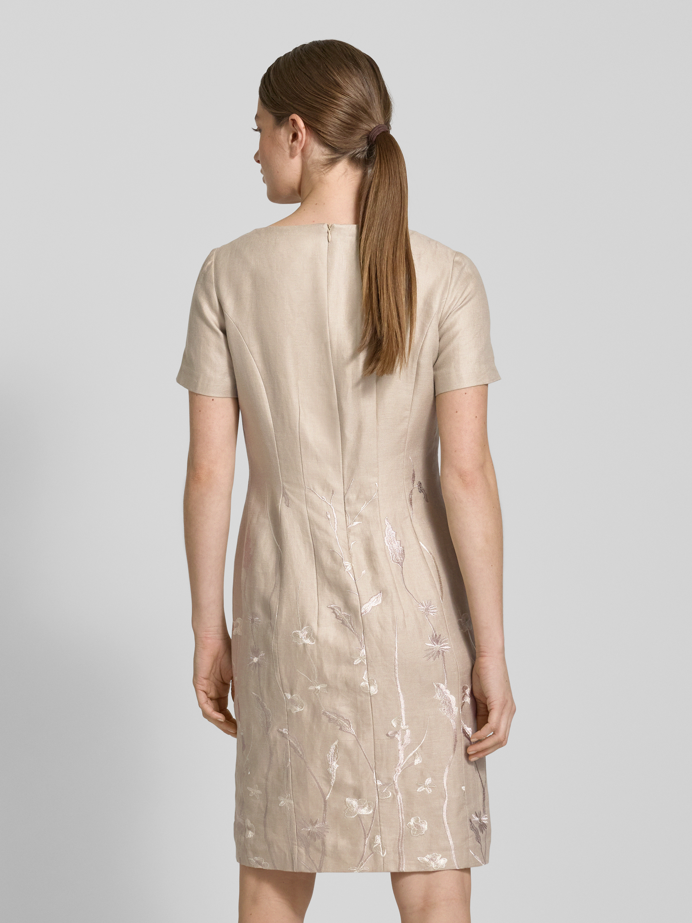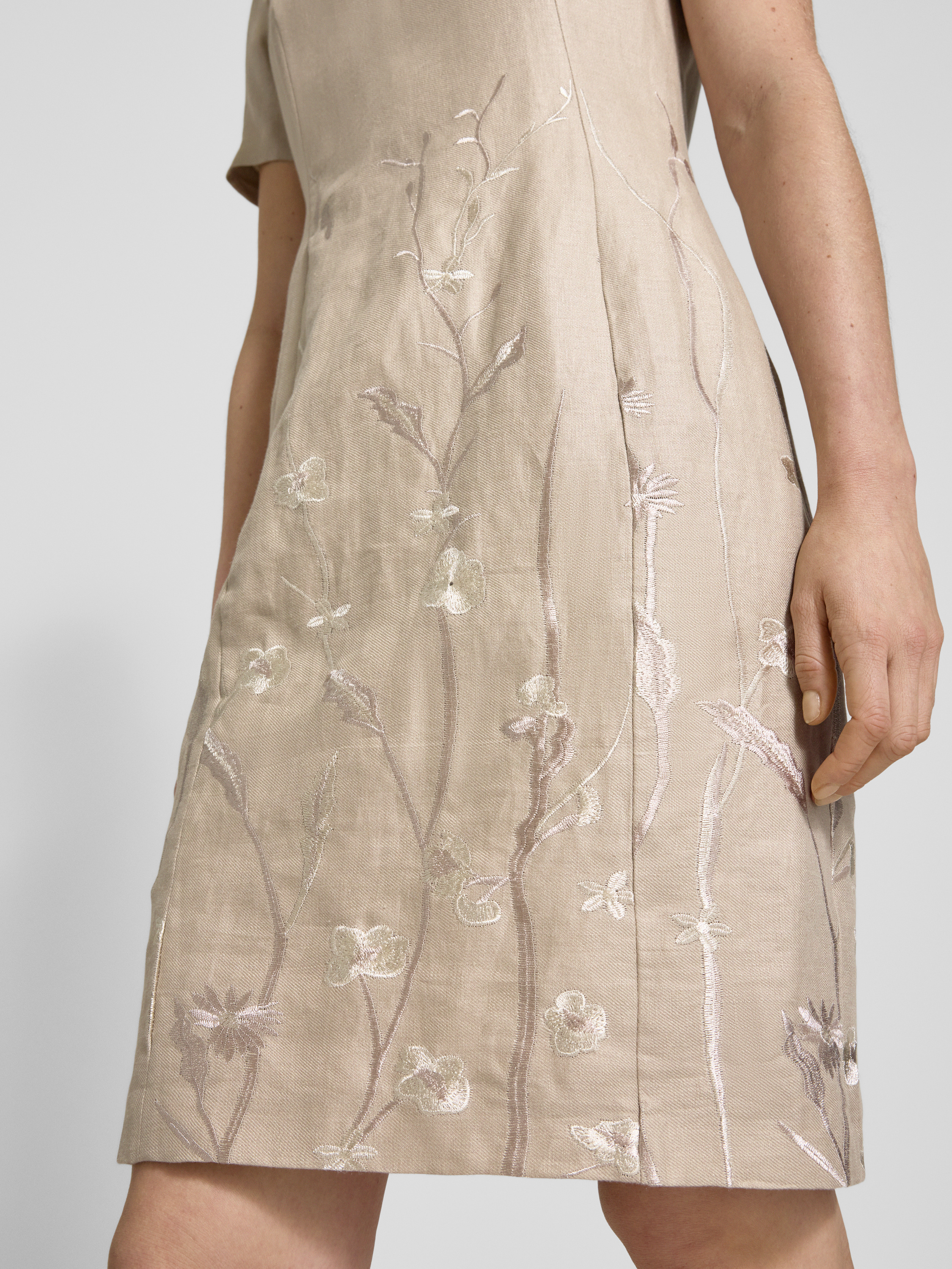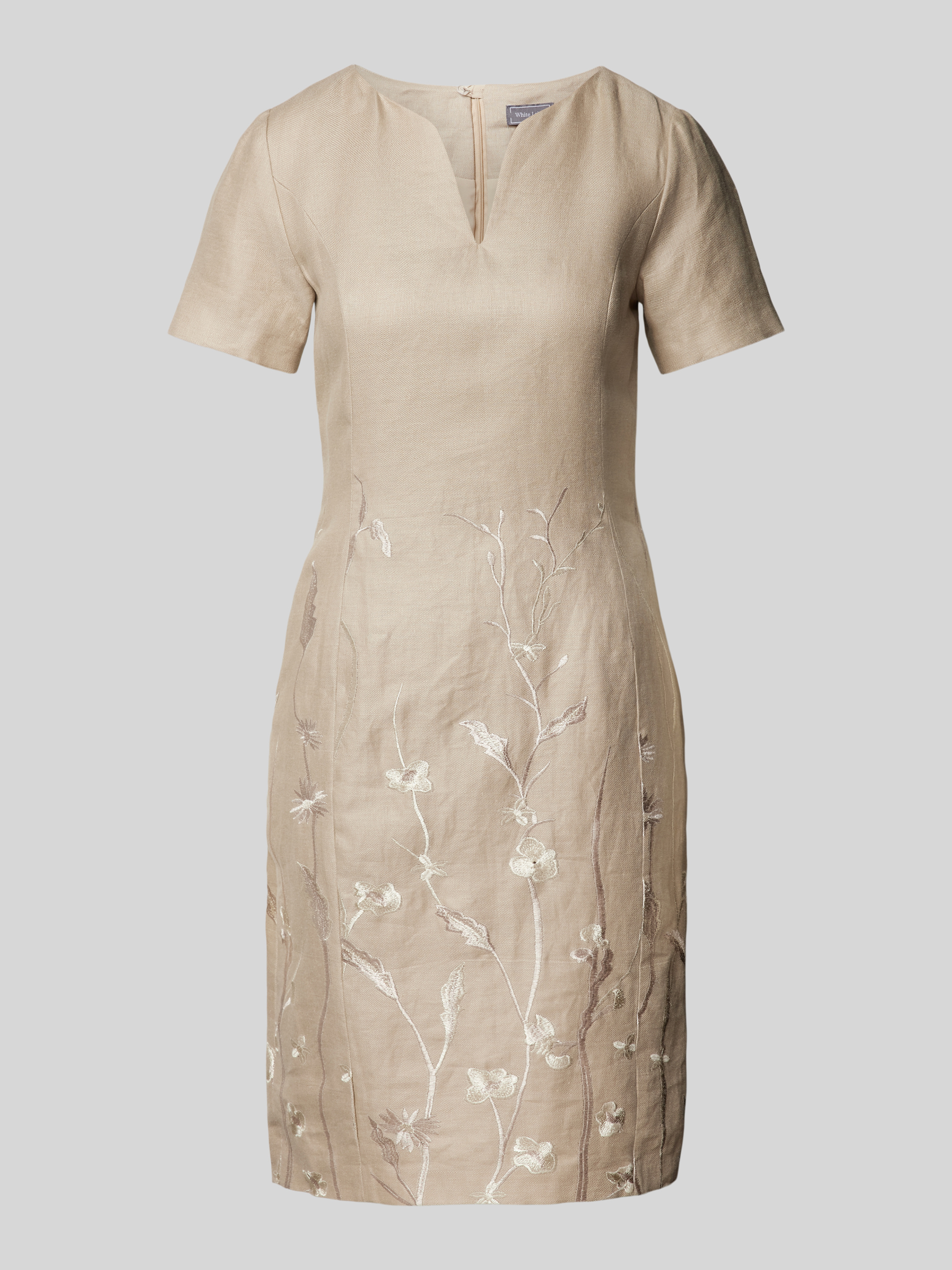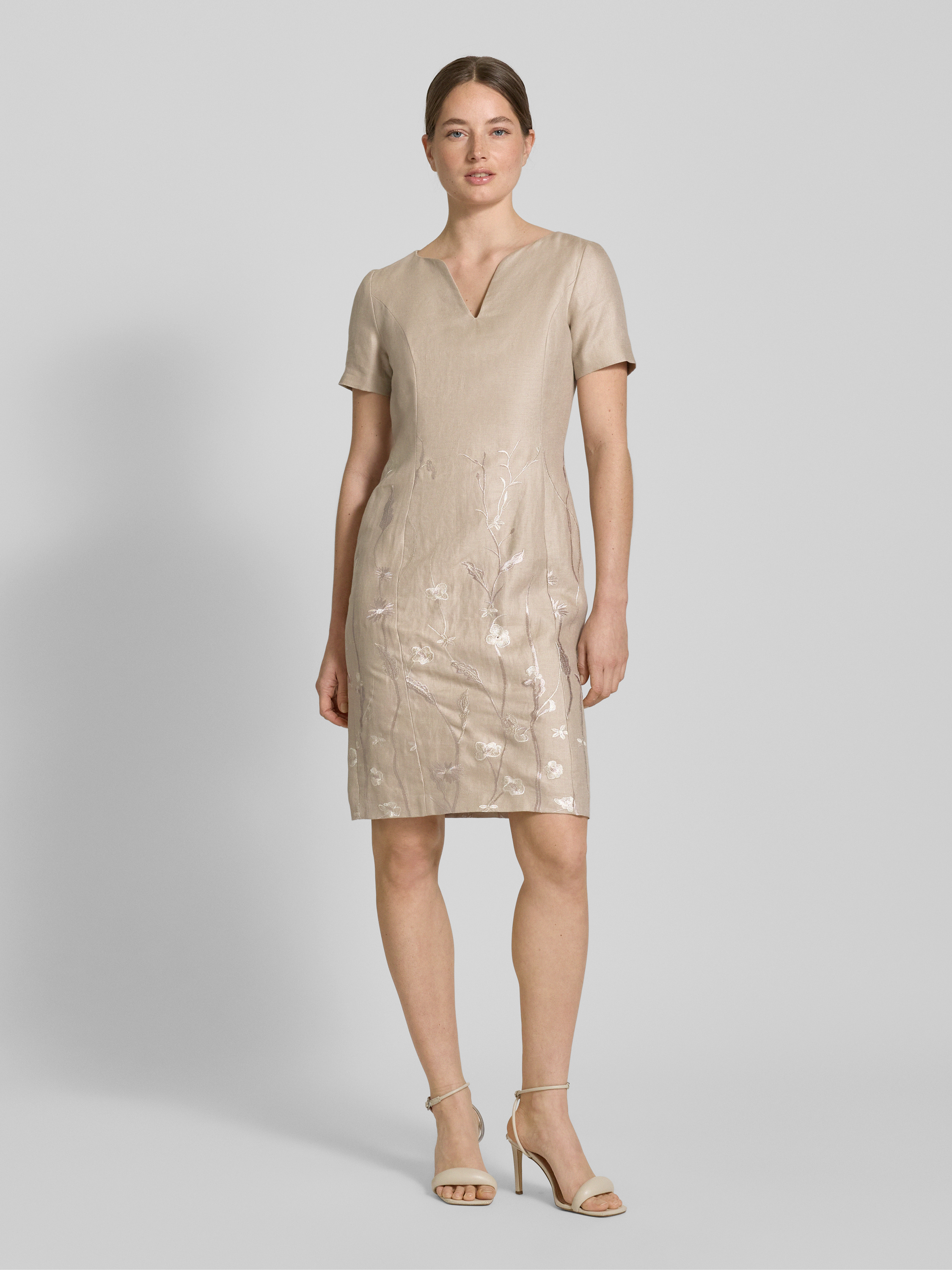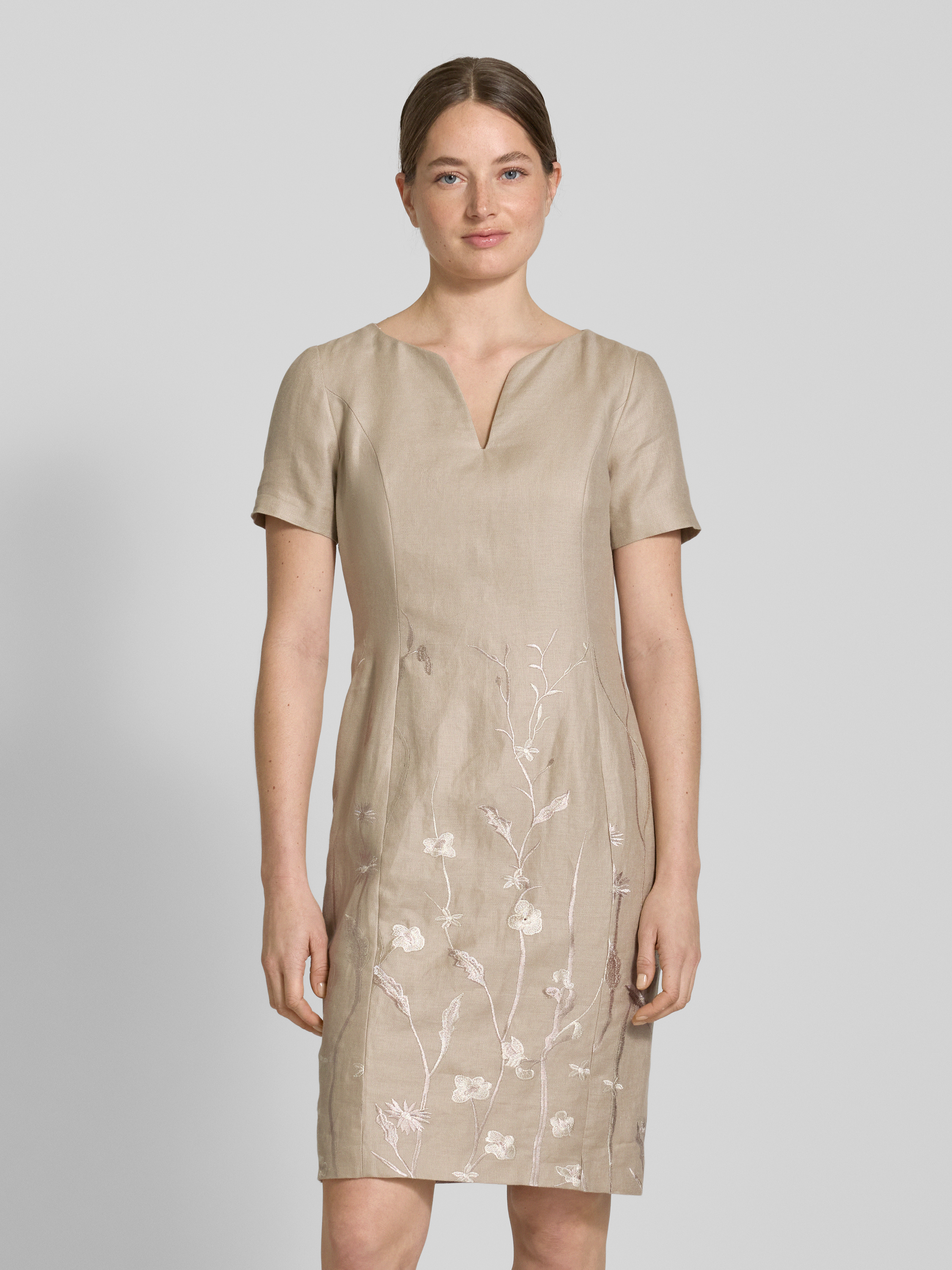 Knielange jurk met V-hals in zand