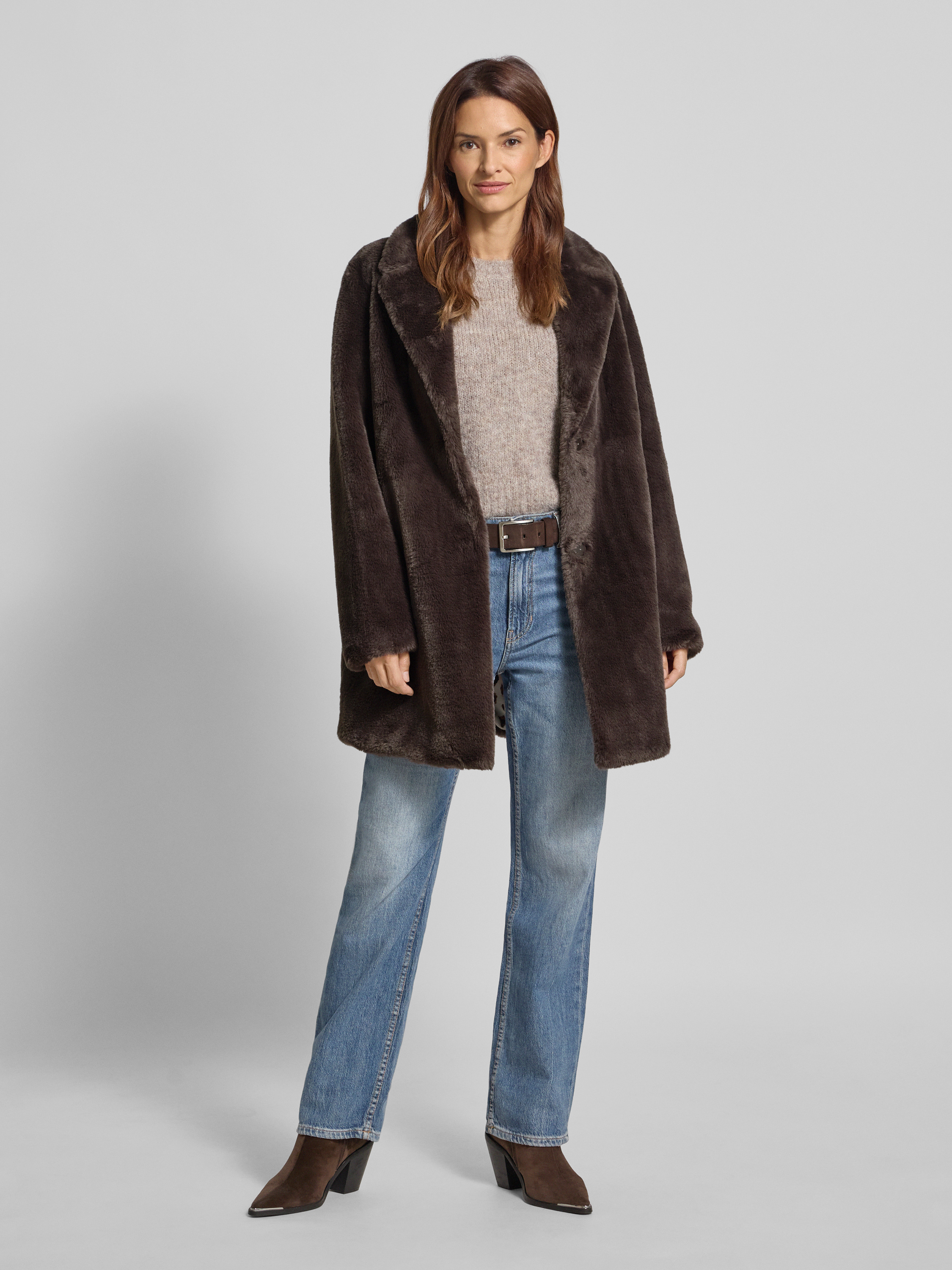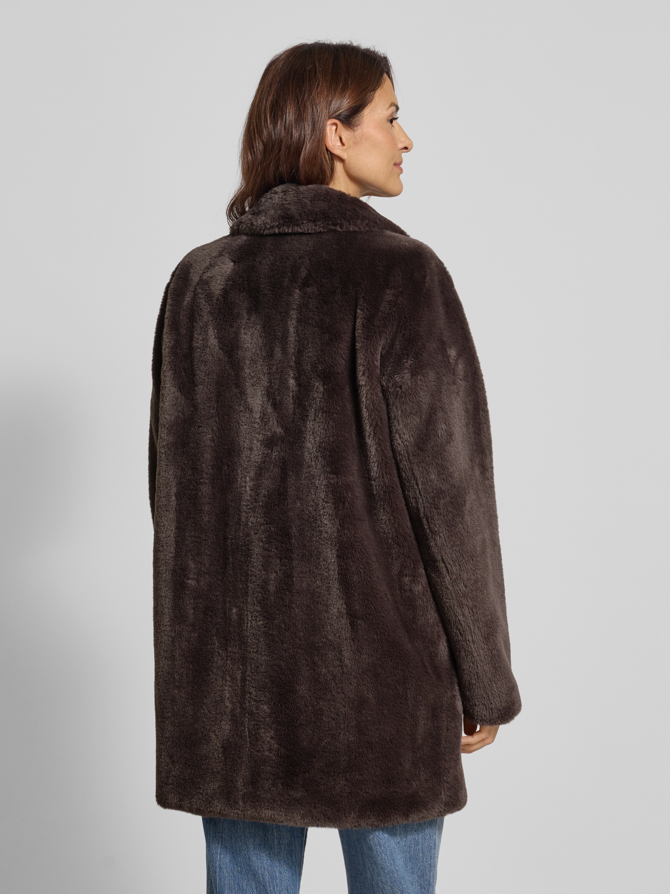 Lange jas met imitatiebont in donkerbruin