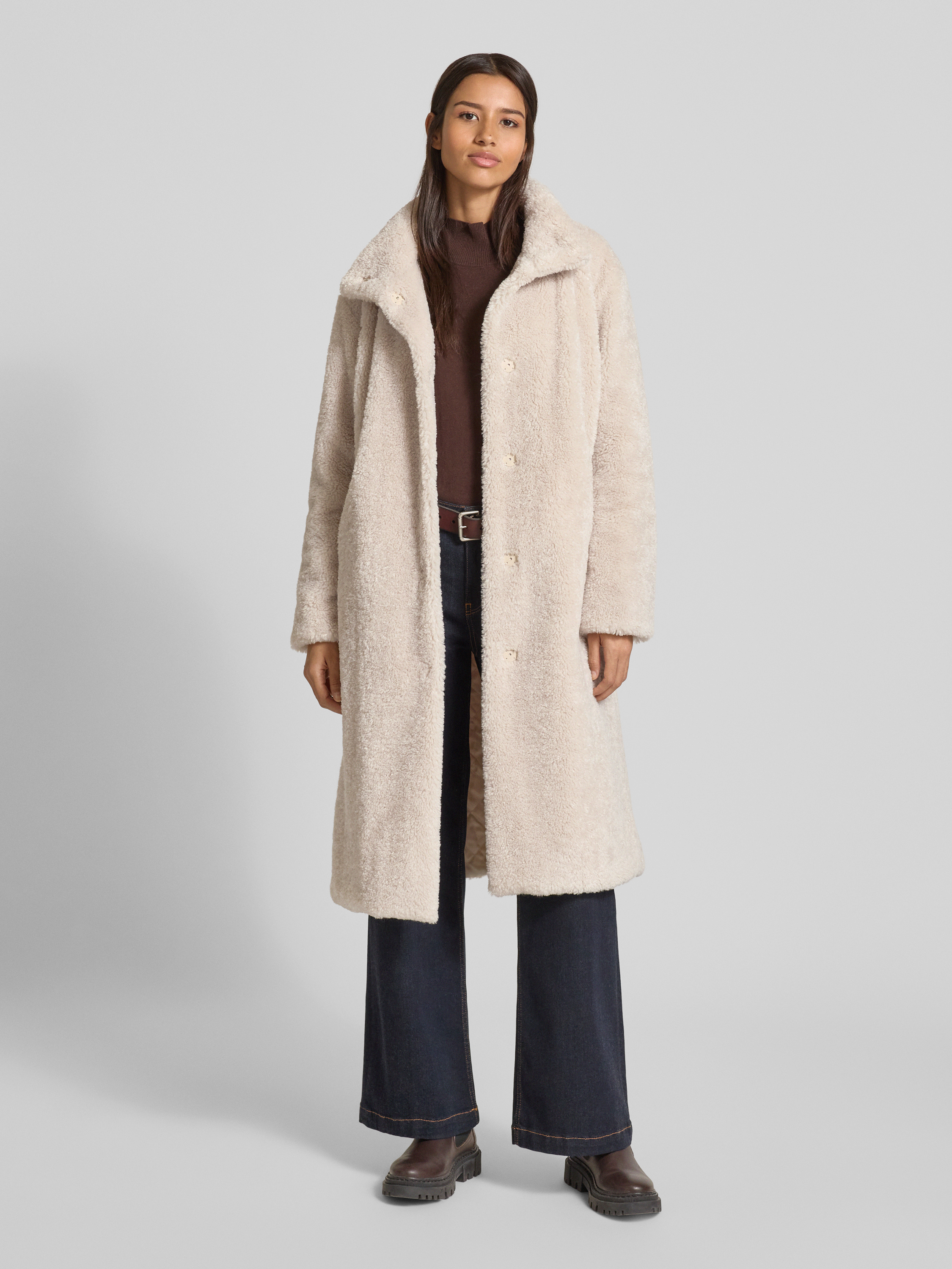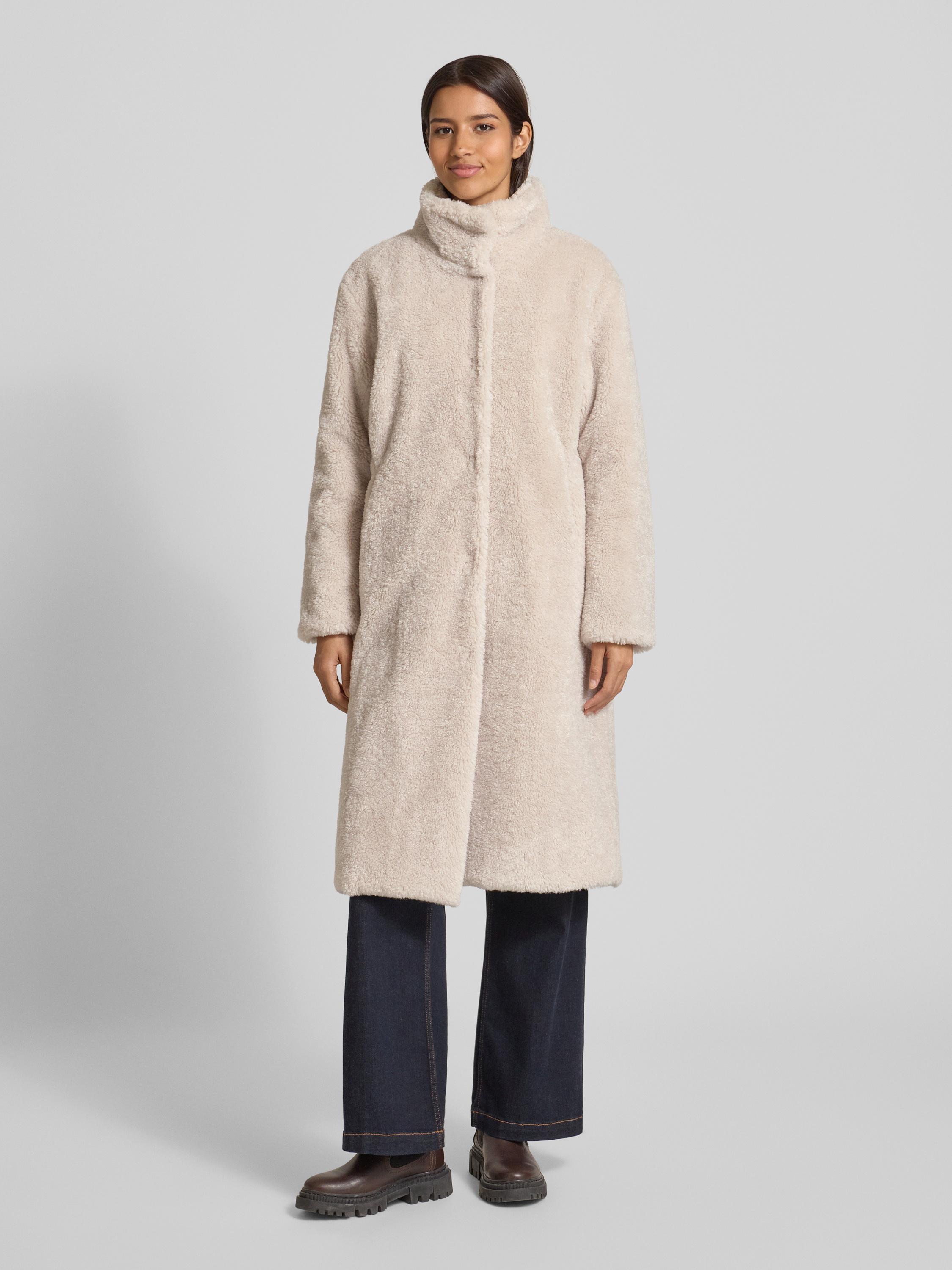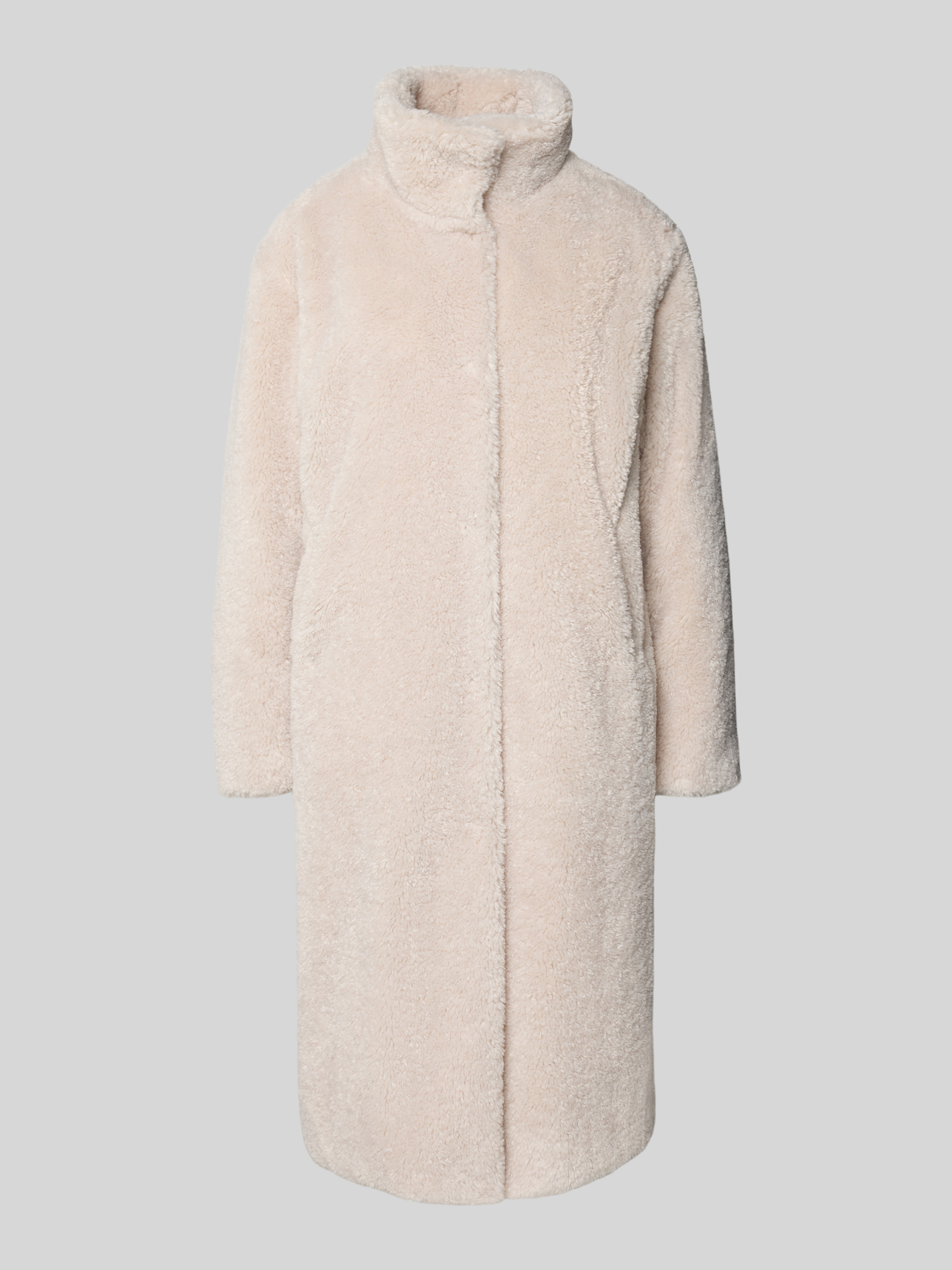 Regular fit lange jas van teddybont met opstaande kraag in ecru