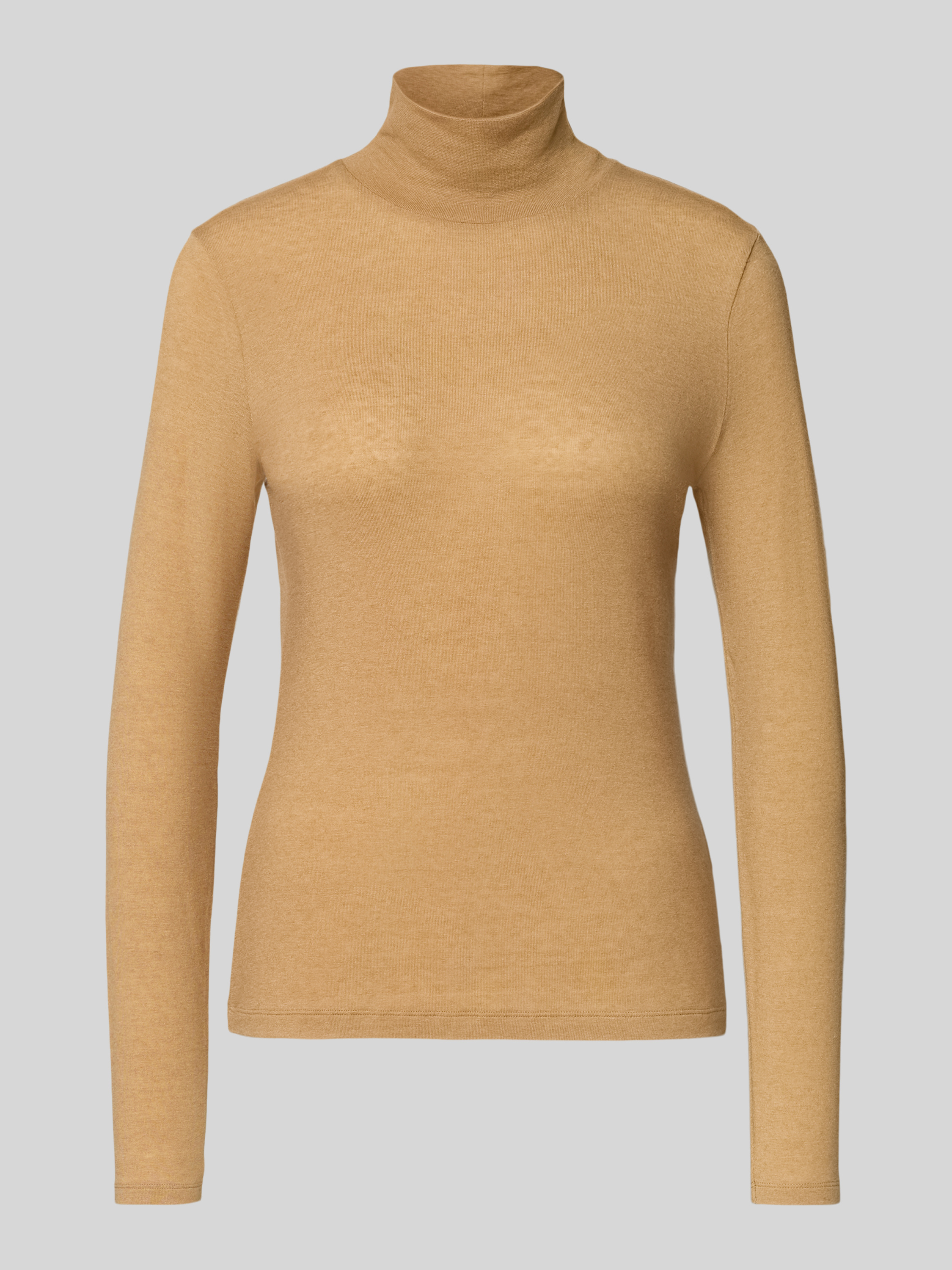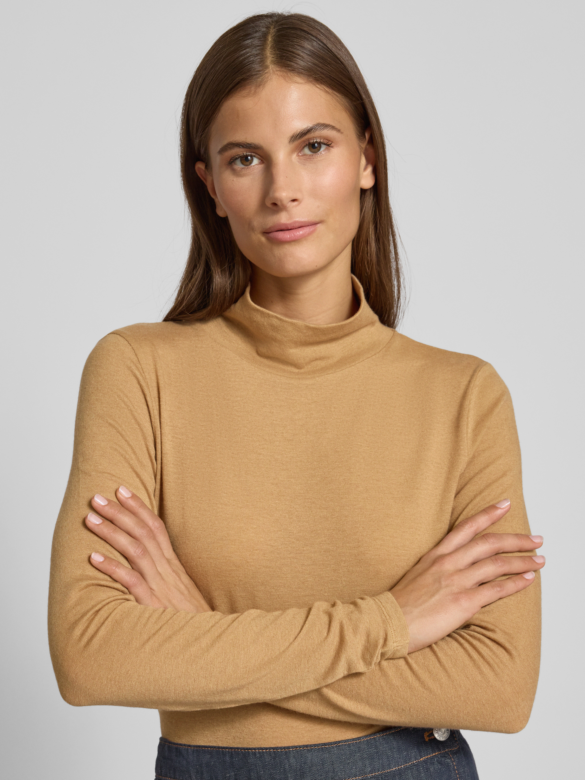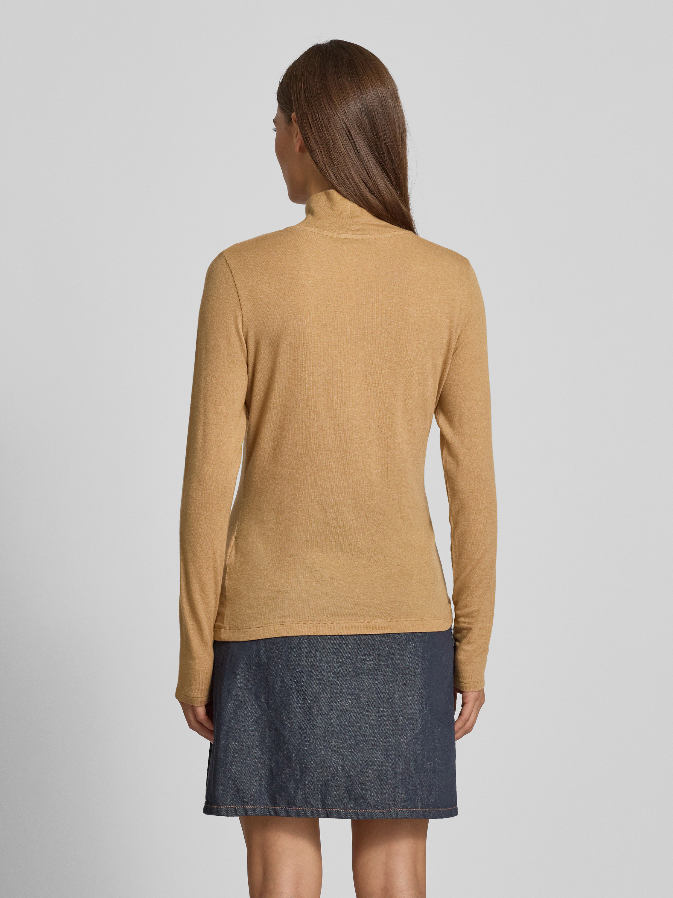 Shirt met lange mouwen en geribde opstaande kraag in camel