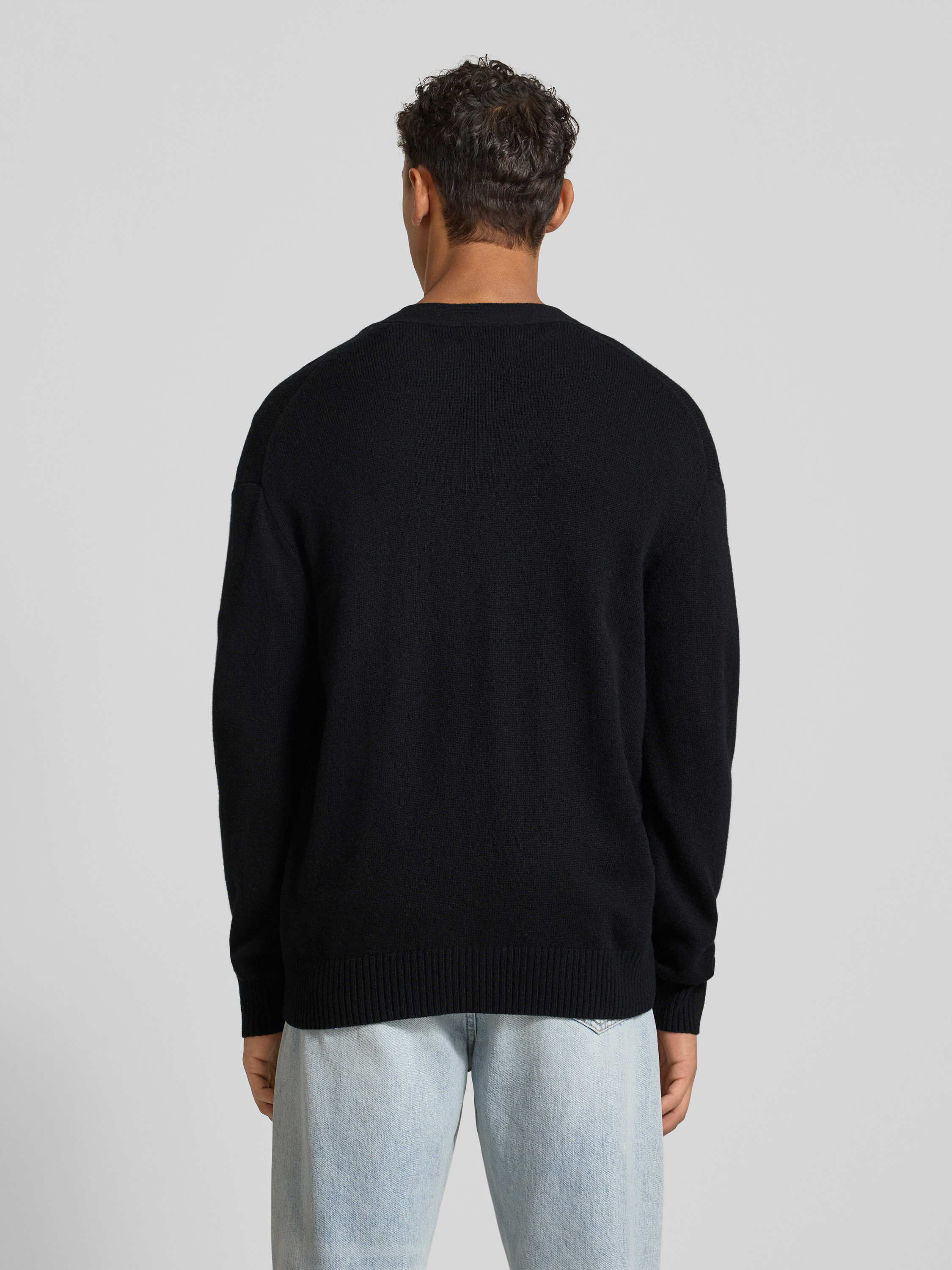 Gebreid jack van lamswol met V-hals, model 'Tay' in zwart