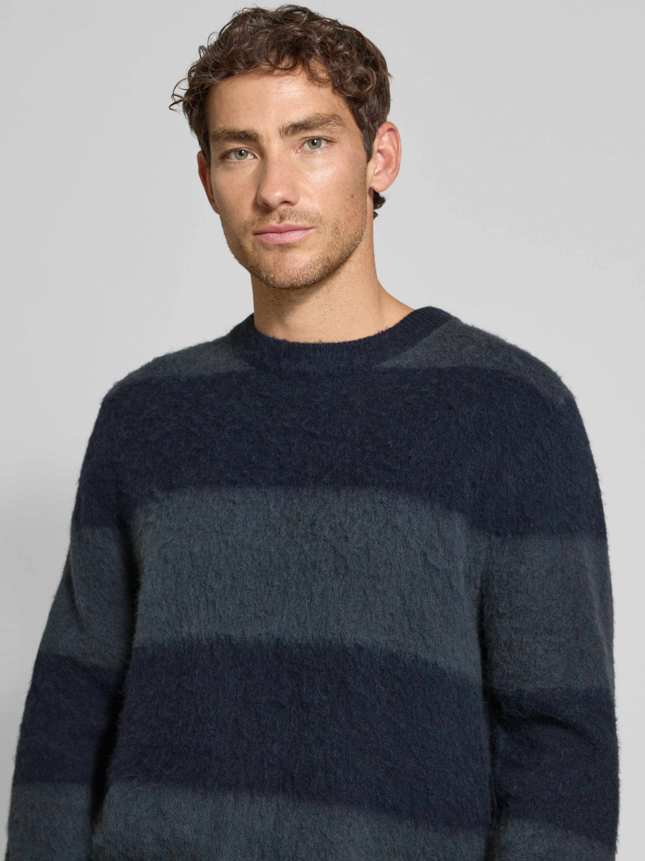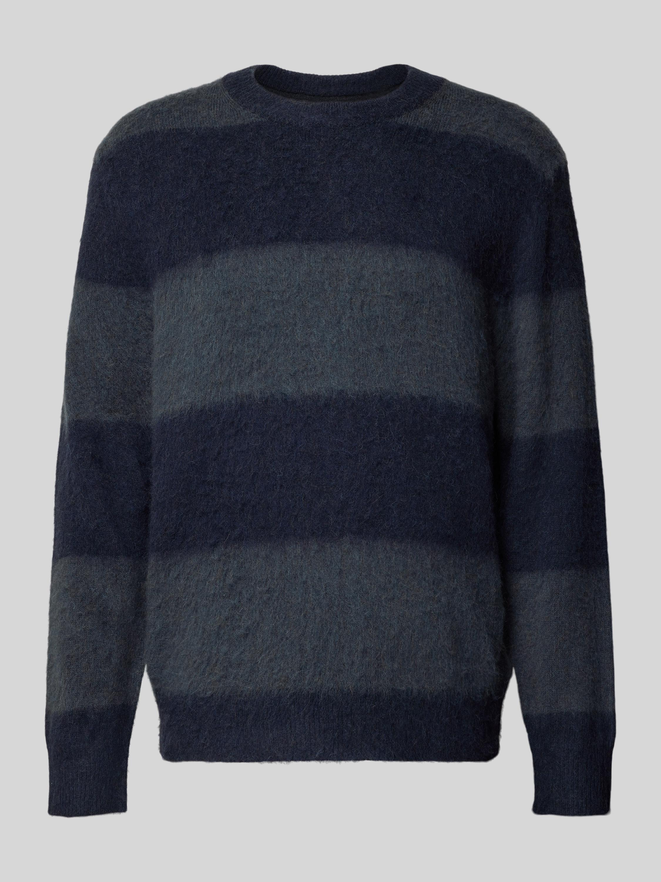 Gebreide pullover met ribboorden, model 'Levi' in marineblauw