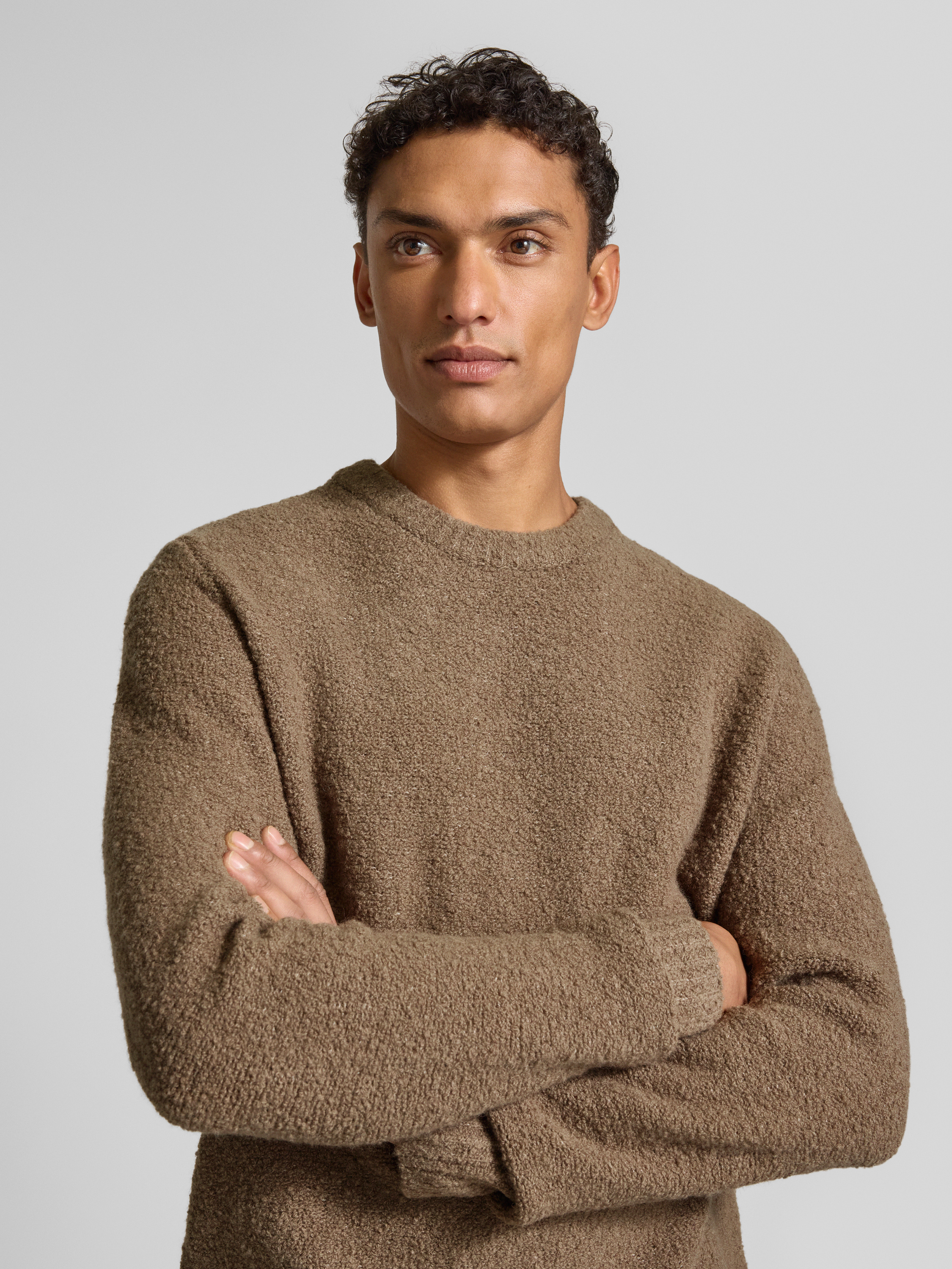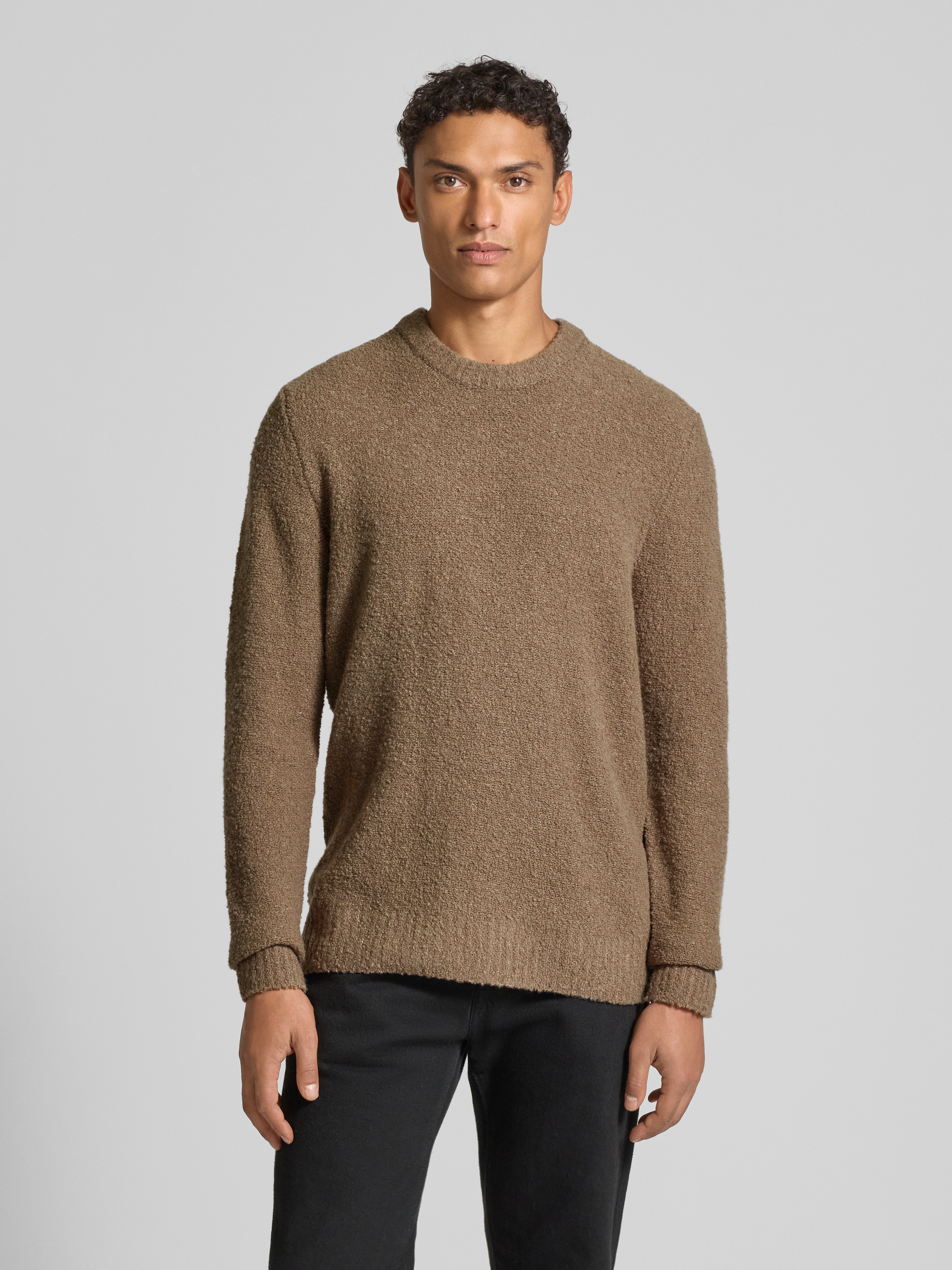 Gebreide pullover met ronde hals, model 'Andy' in lichtbruin