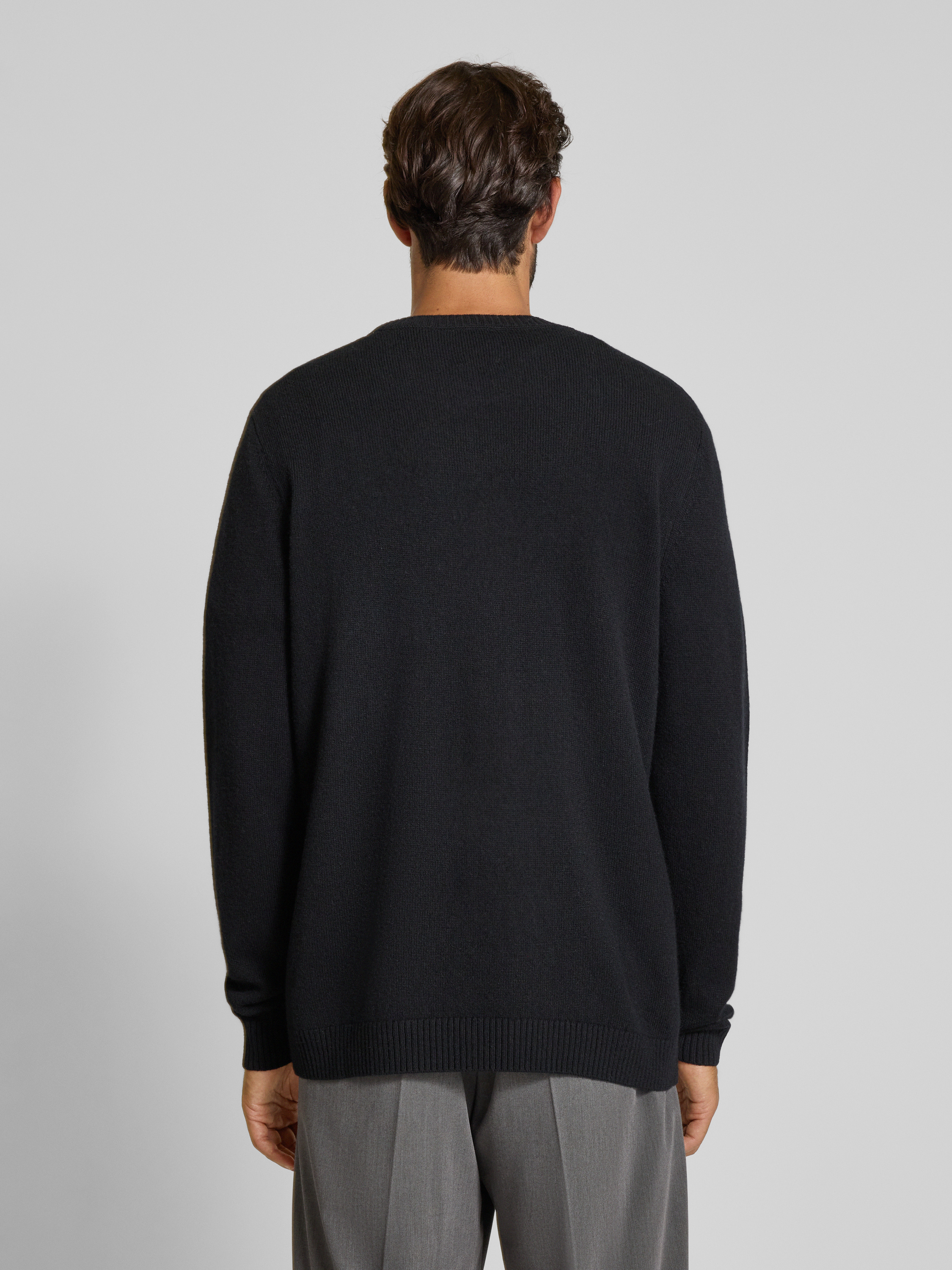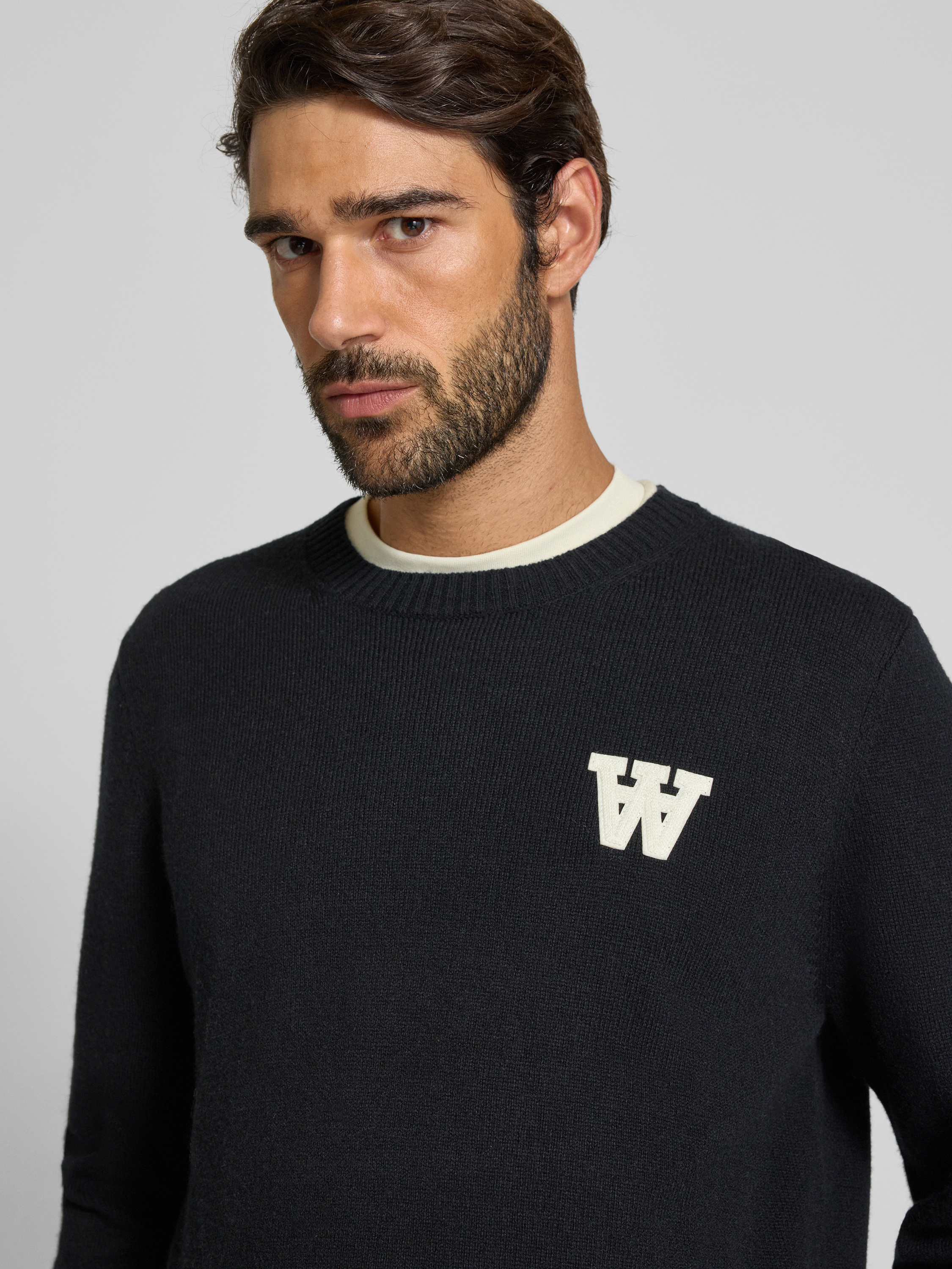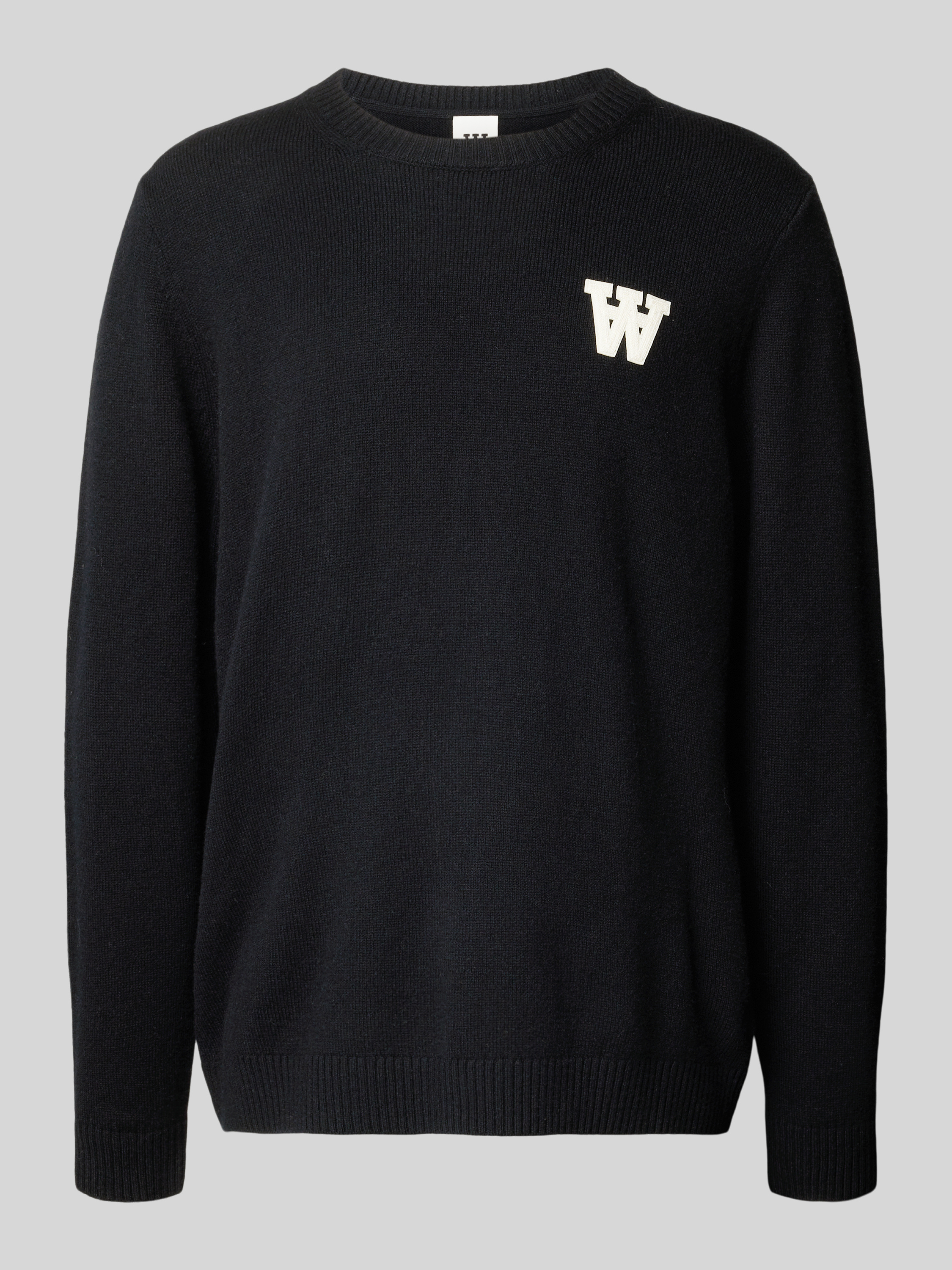 Gebreide pullover met stitching en ronde hals, model 'Tay' in zwart