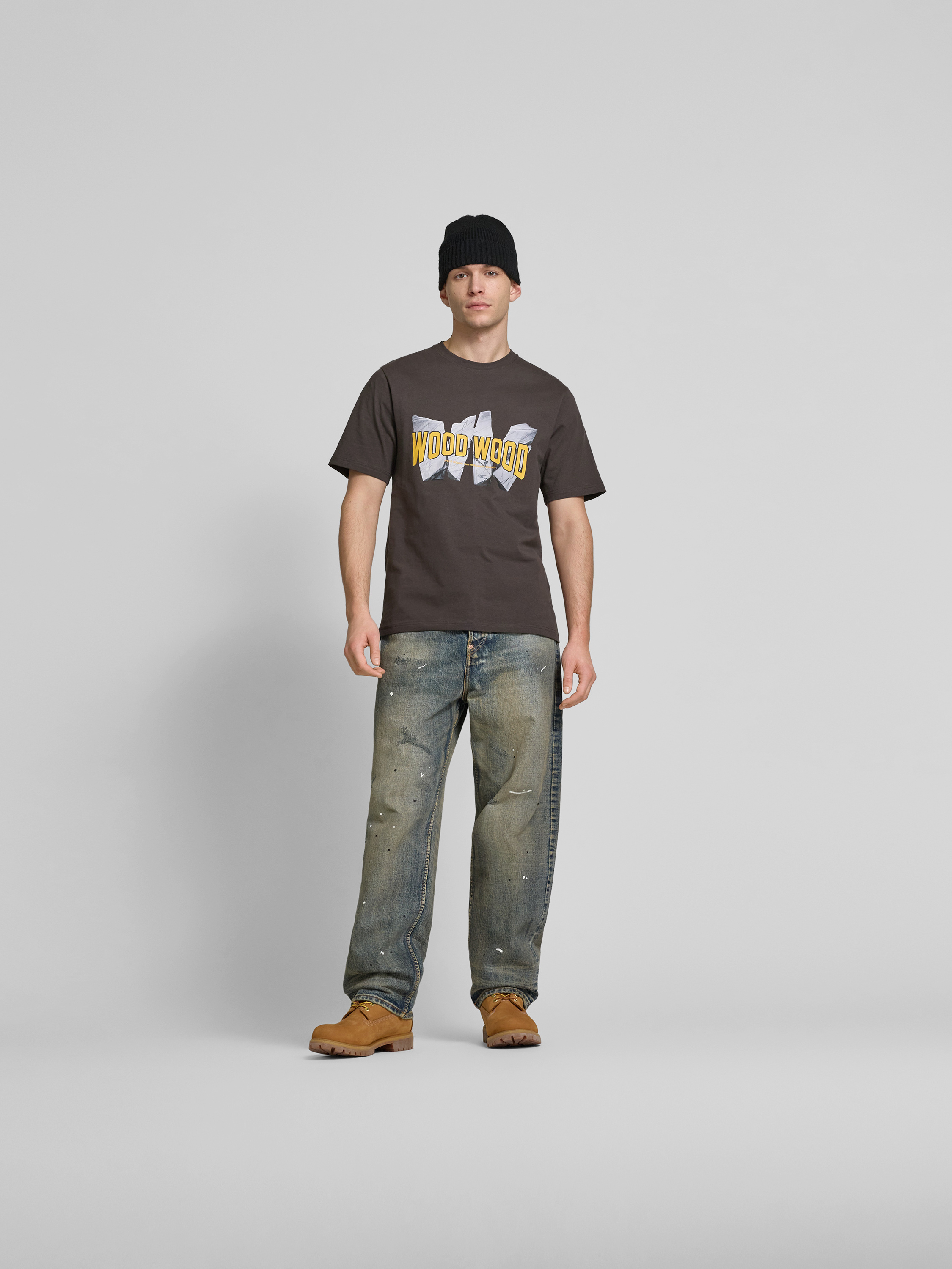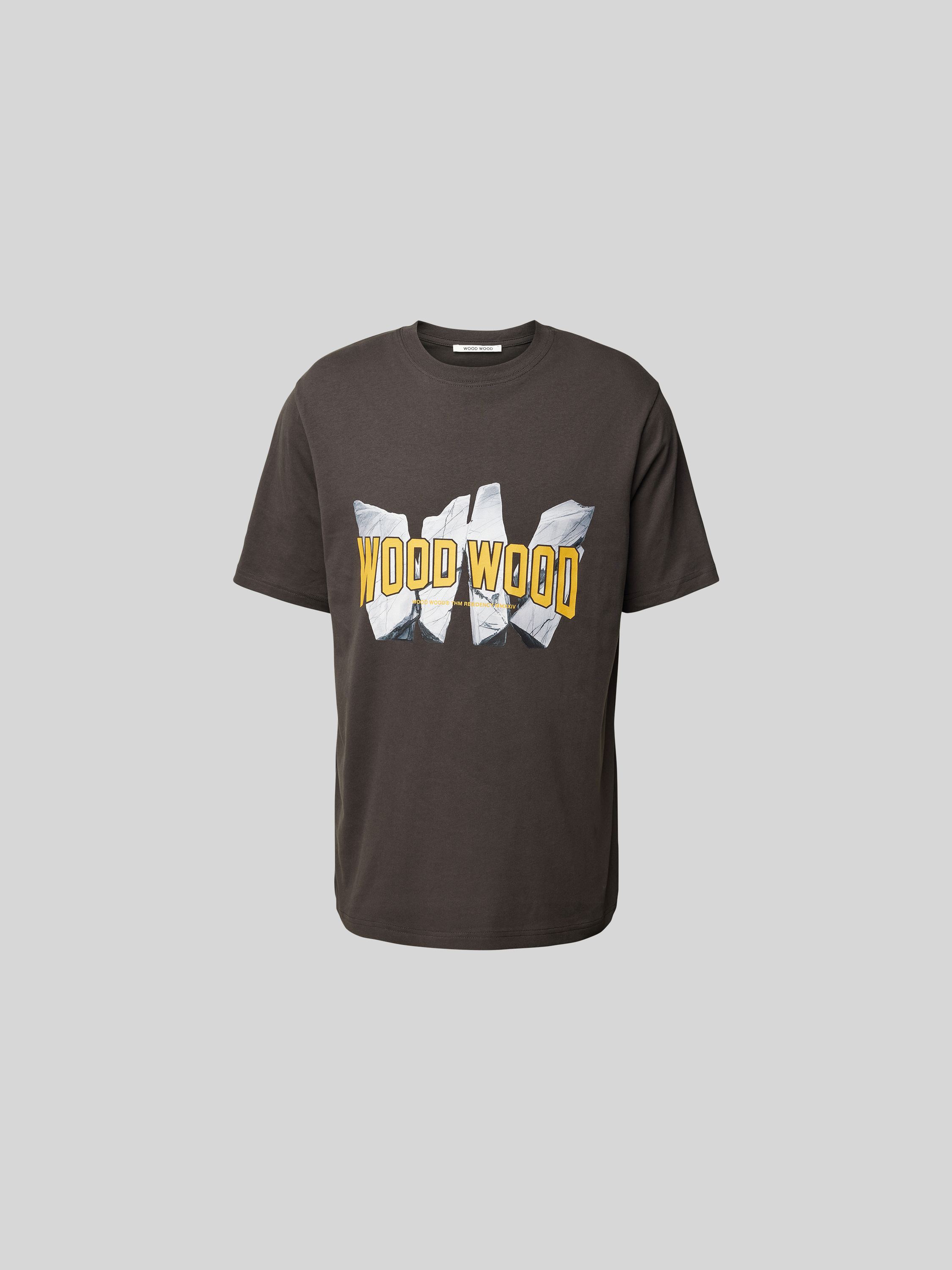 Wood WoodRegular fit T-shirt met labelprint in antraciet