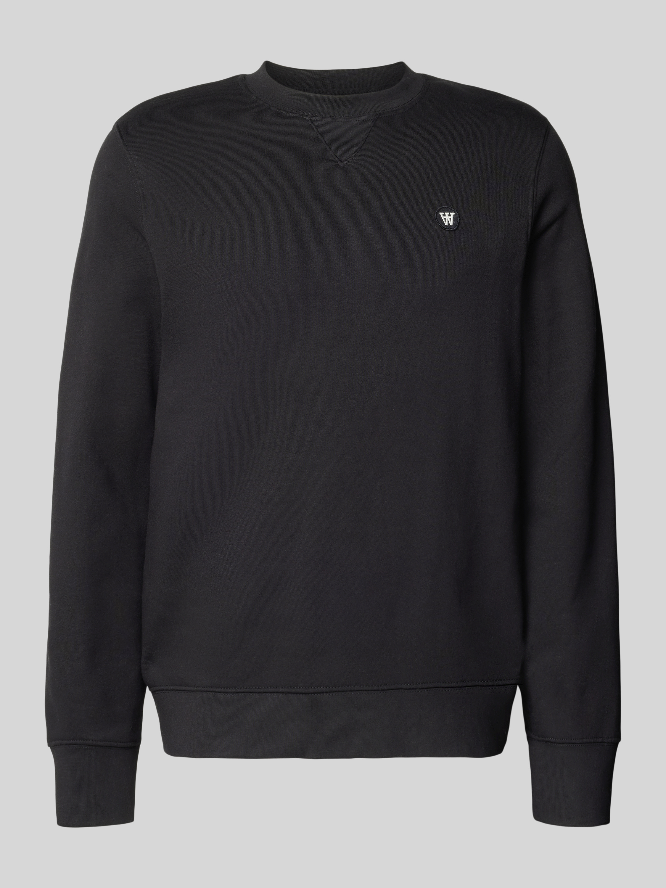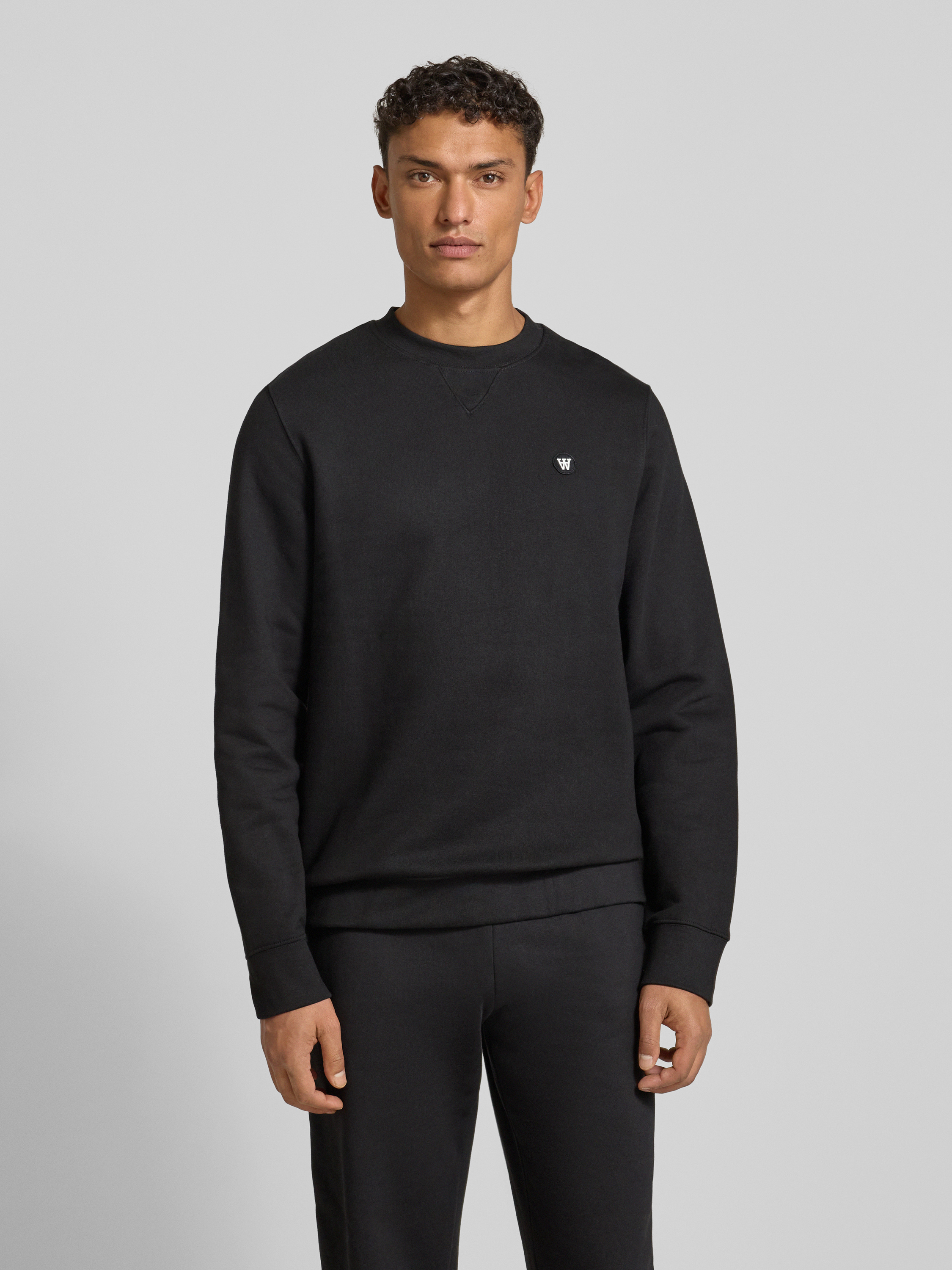 Wood WoodSweatshirt met labelstitching, model 'Tye' in zwart