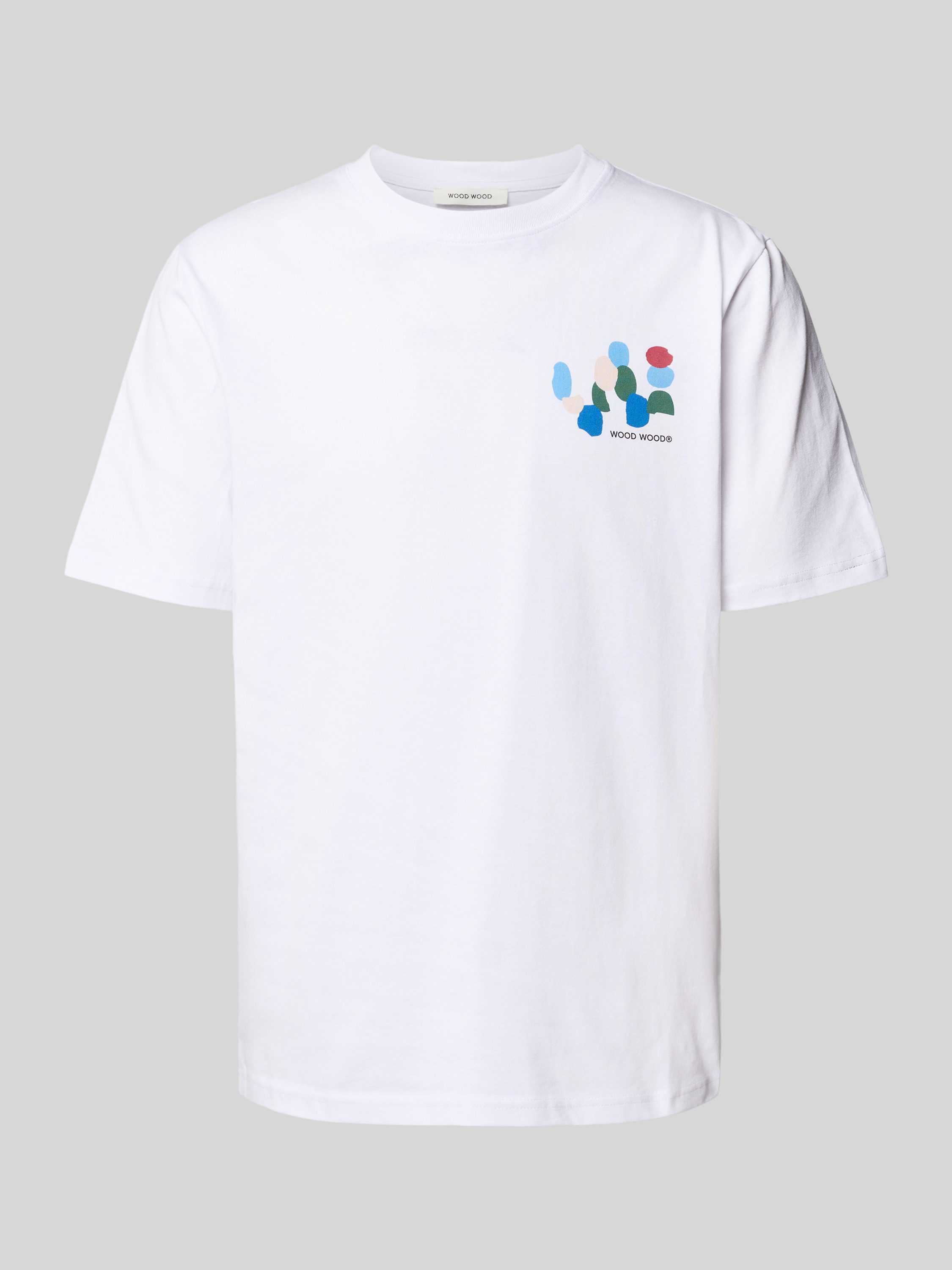 Wood WoodT-shirt met labelprint, model 'Bobby' in wit