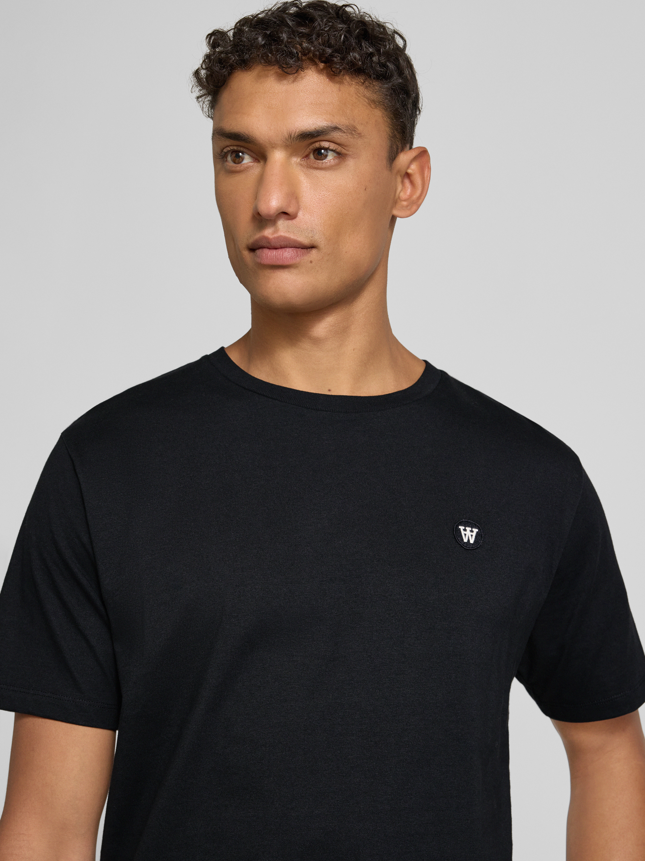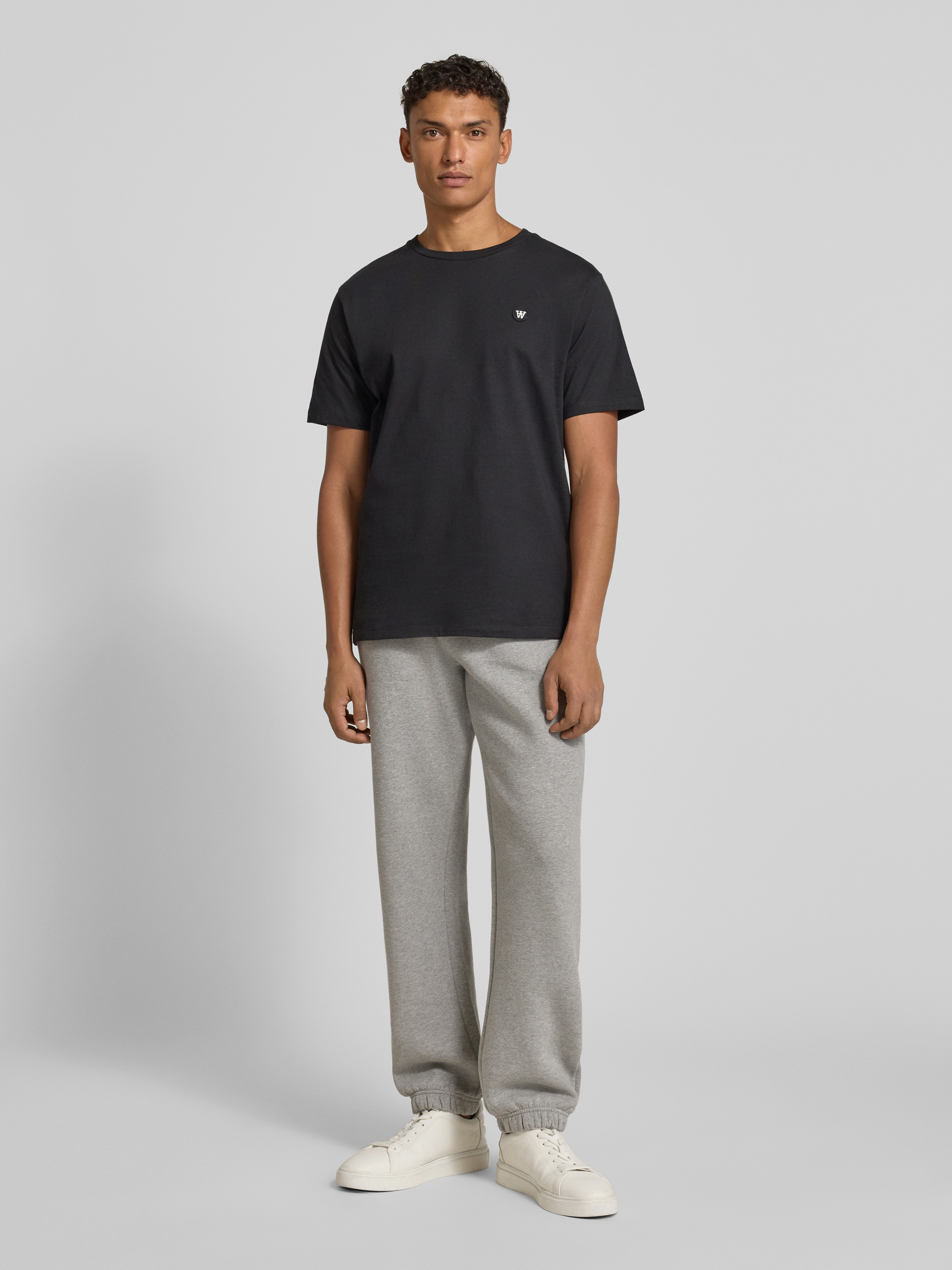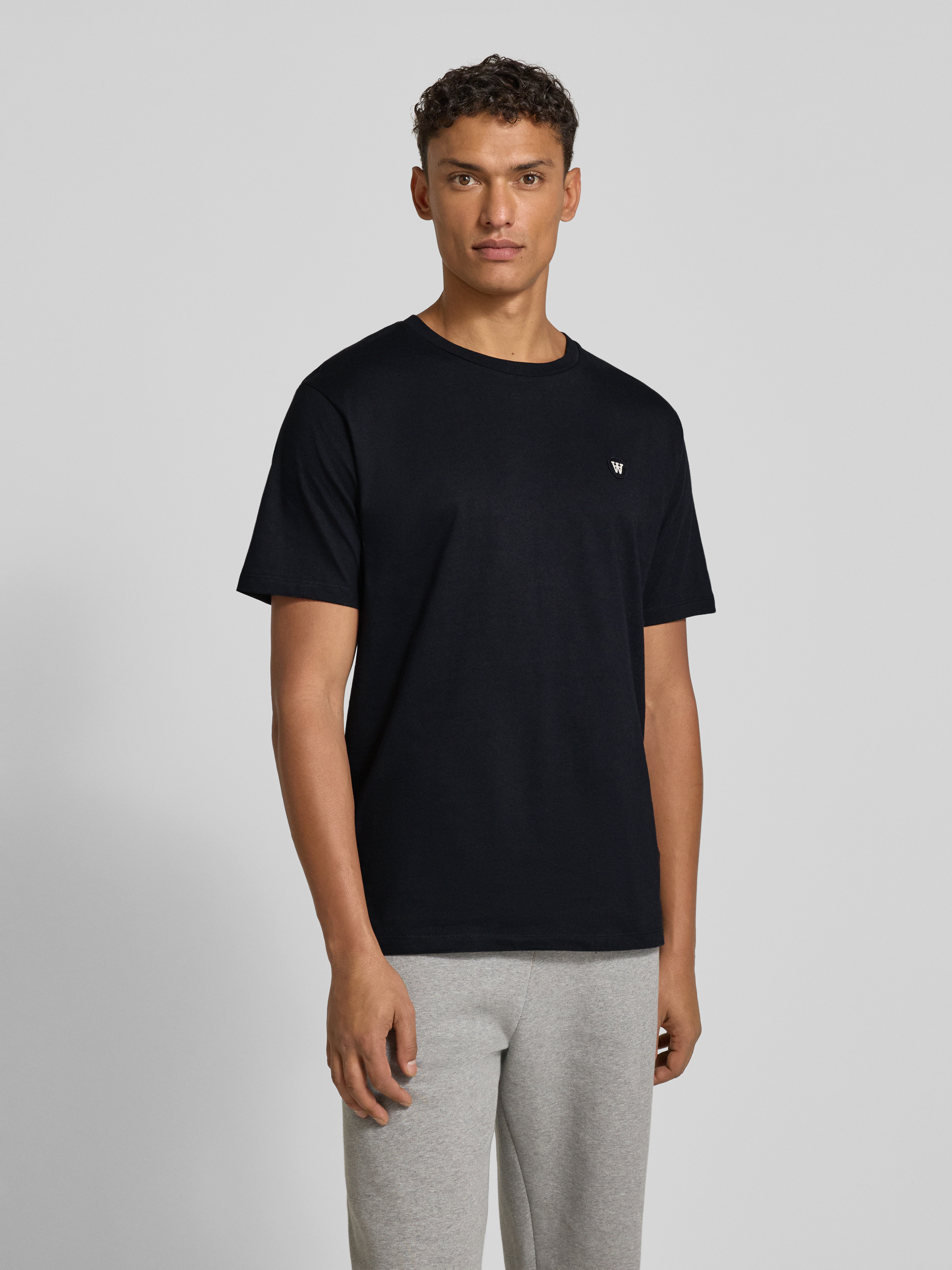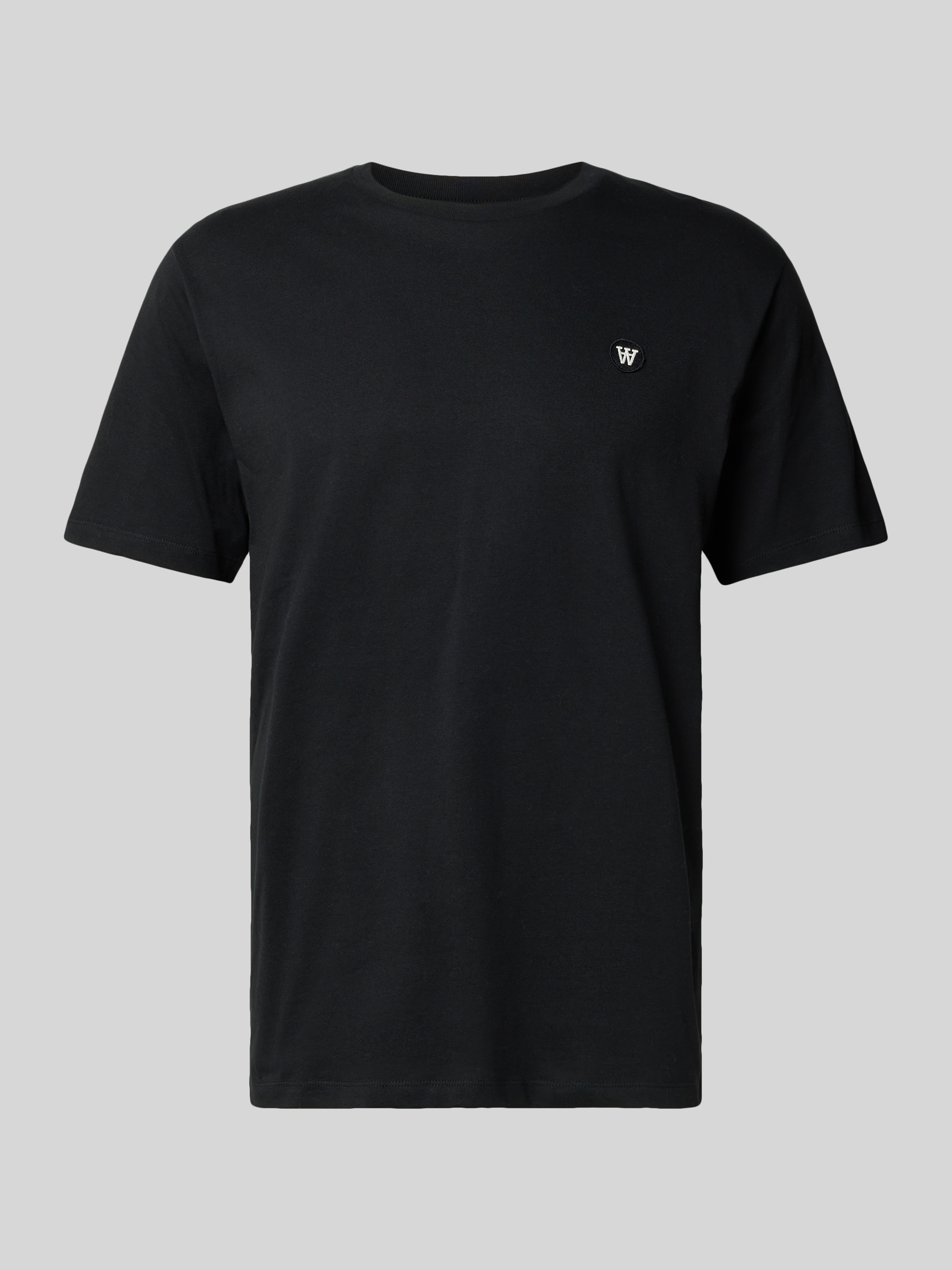 Wood WoodT-shirt met labelstitching en ronde hals in zwart