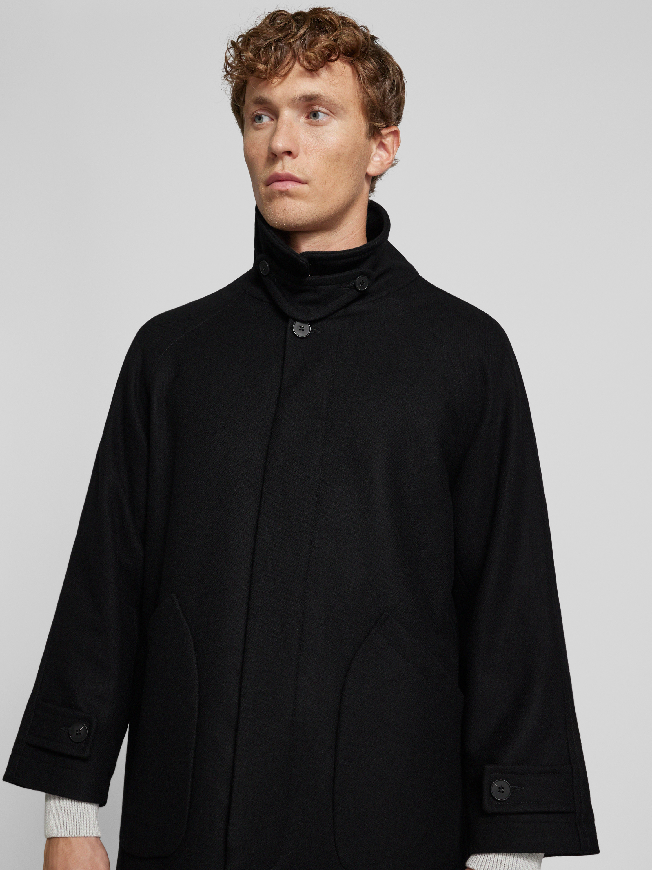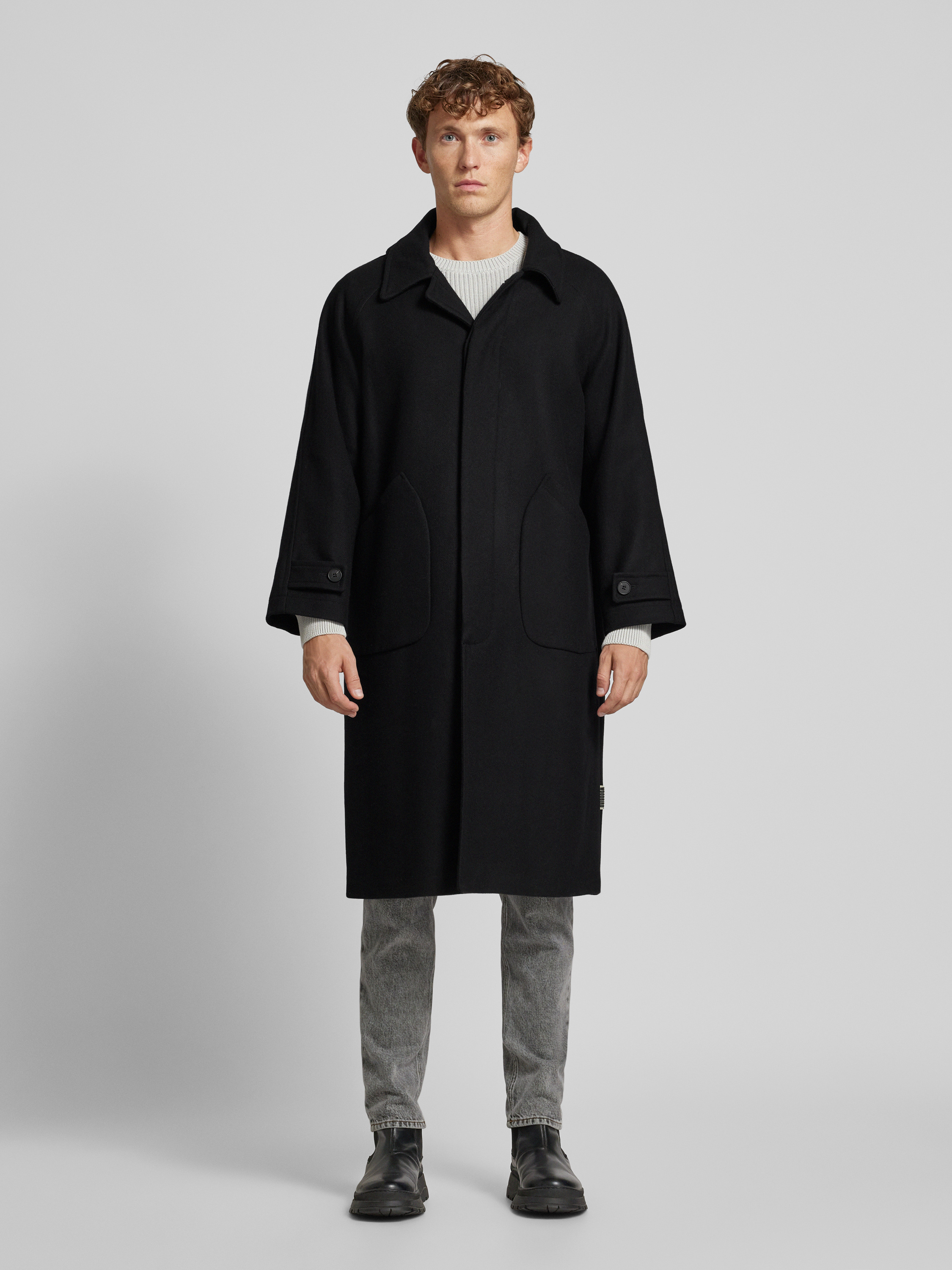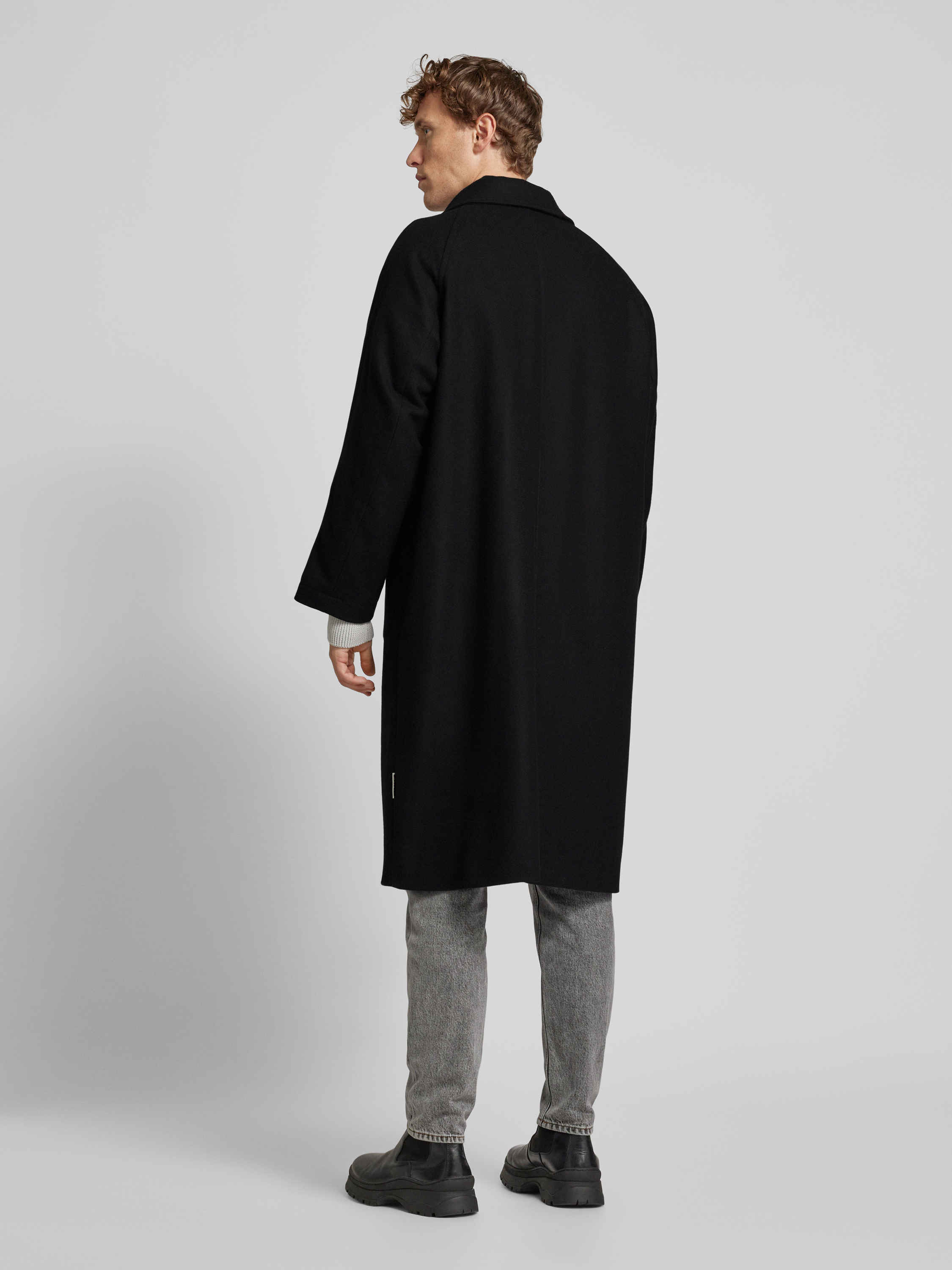 Lange jas met platte kraag, model 'Bergt' in zwart