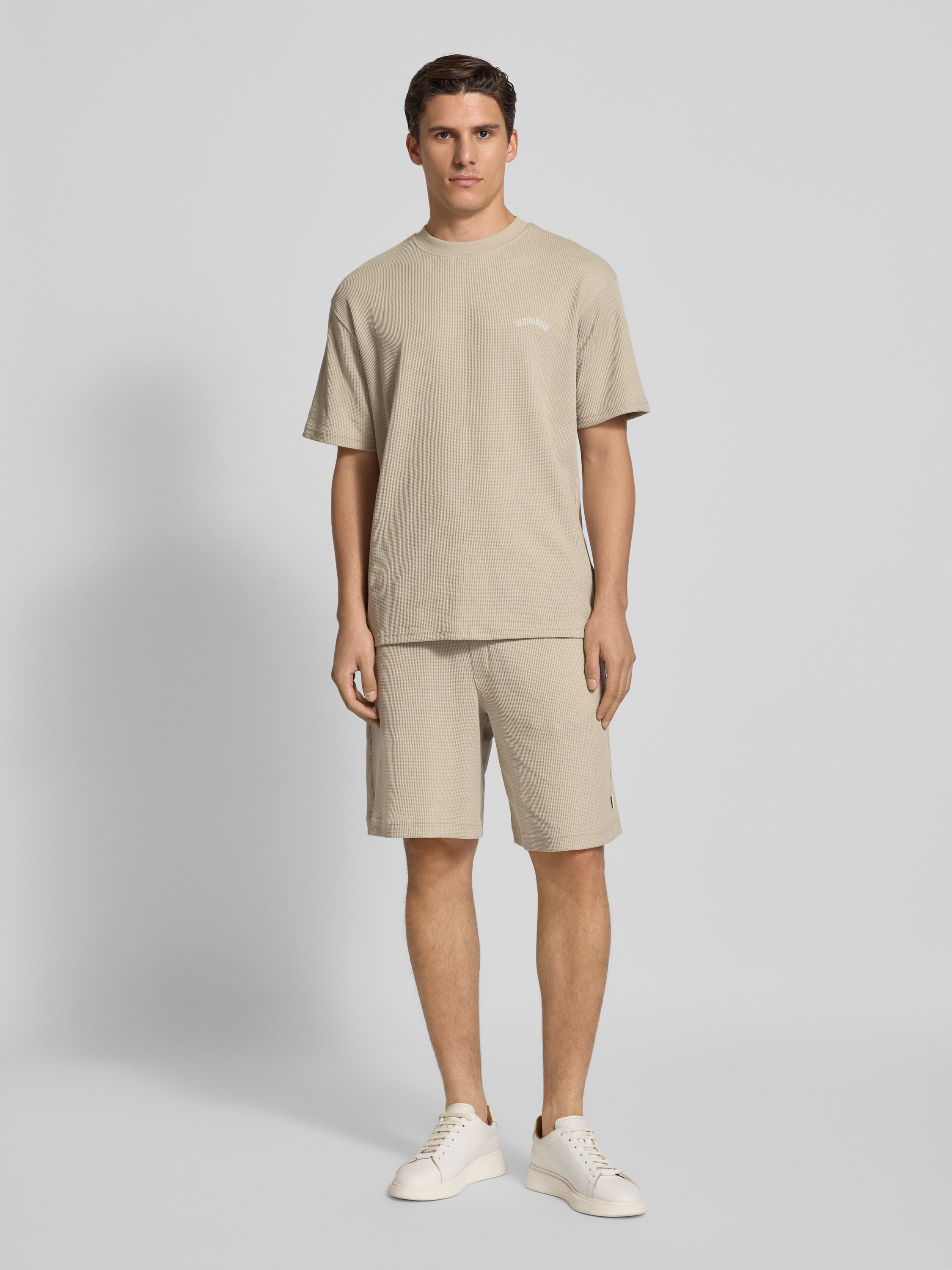 Straight leg korte broek met structuurmotief, model 'Ben' in taupe