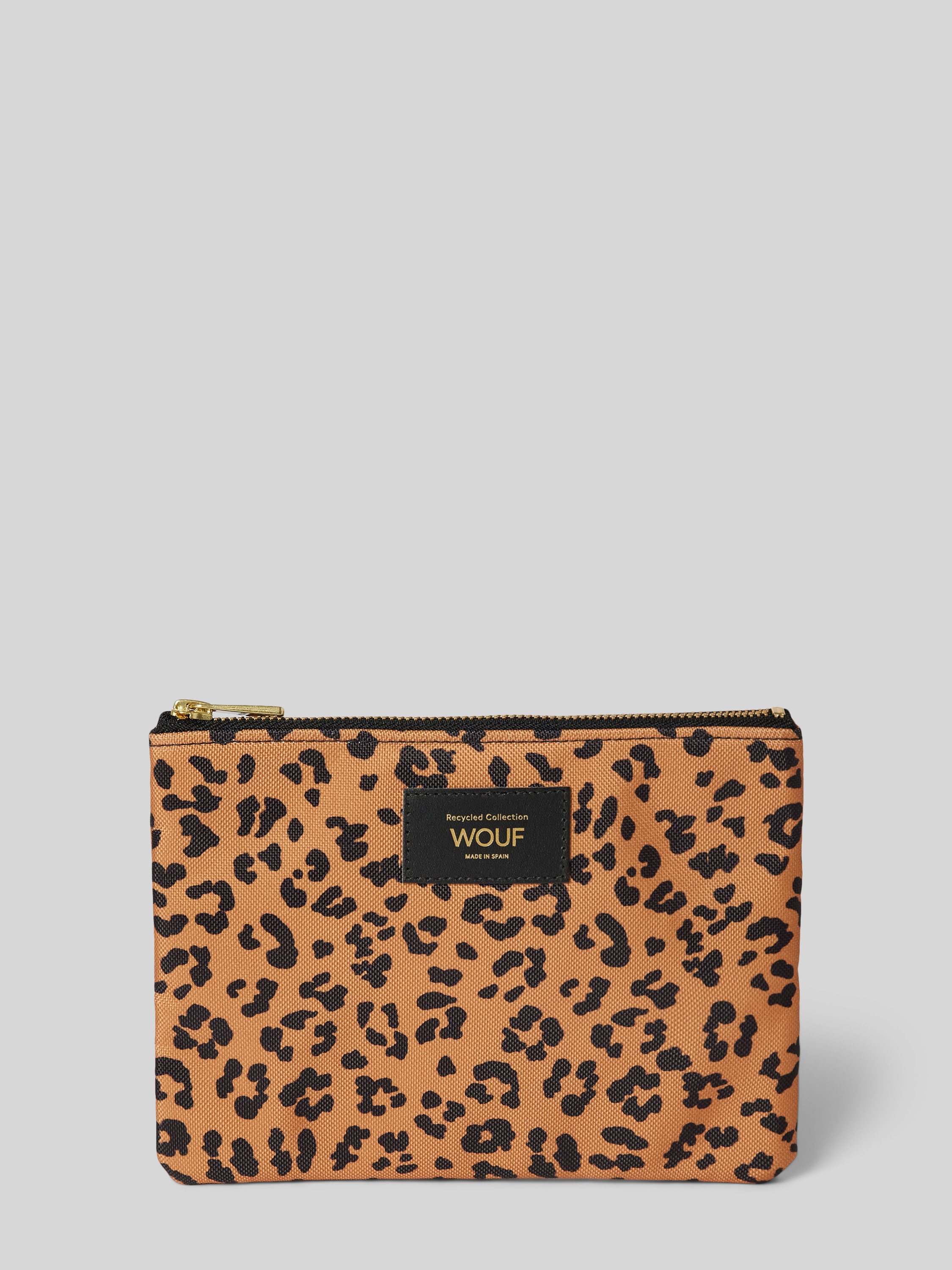 Make-uptasje met labelpatch, model 'Agar' in camel