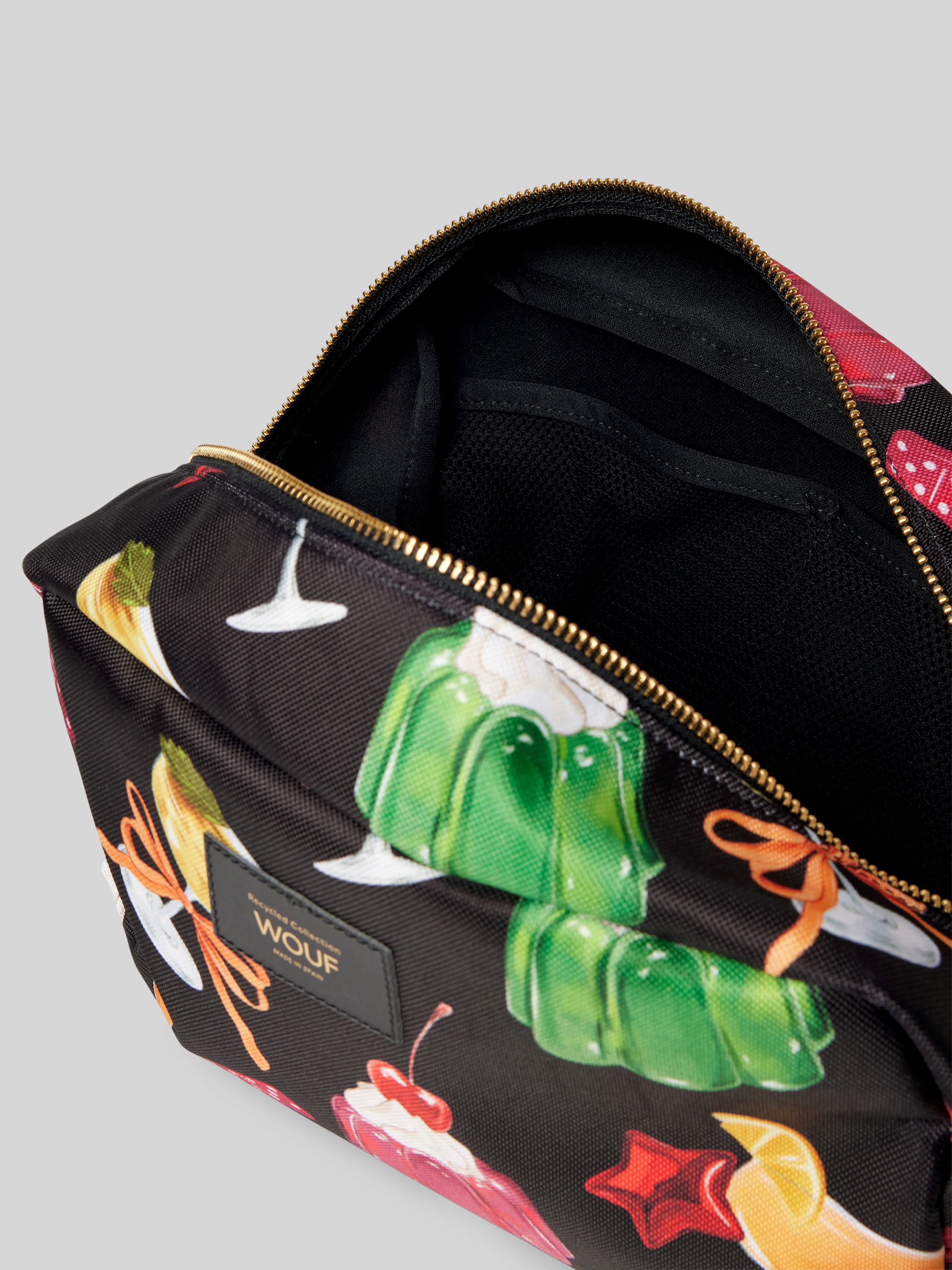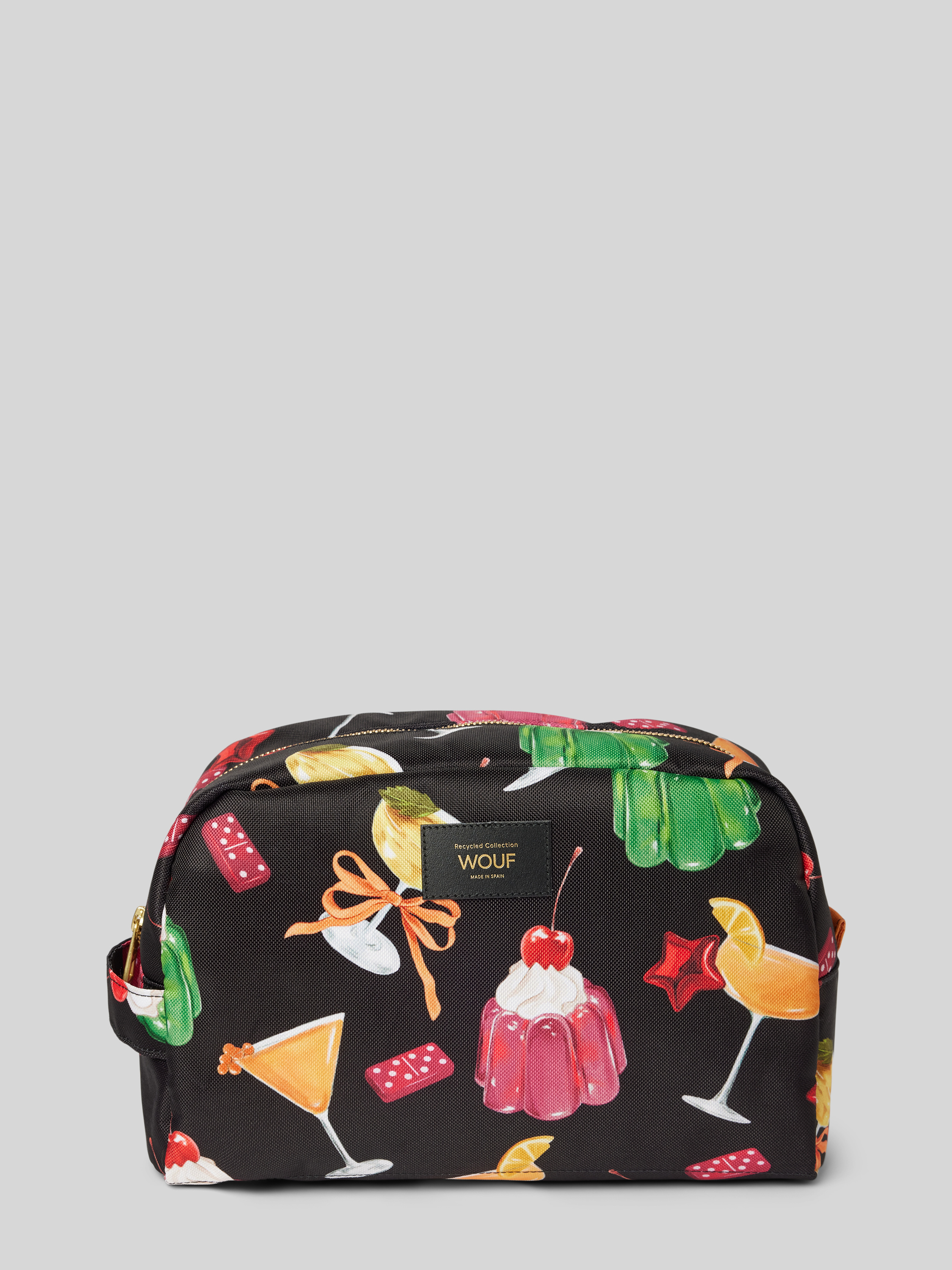 Make-uptasje met labelpatch, model 'Cheers' in zwart