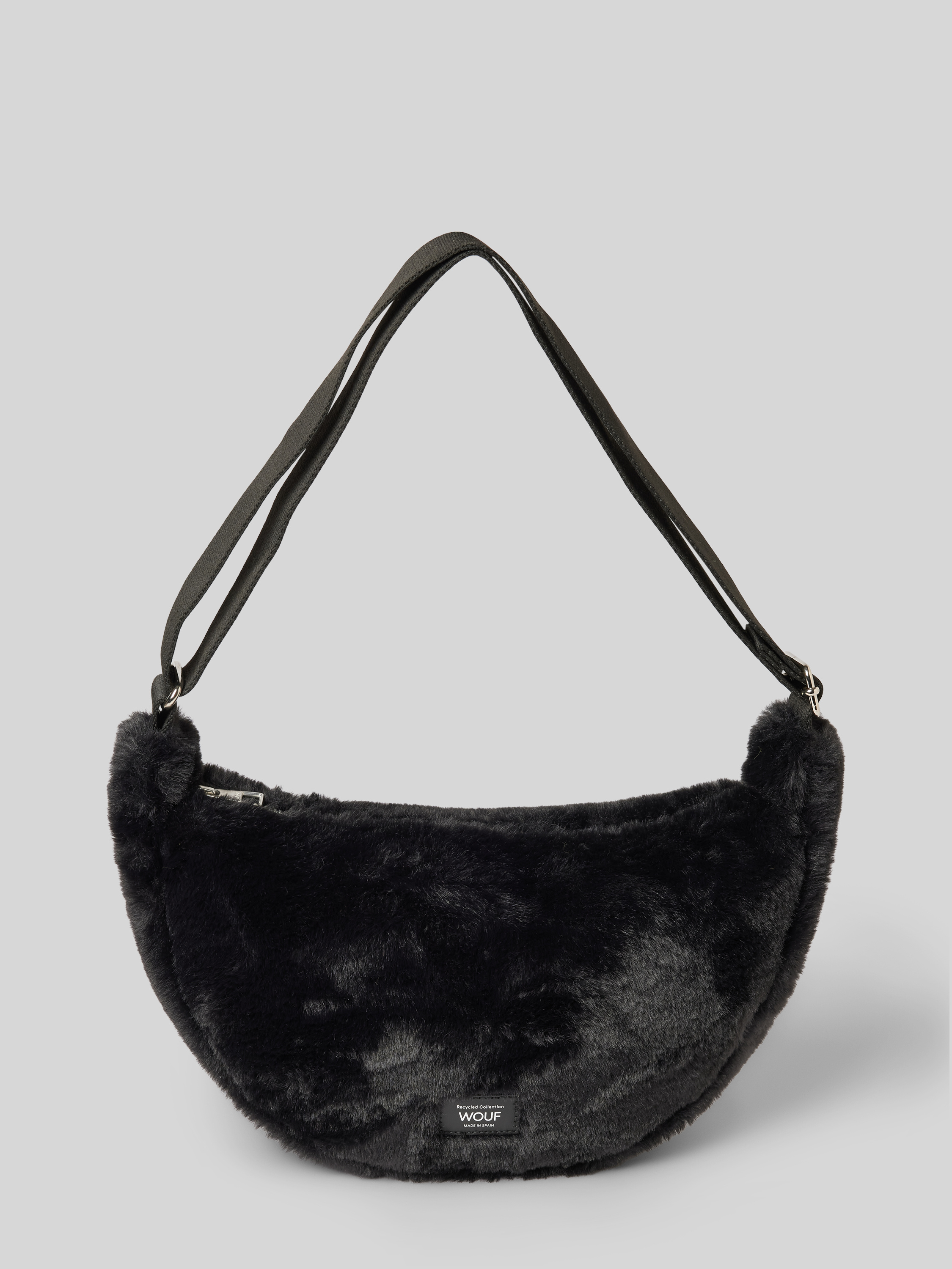 Schoudertas met labelpatch, model 'Black Forest' in zwart
