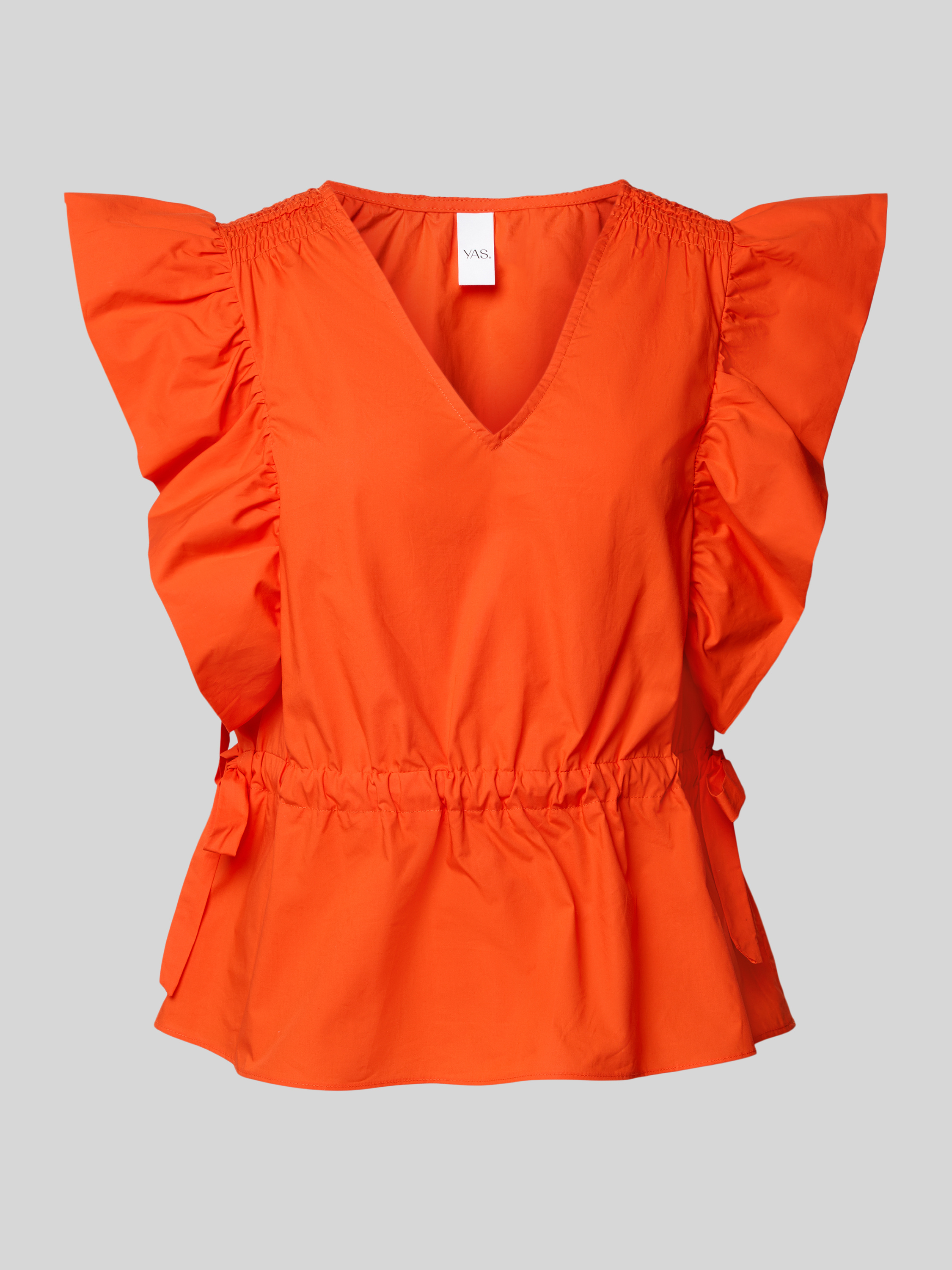 Blousetop met V-hals en volants, model 'ULEA' in rood