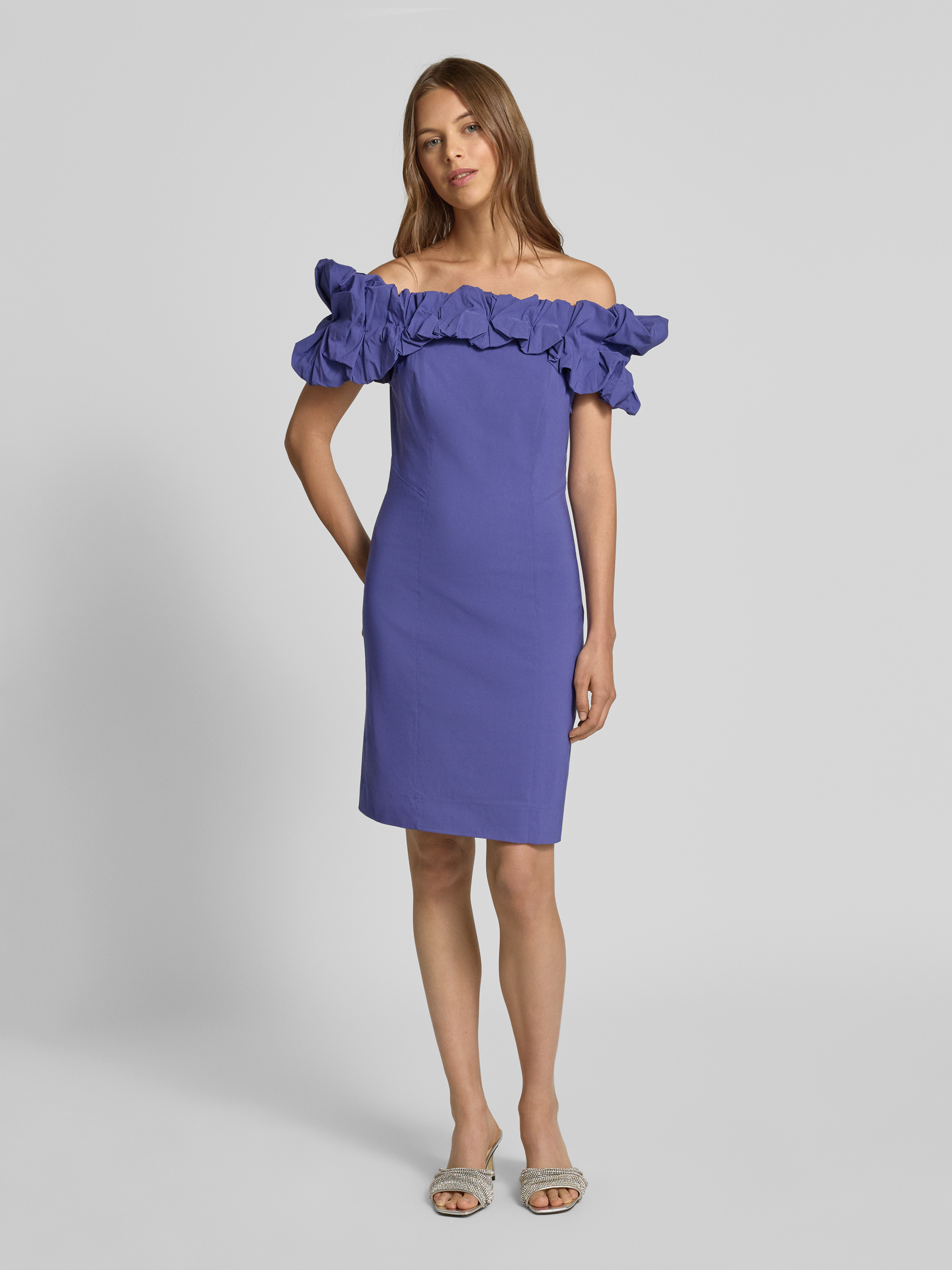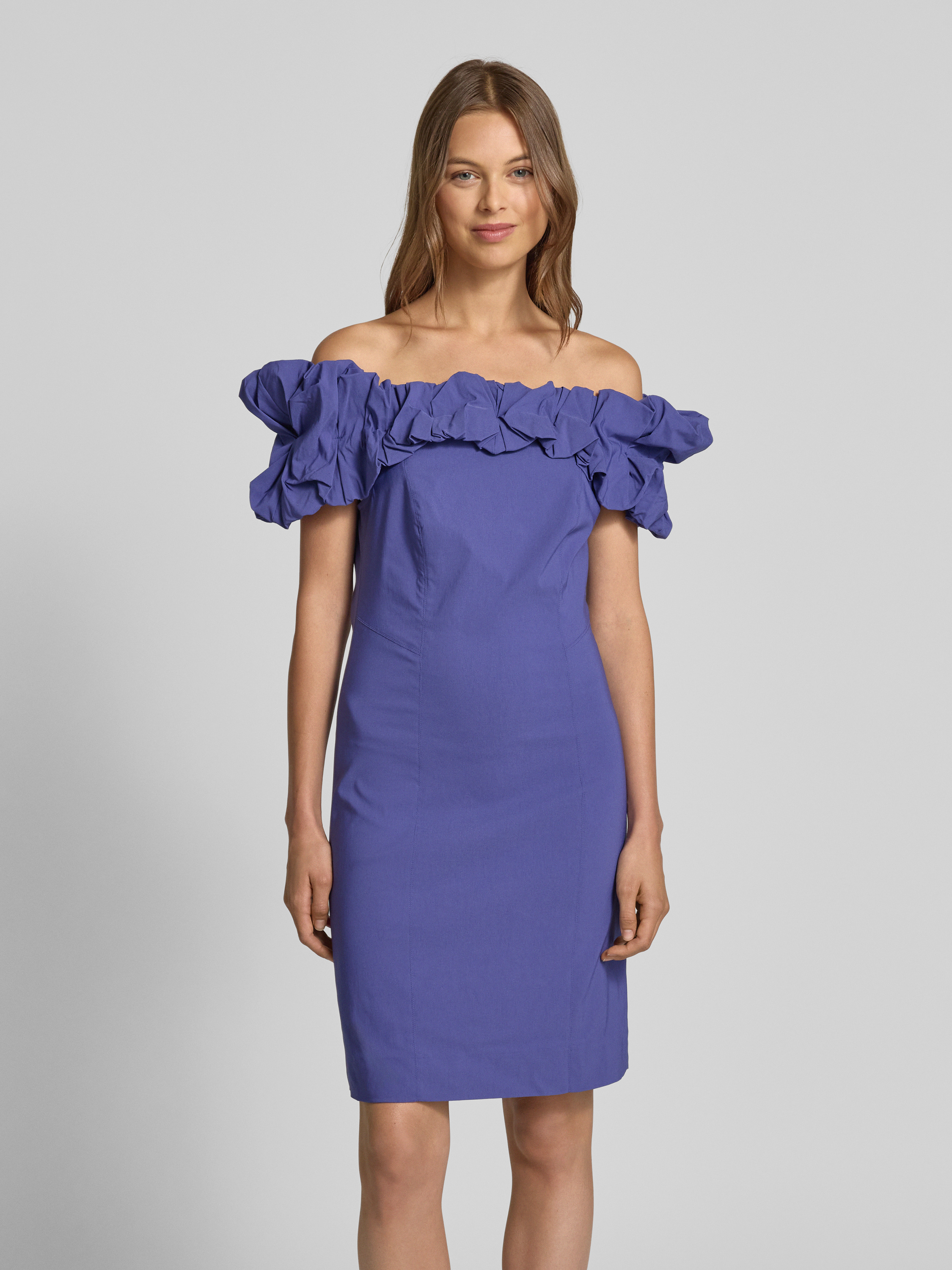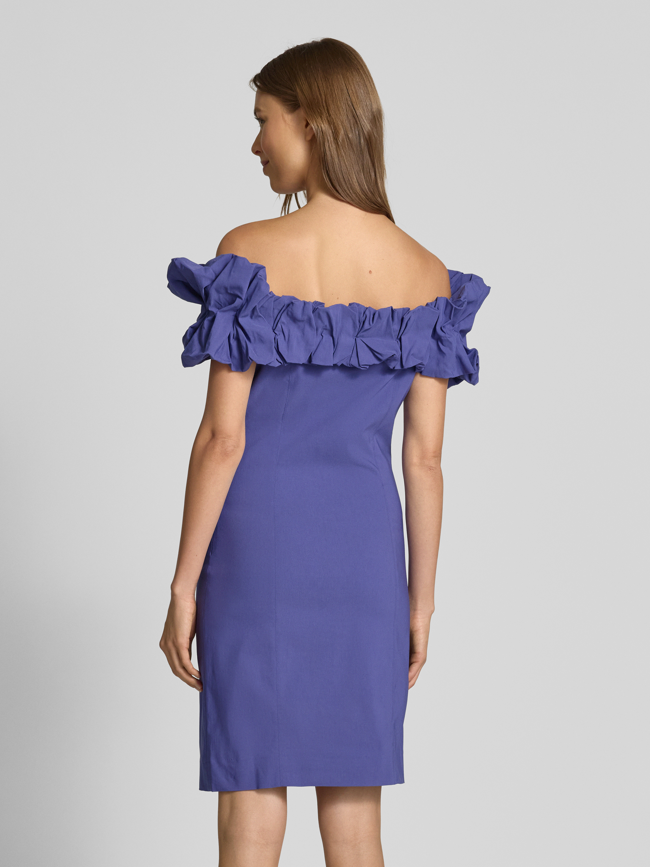 Cocktailjurk met carmenhals, model 'CARRIE' in bleu