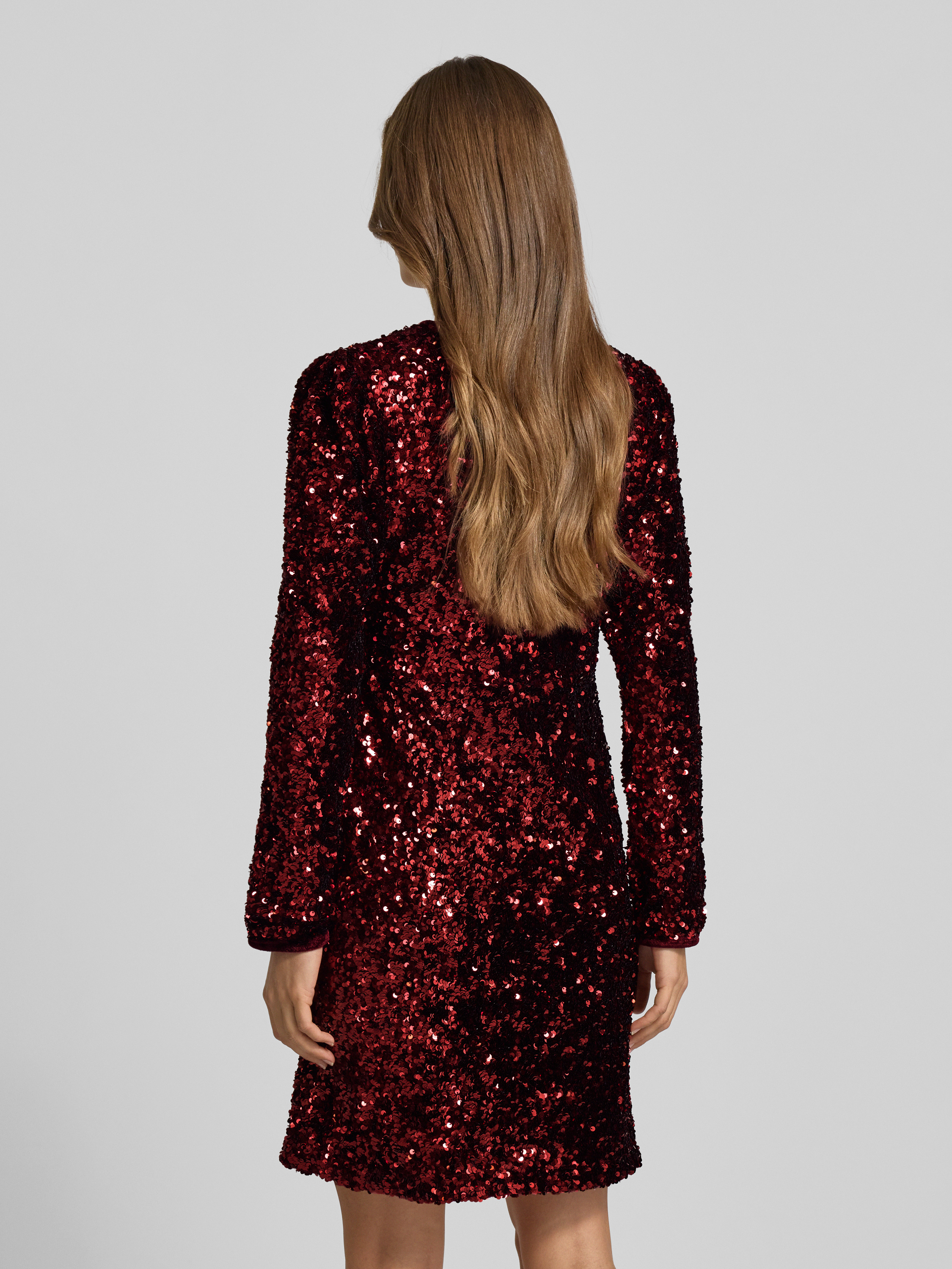 YASCocktailjurk met pailletten, model 'ELLE' in bordeaux