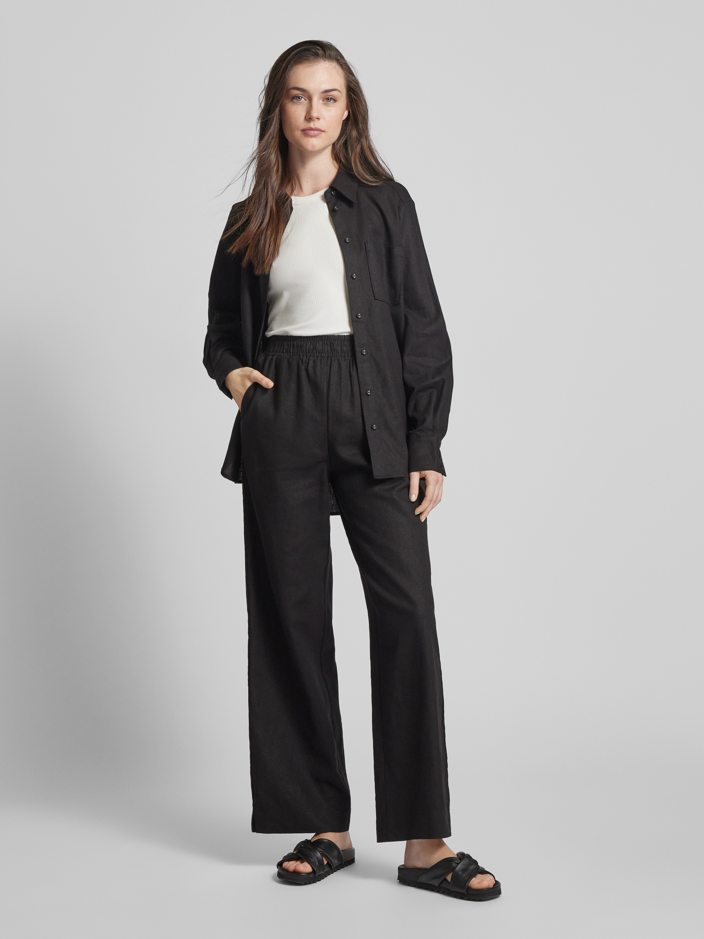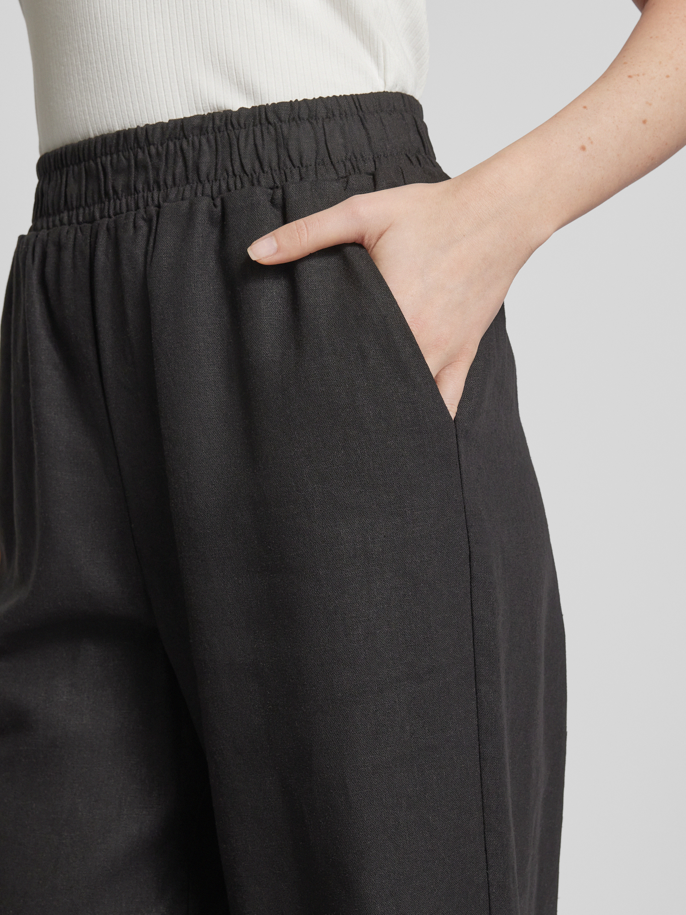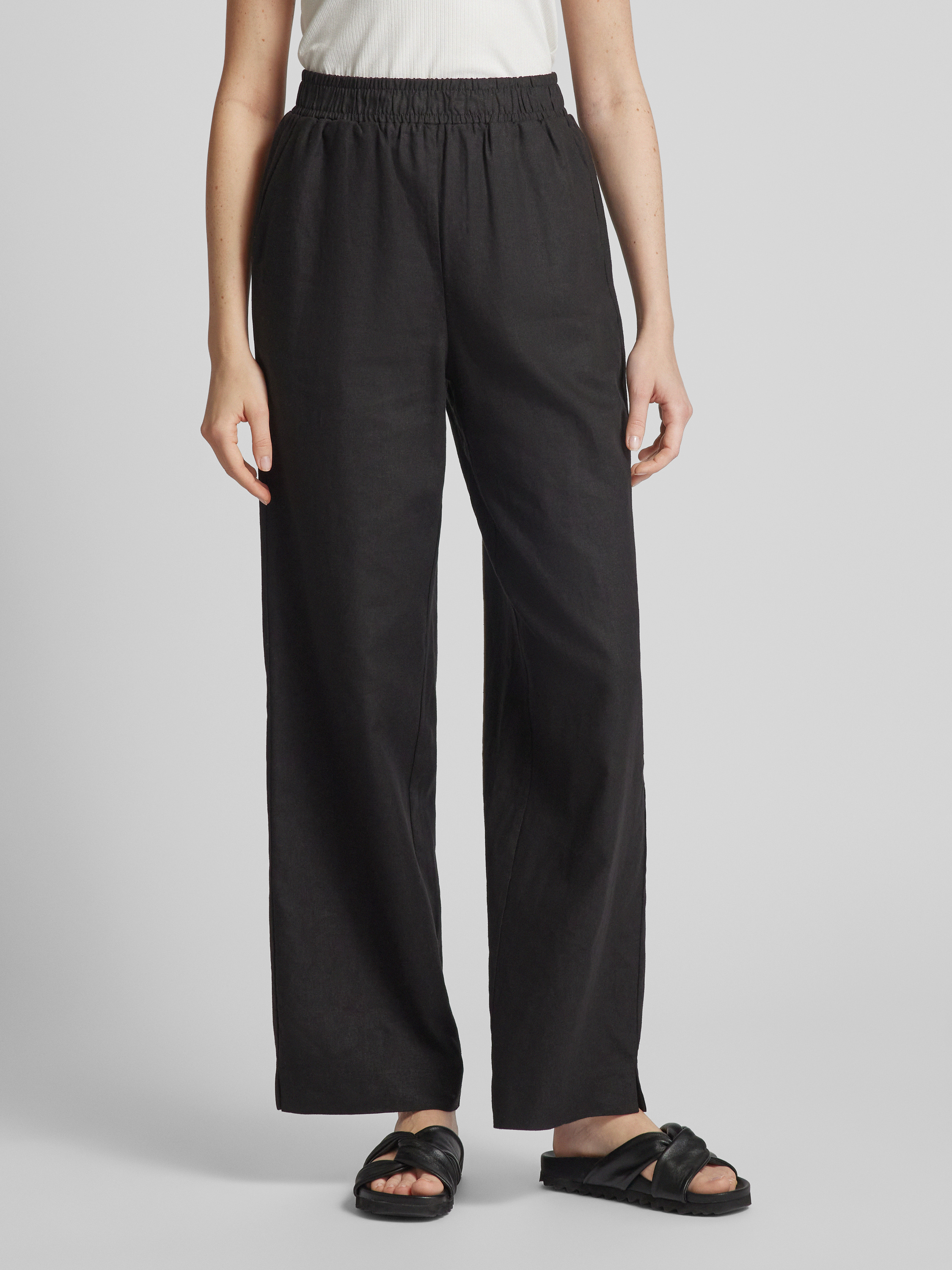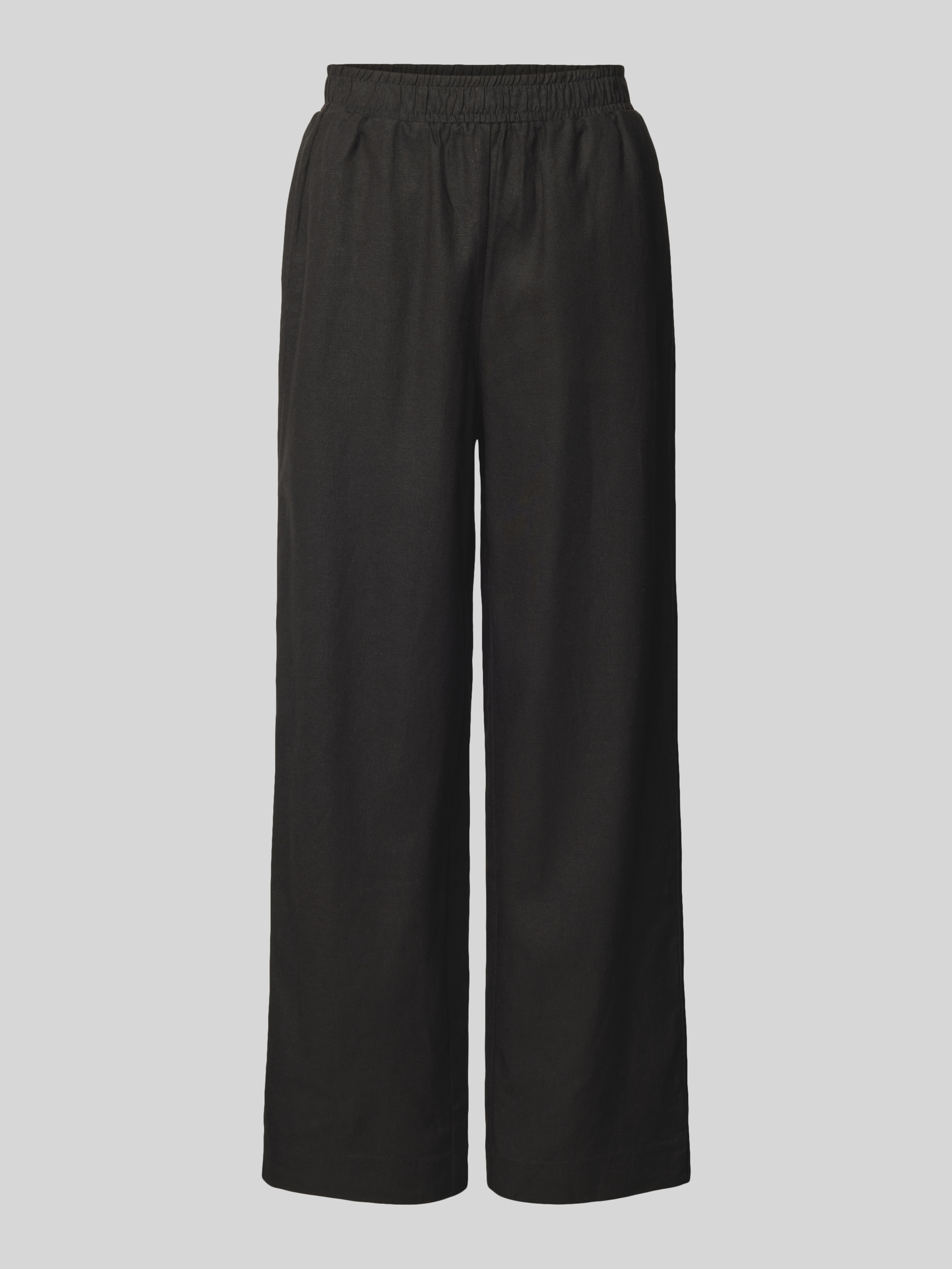 Flared linnen broek met elastische band, model 'YASFLAXY' in zwart