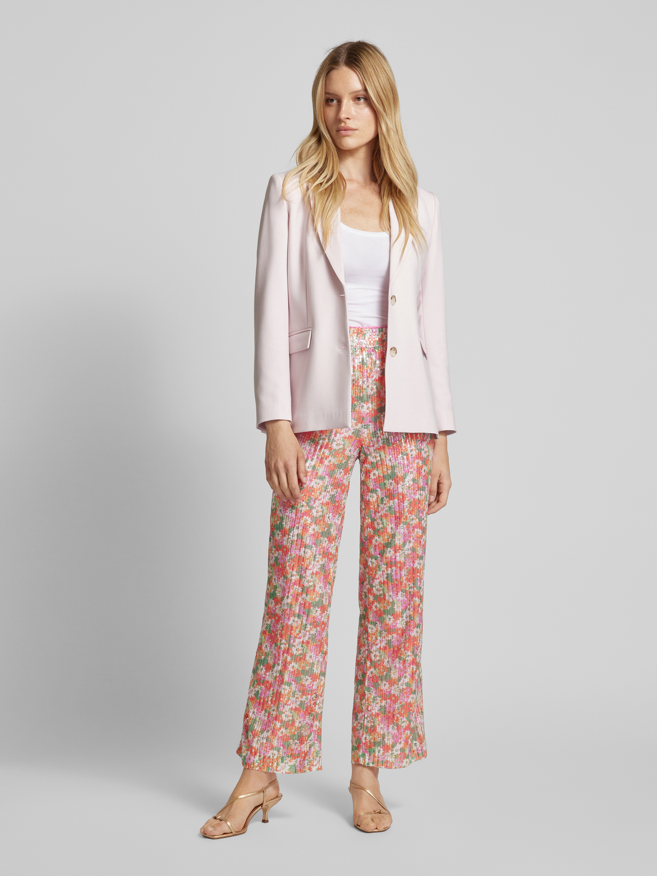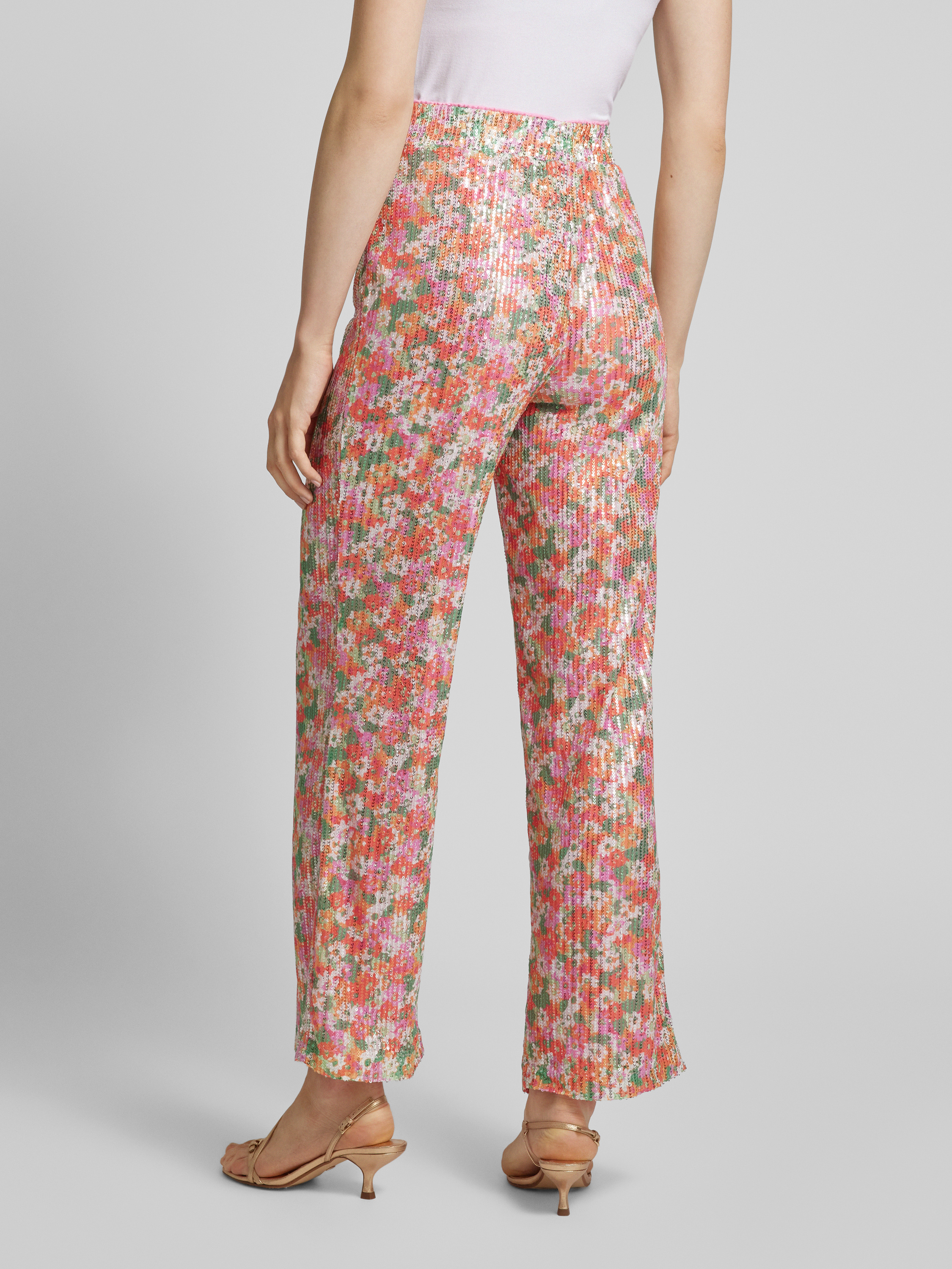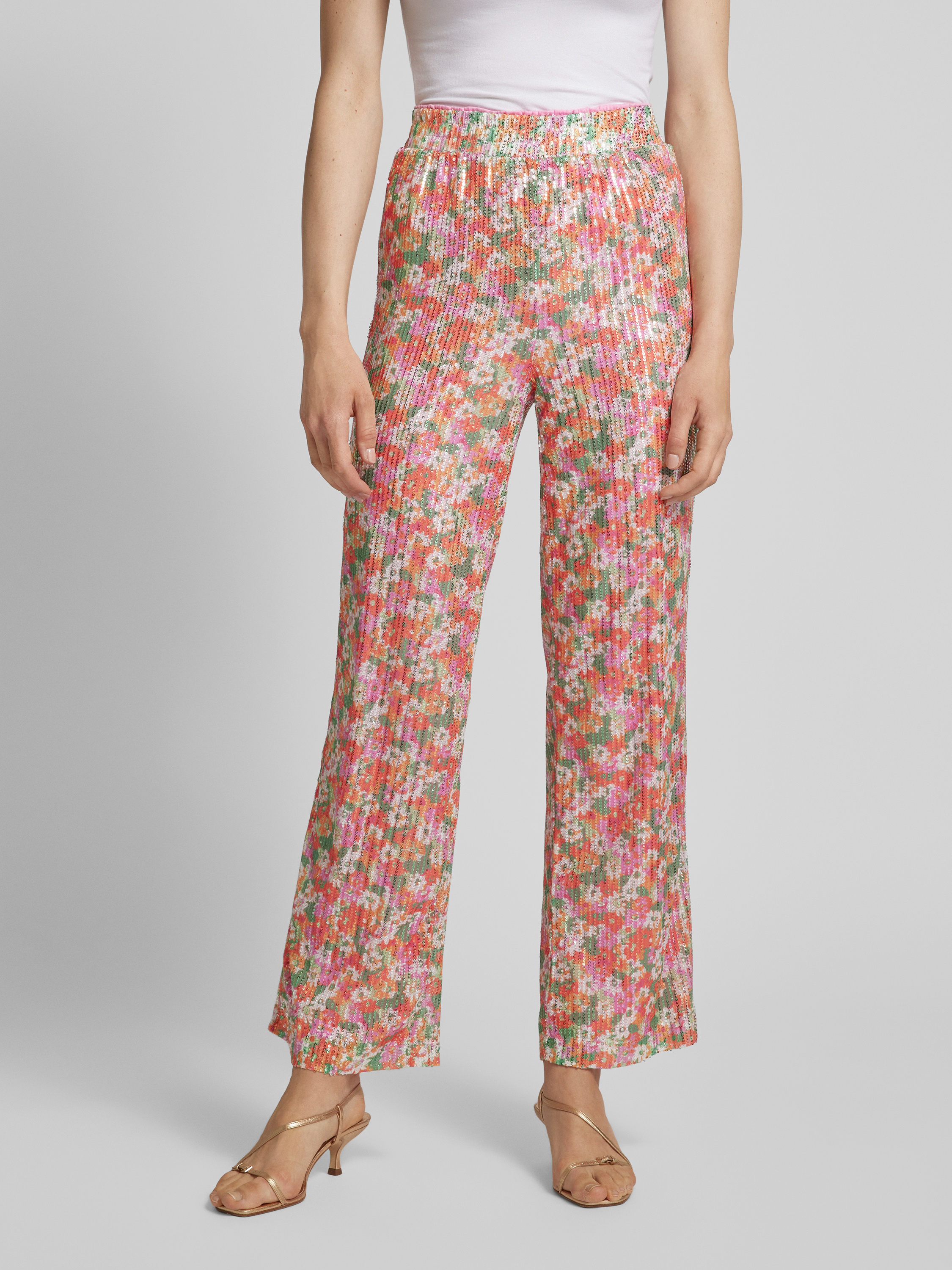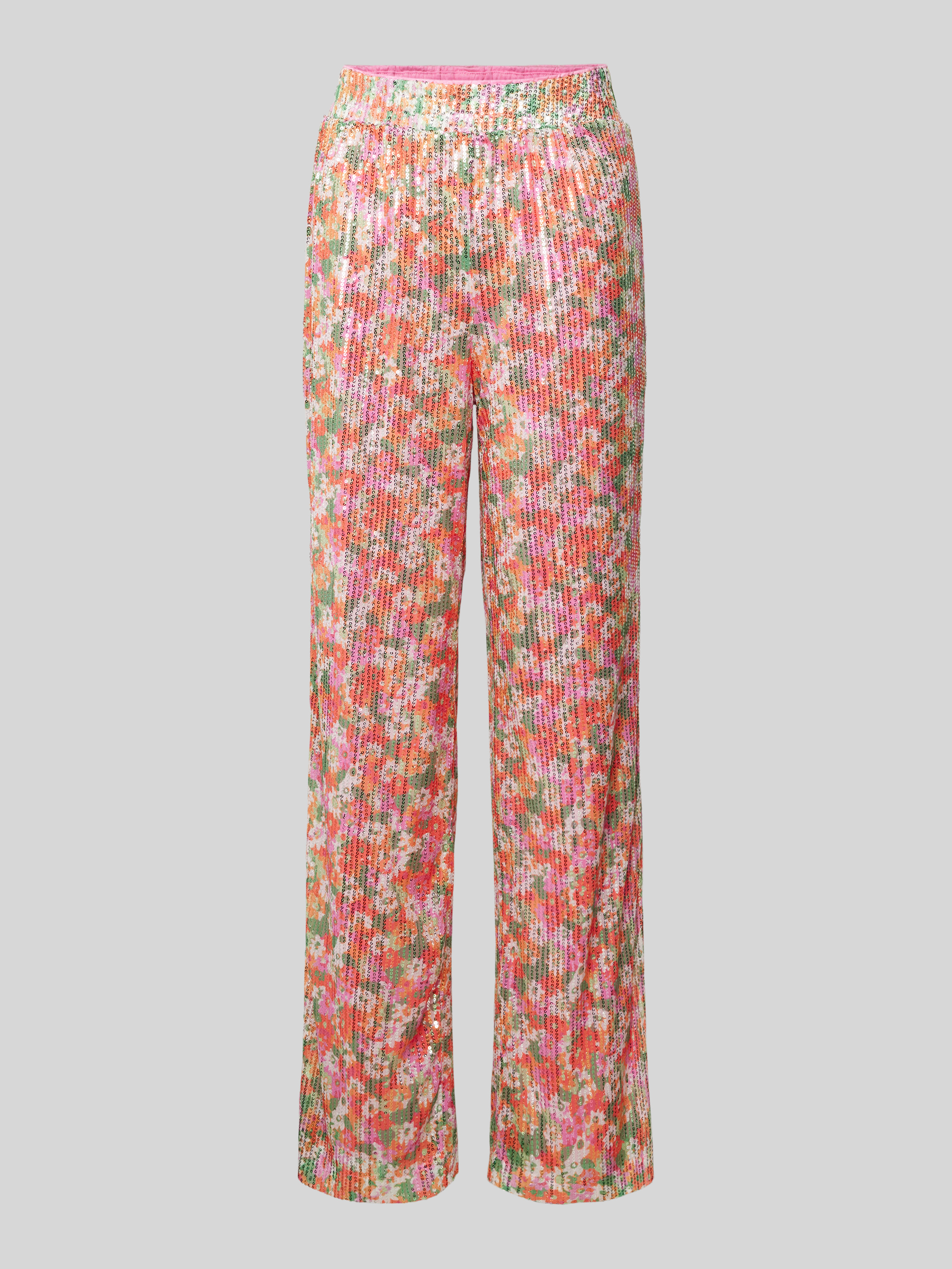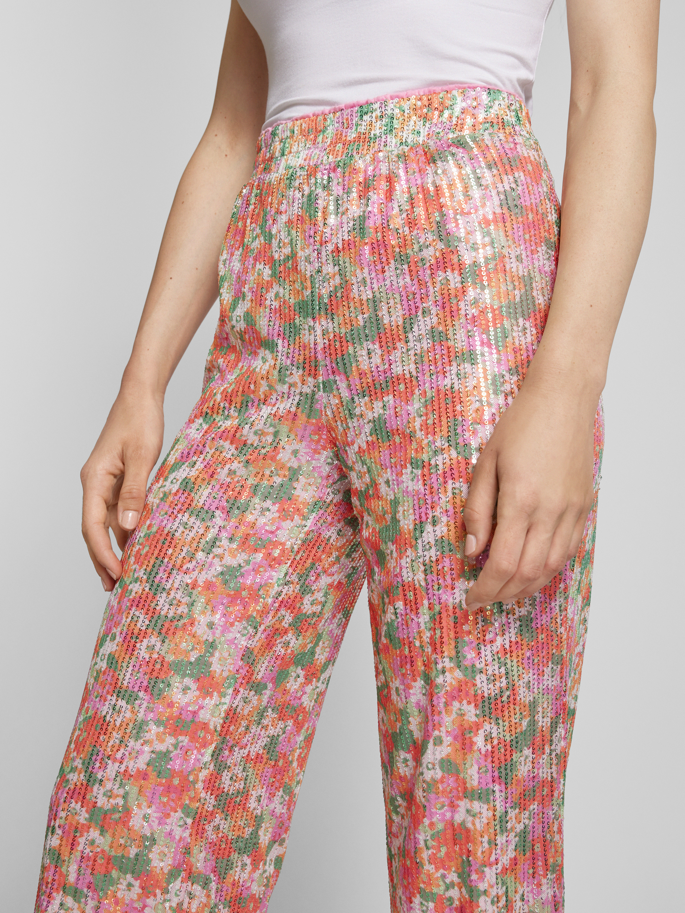 Flared stoffen broek met pailletten, model 'KAIA' in roze