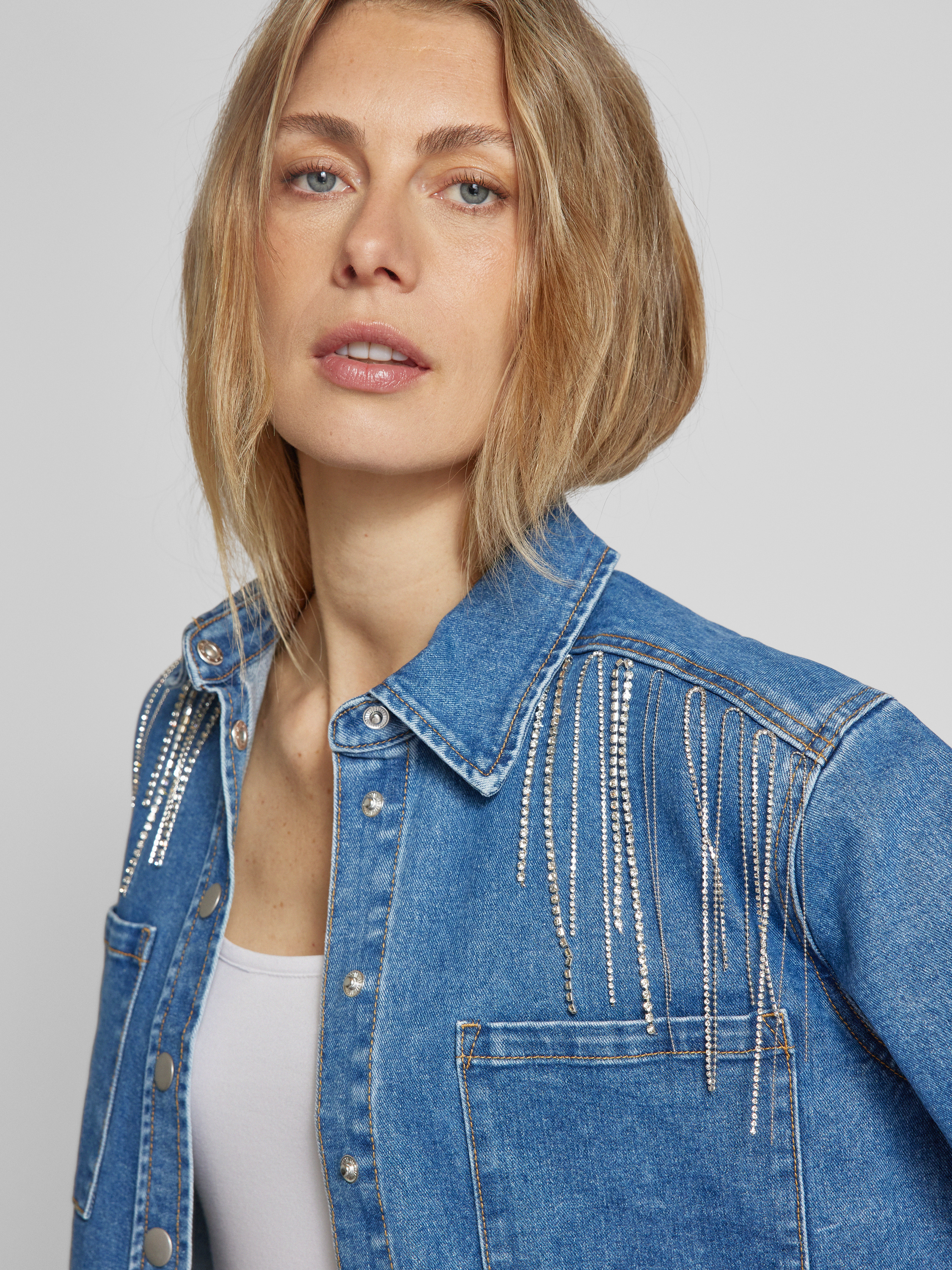 Jeansjack met strass-steentjes, model 'CONNELLY' in lichtblauw