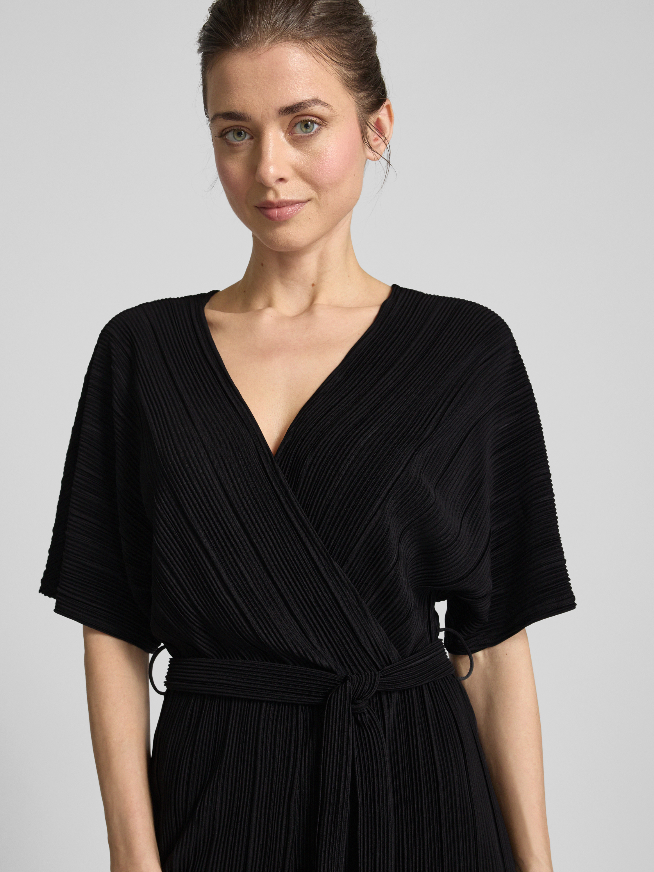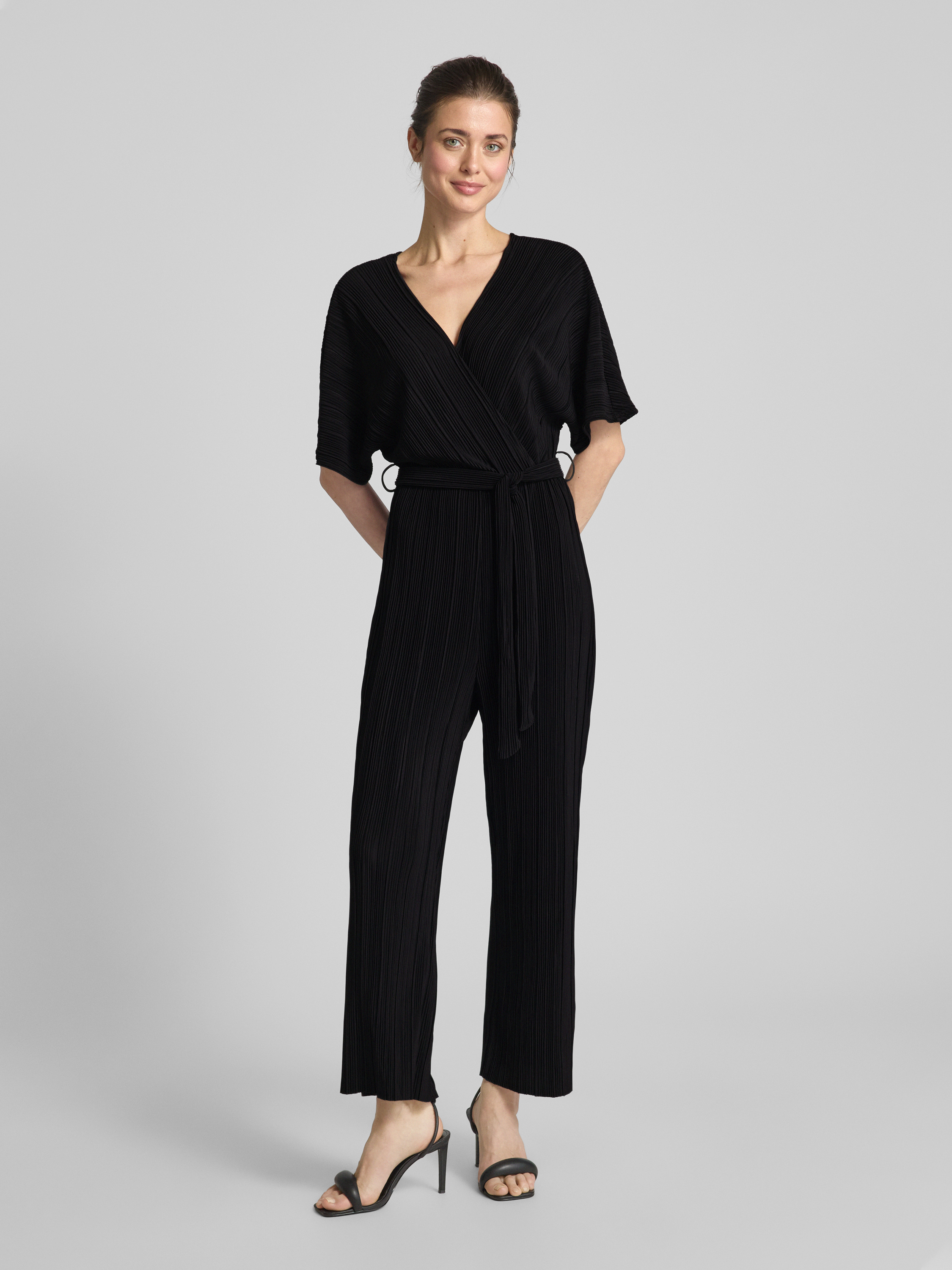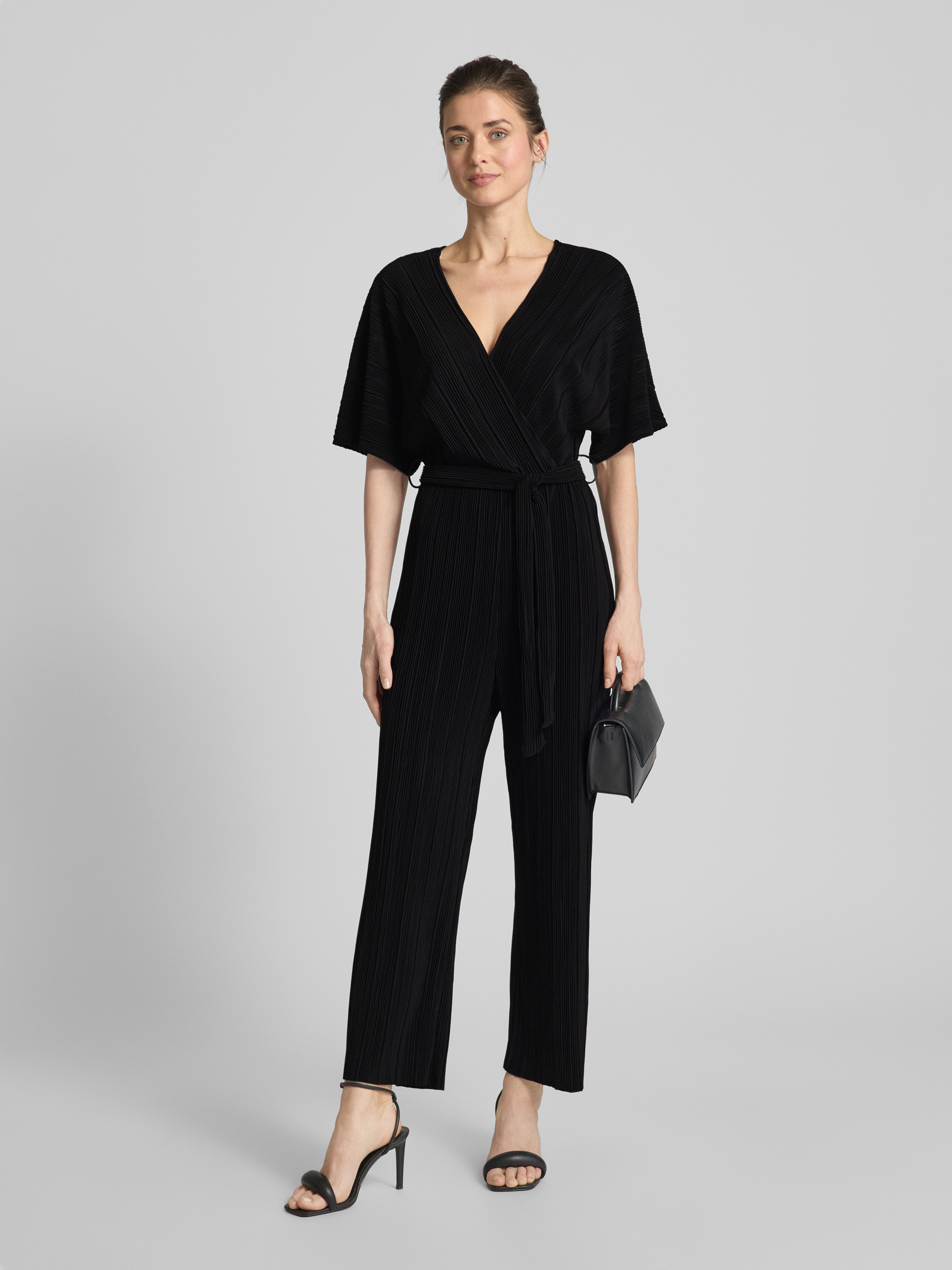 Jumpsuit in wikkellook, model 'OLINDA' in zwart