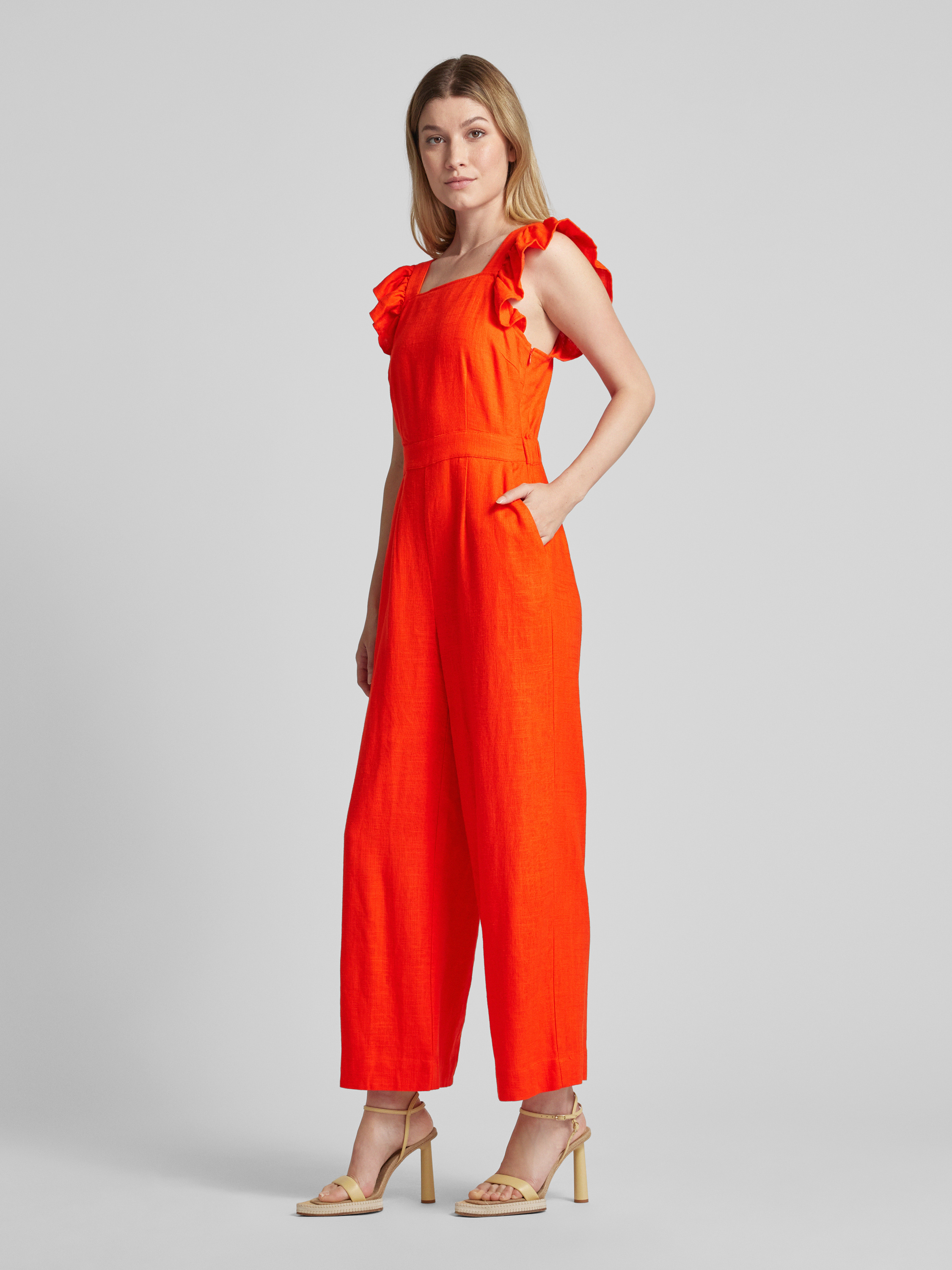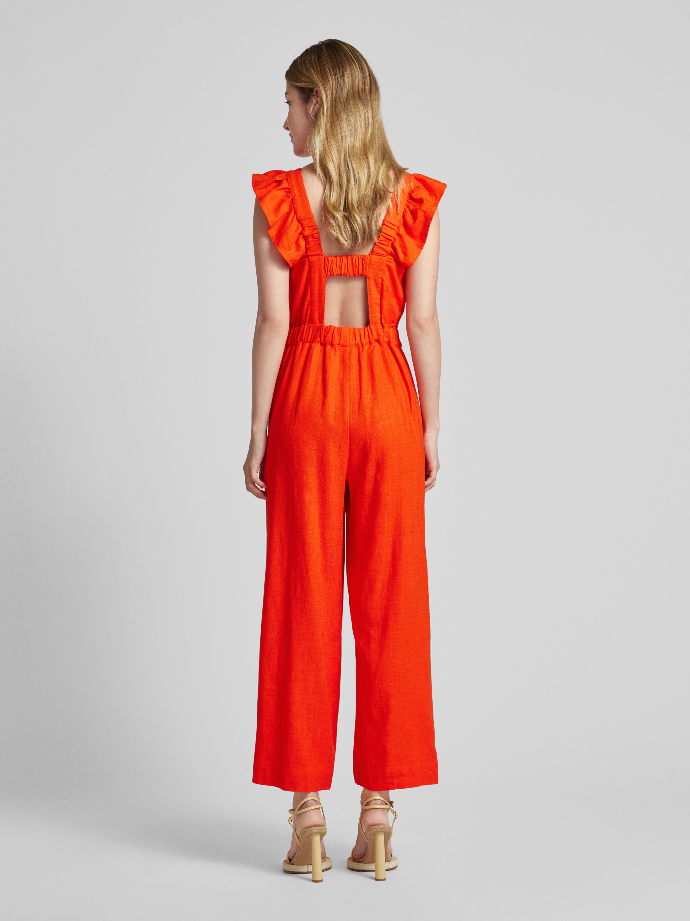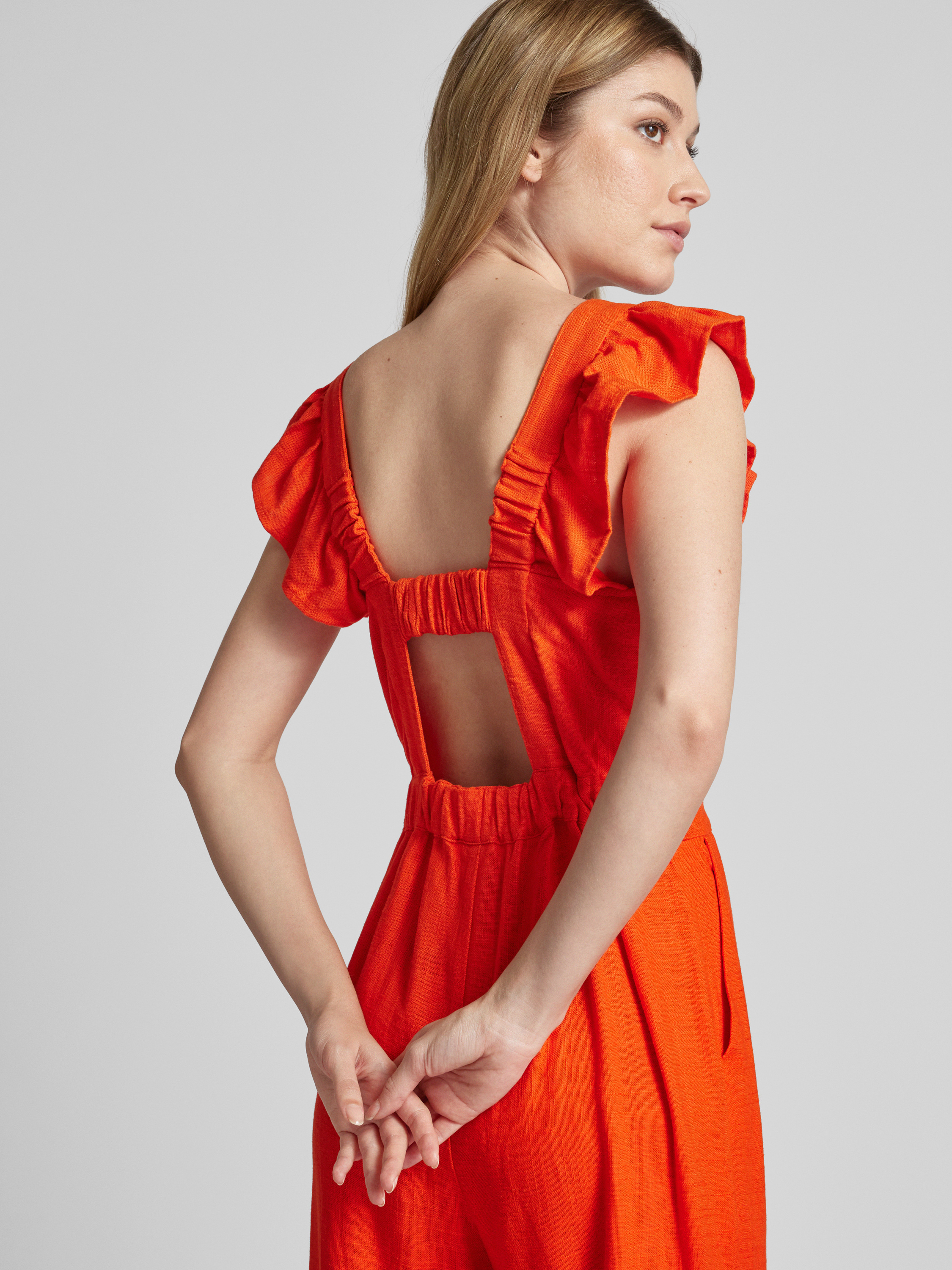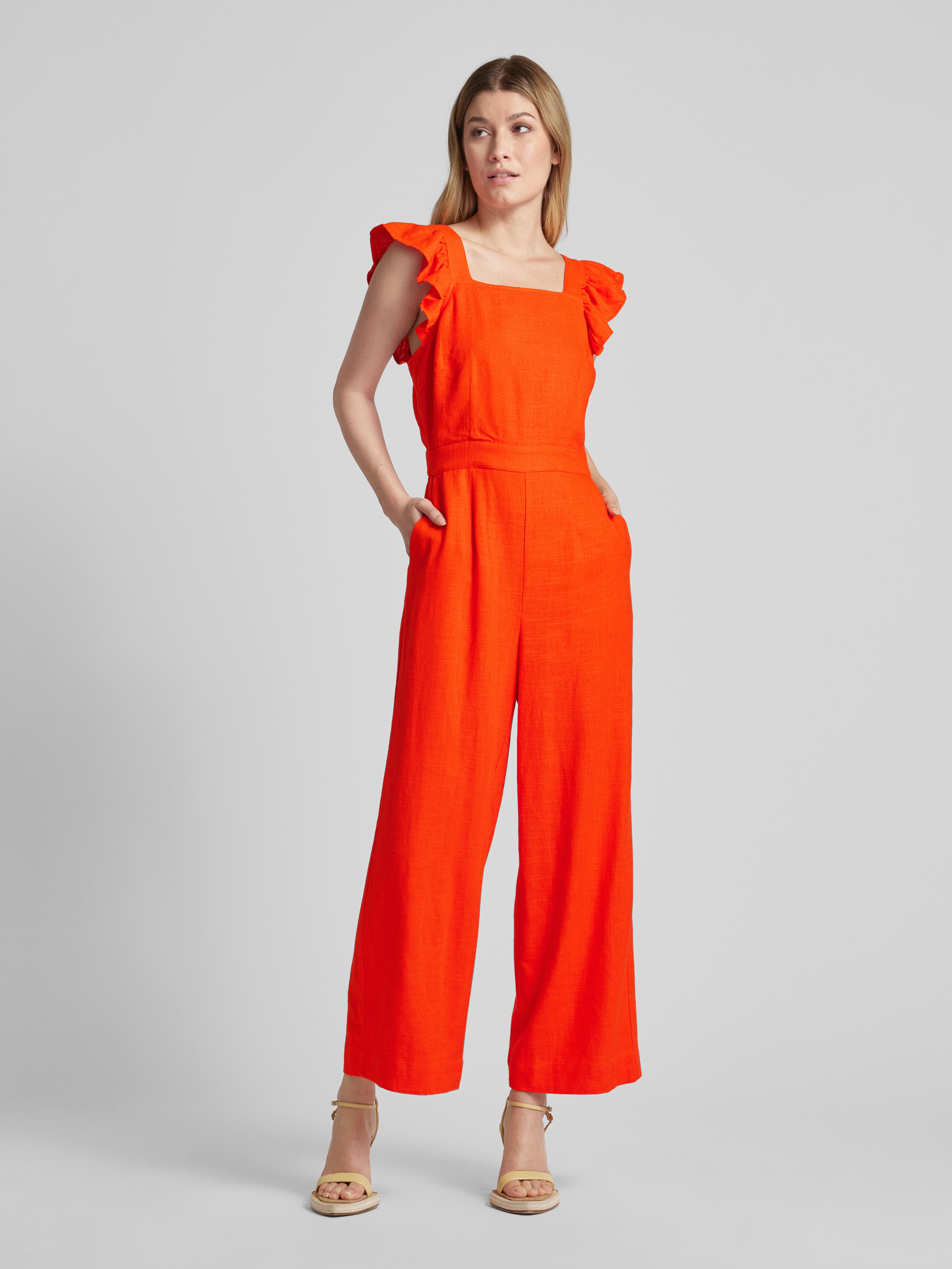 Jumpsuit van een mix van viscose en linnen, model 'YASISMA' in oranje