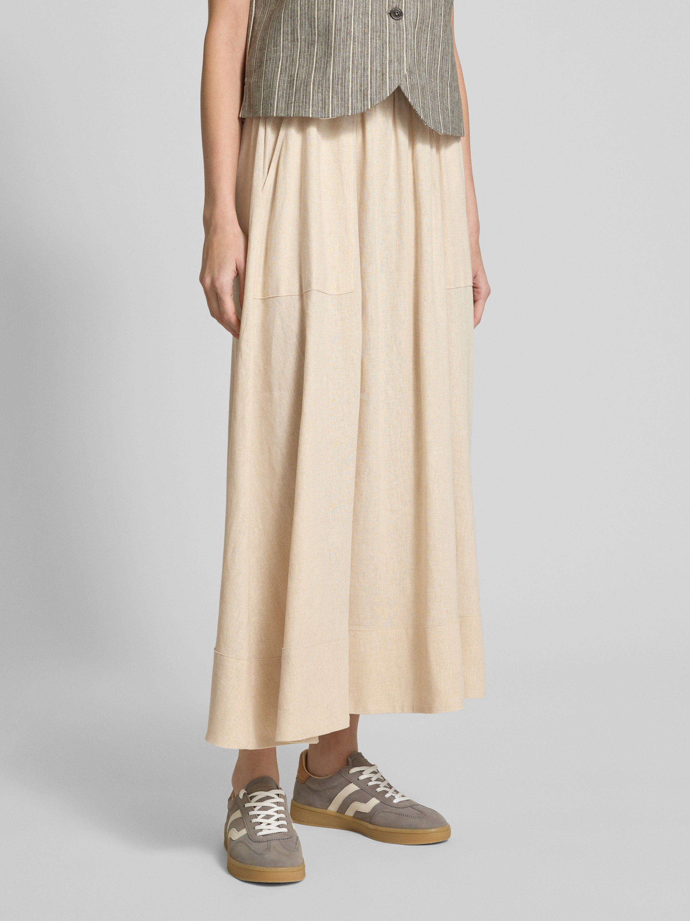 Linnen broek met elastische band, model 'FLAXY' in beige