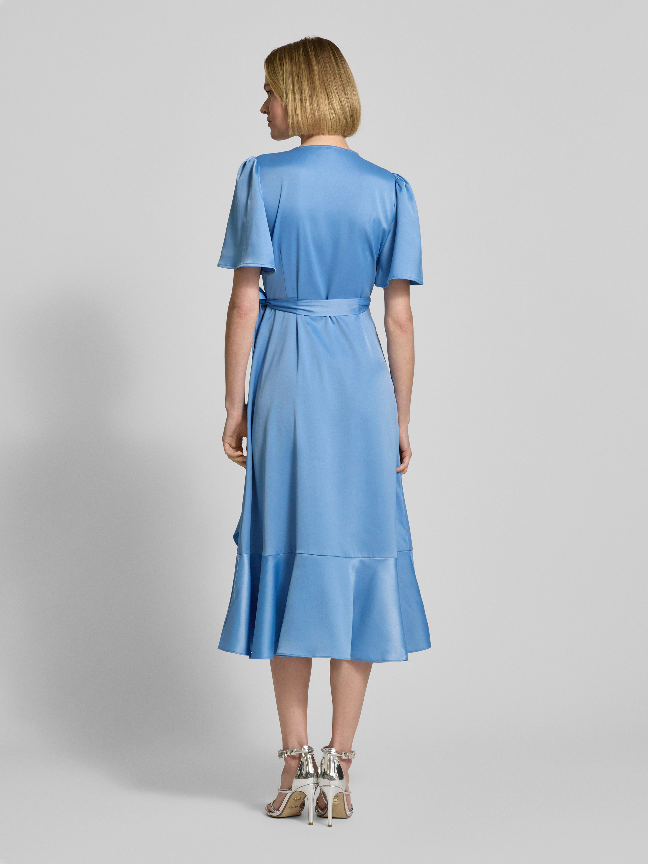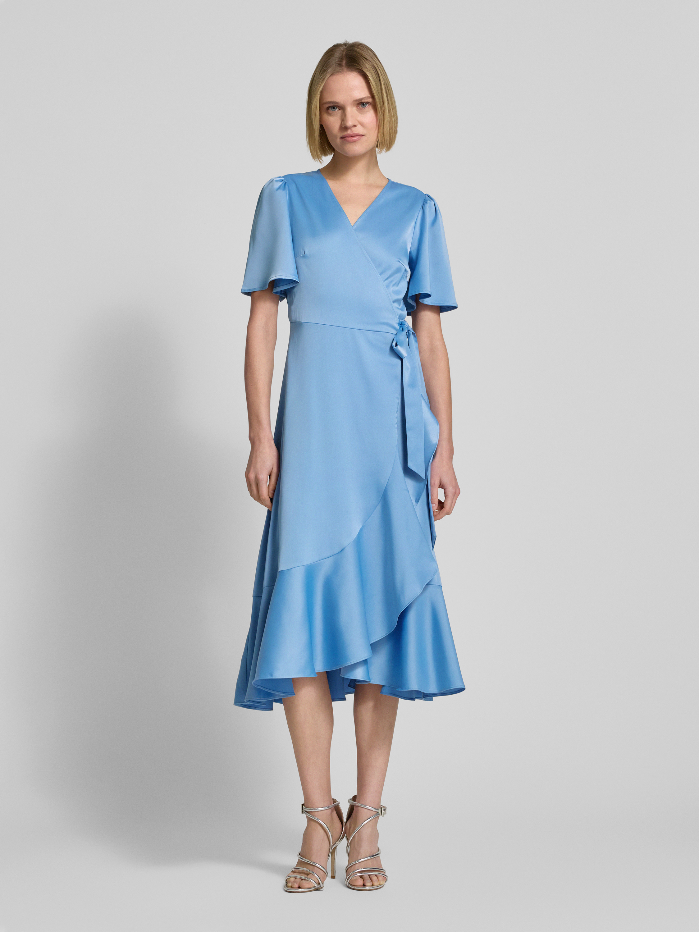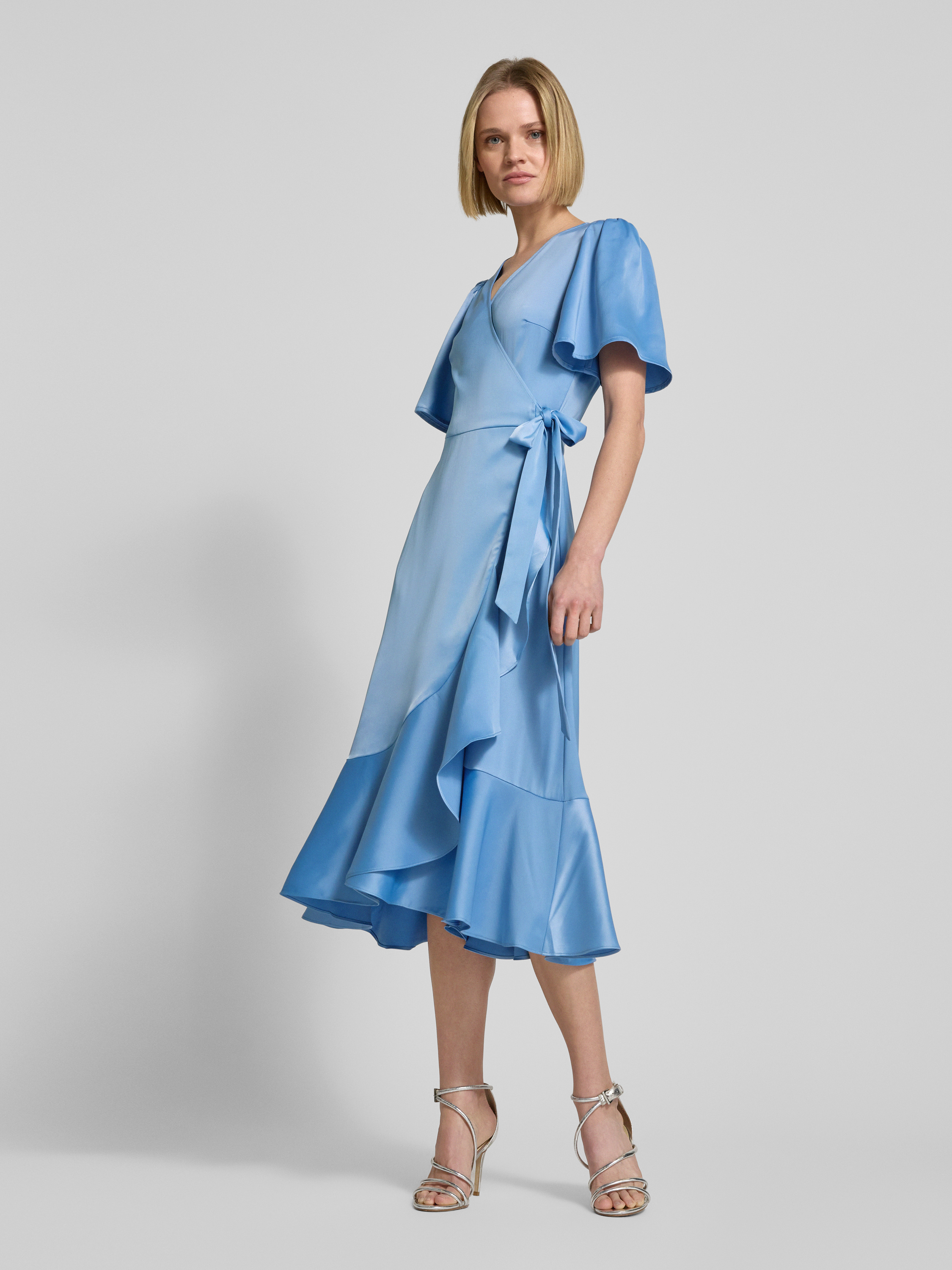 Midi-jurk in wikkellook, model 'Thea' in bleu