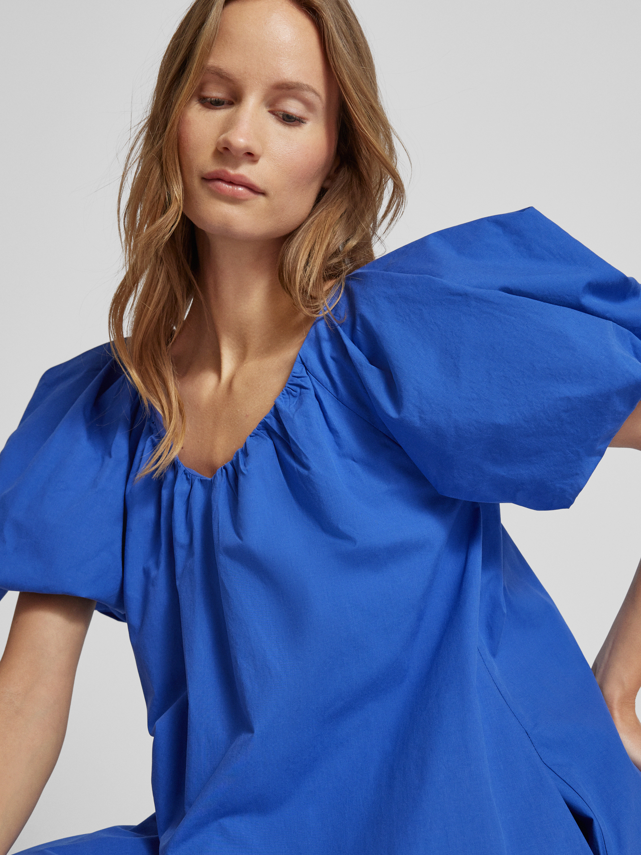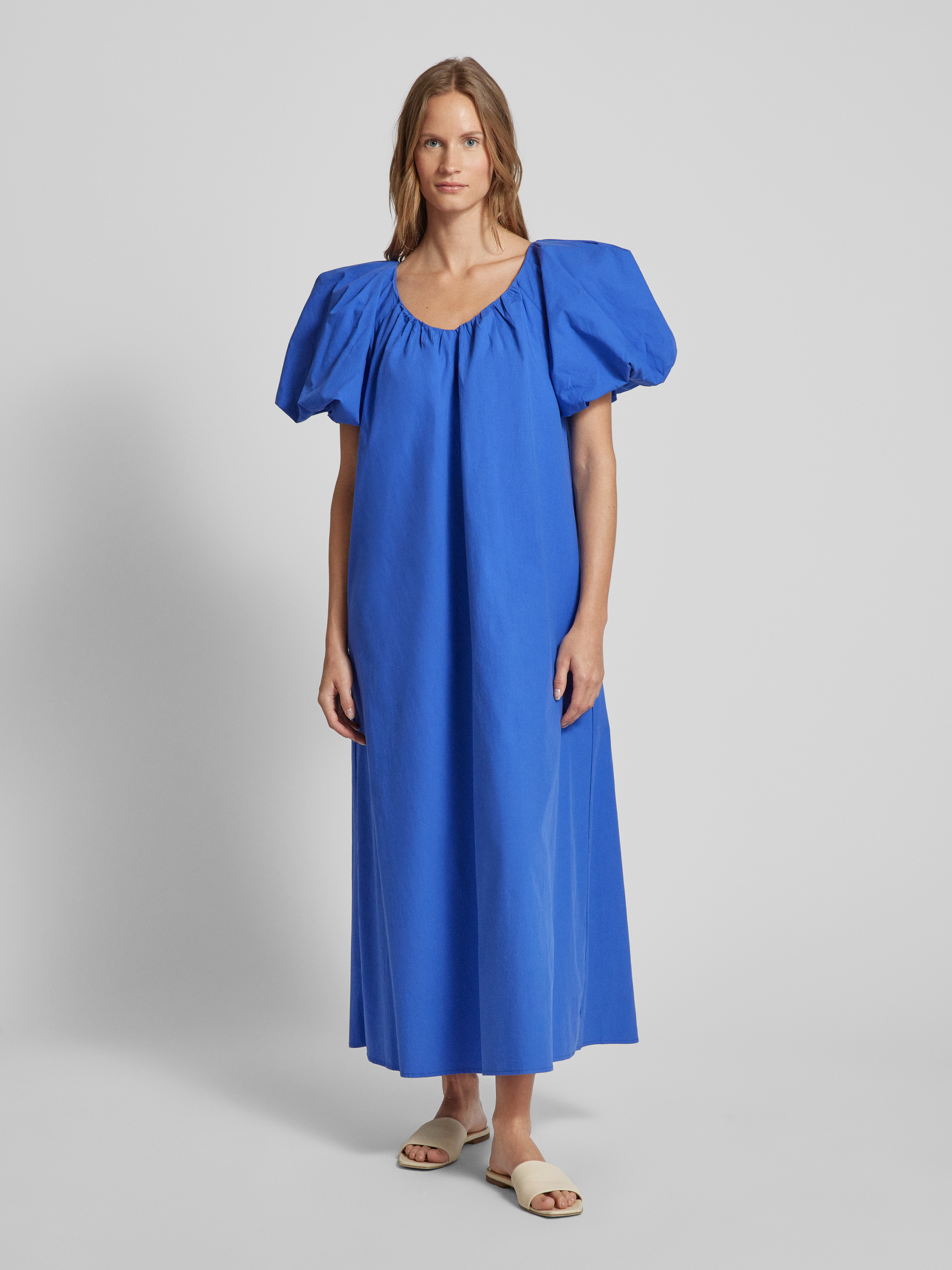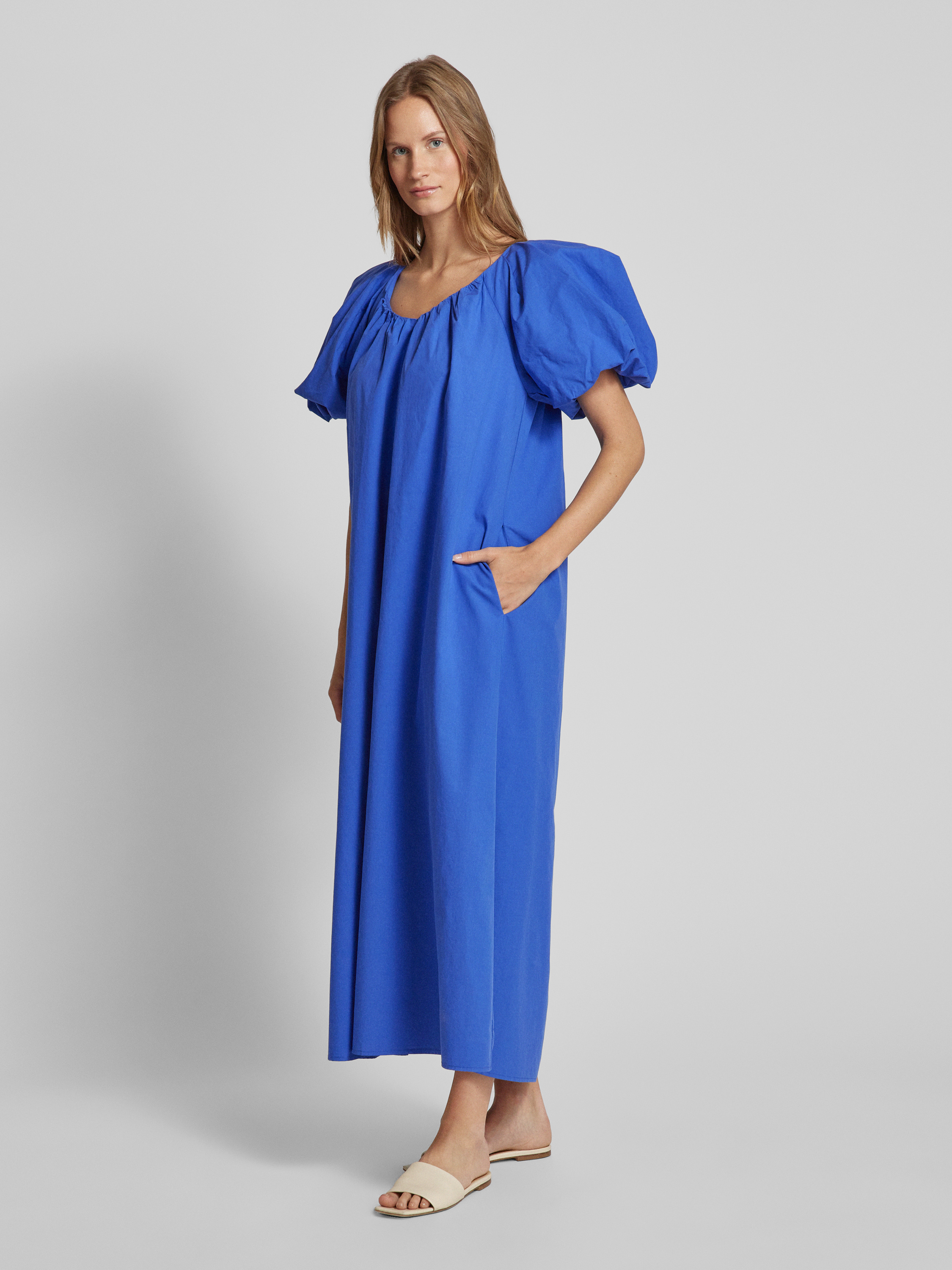 Midi-jurk met pofmouwen, model 'OLEGA' in koningsblauw