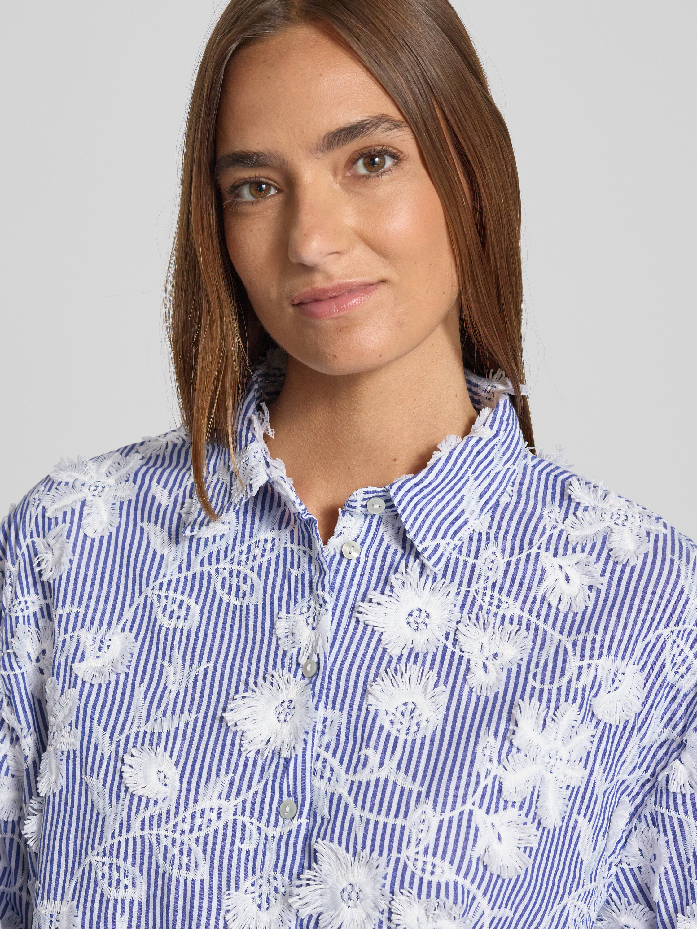 Regular fit overhemdblouse met bloemeborduursels, model 'MEMLY' in lichtblauw