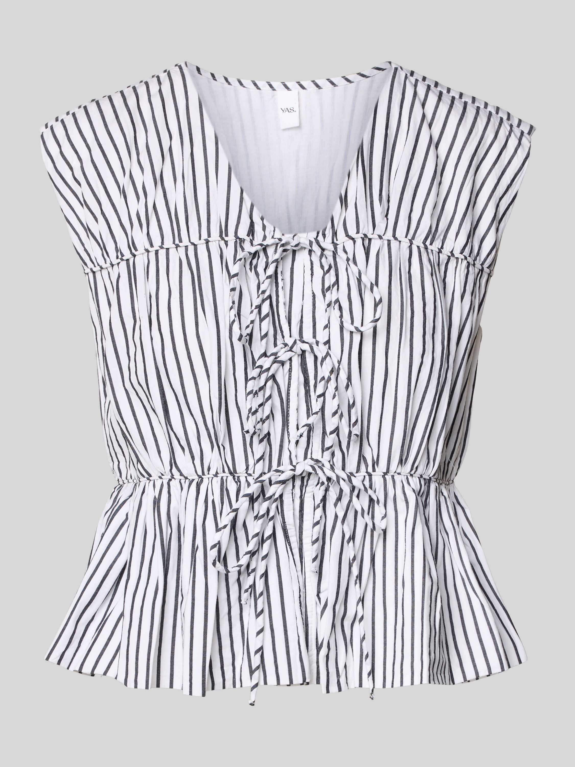 Relaxed fit blousetop met vetersluiting, model 'EBBA' in offwhite