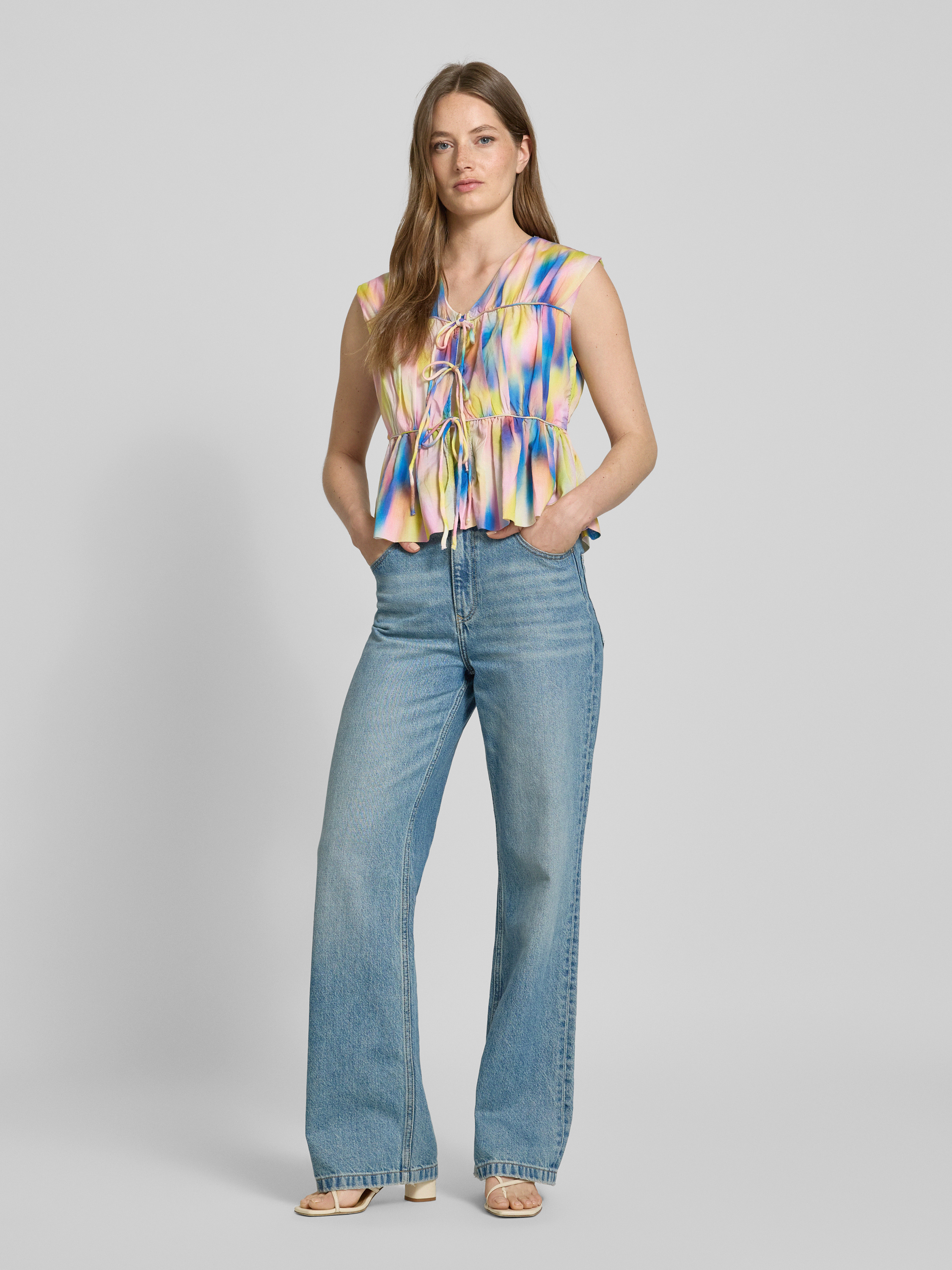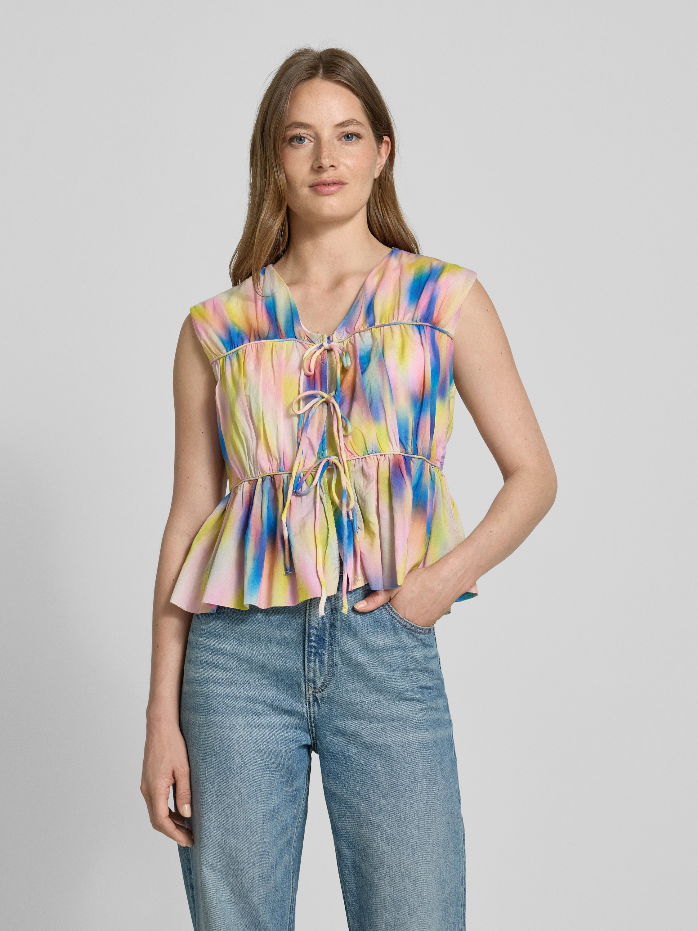 Relaxed fit blousetop met vetersluiting, model 'VIRANO' in felroze