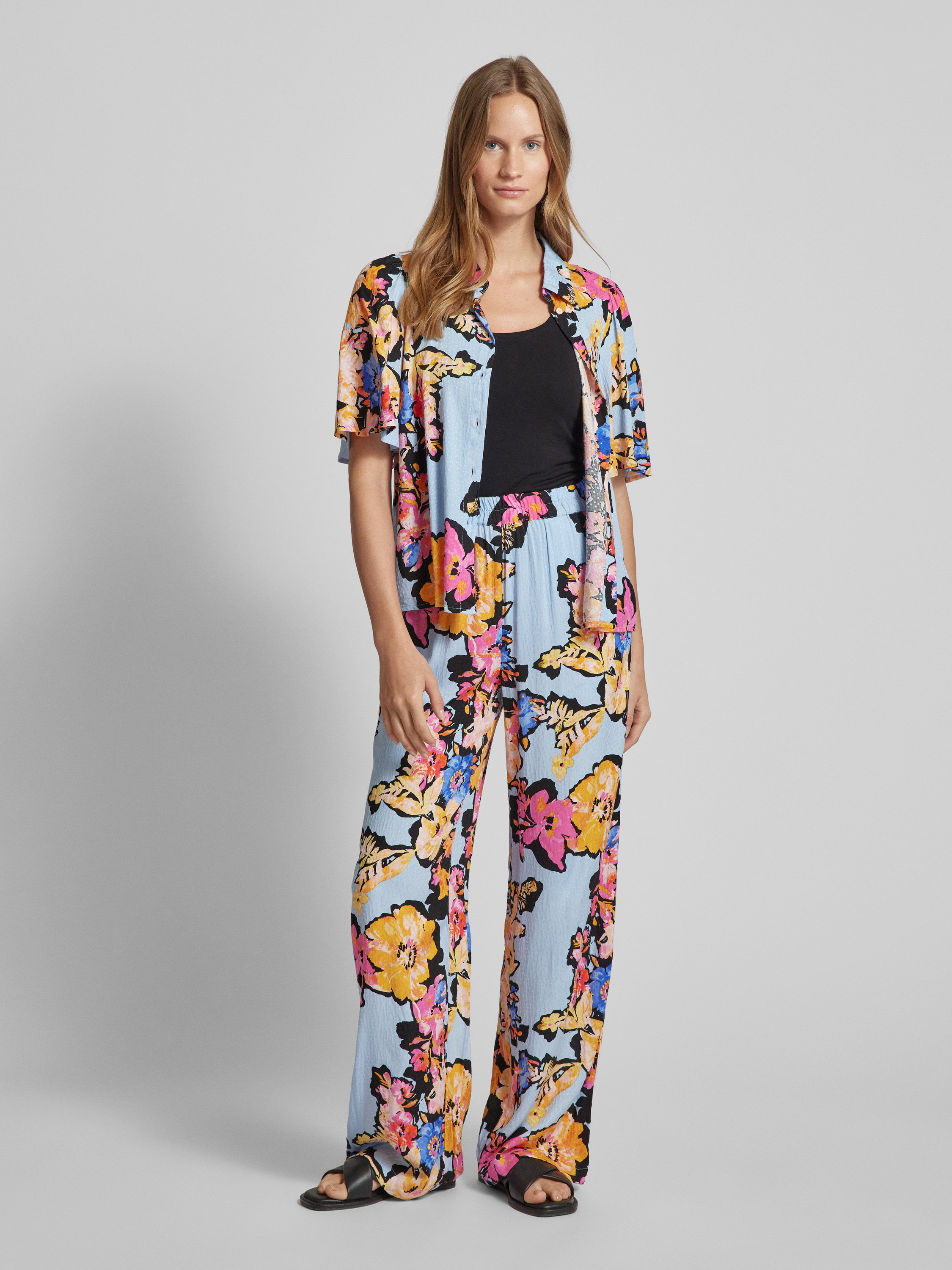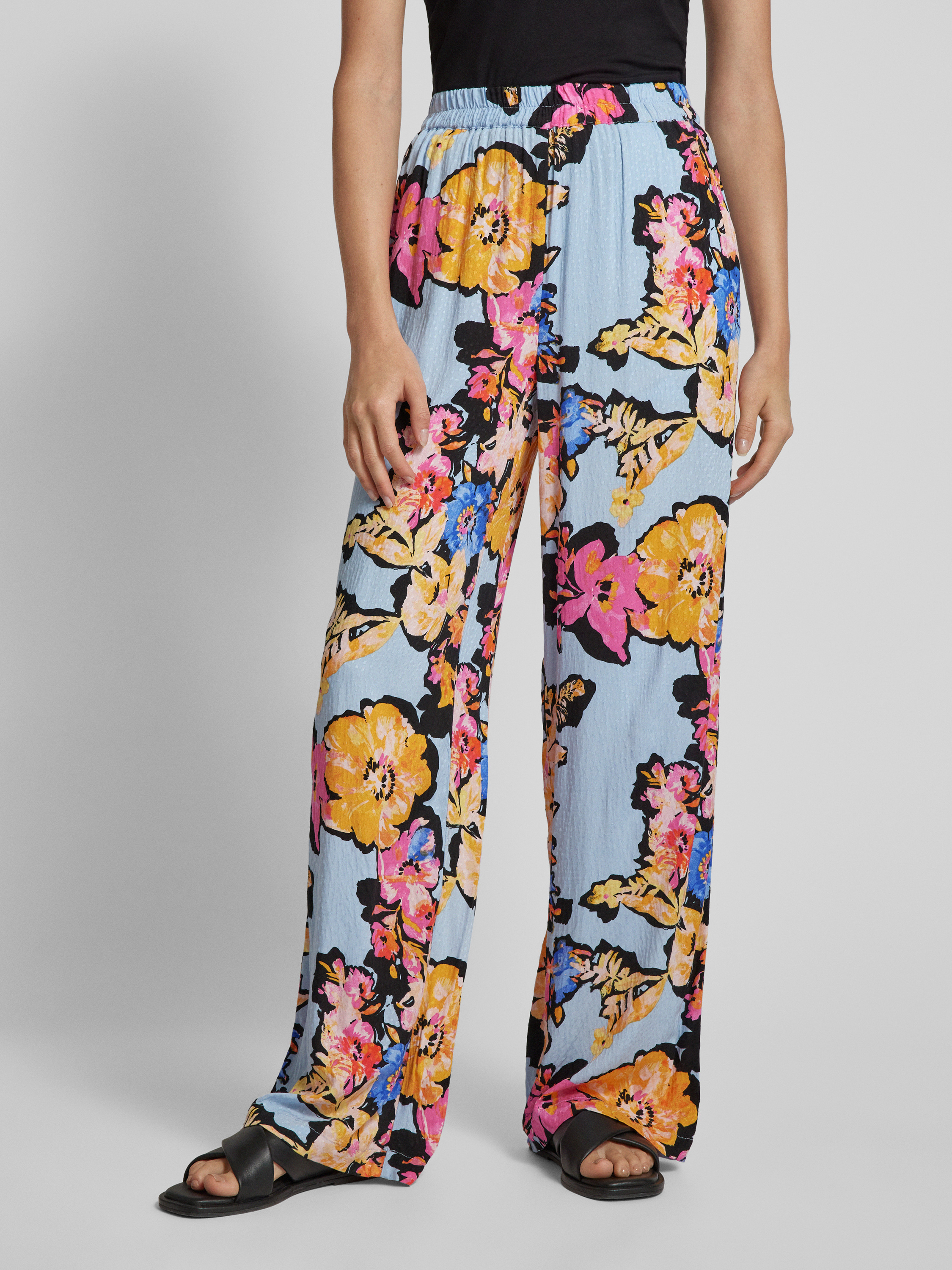 YASStoffen broek van viscose met bloemenmotief, model 'SINNA' in lichtblauw