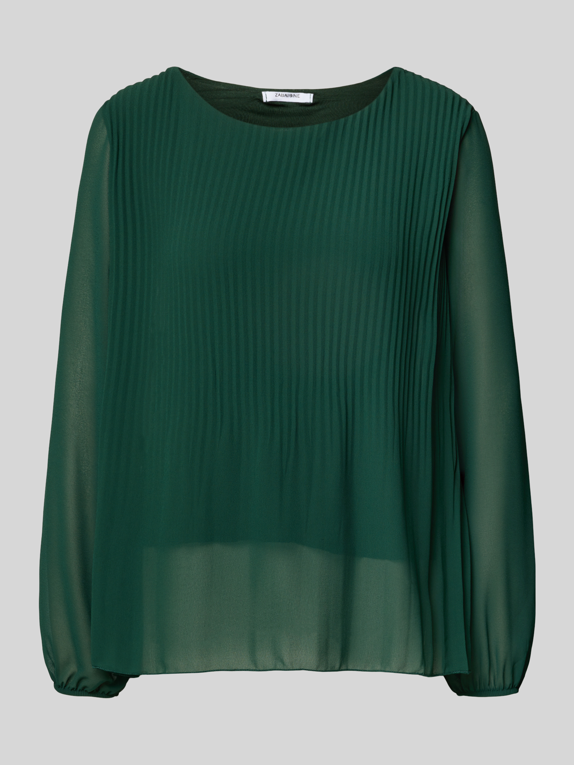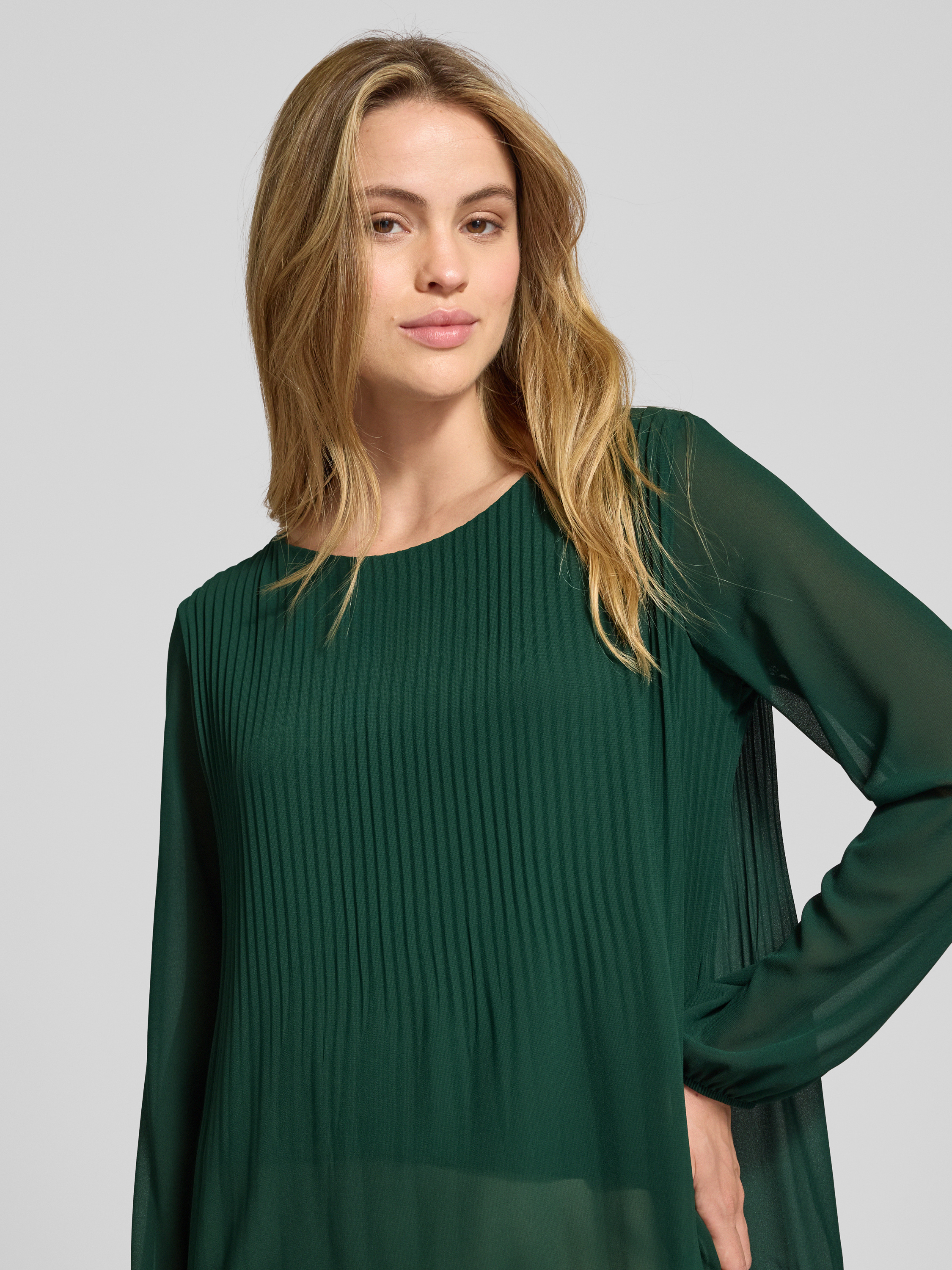 Blouse met lange mouwen met plissévouwen en ronde hals in donkergroen