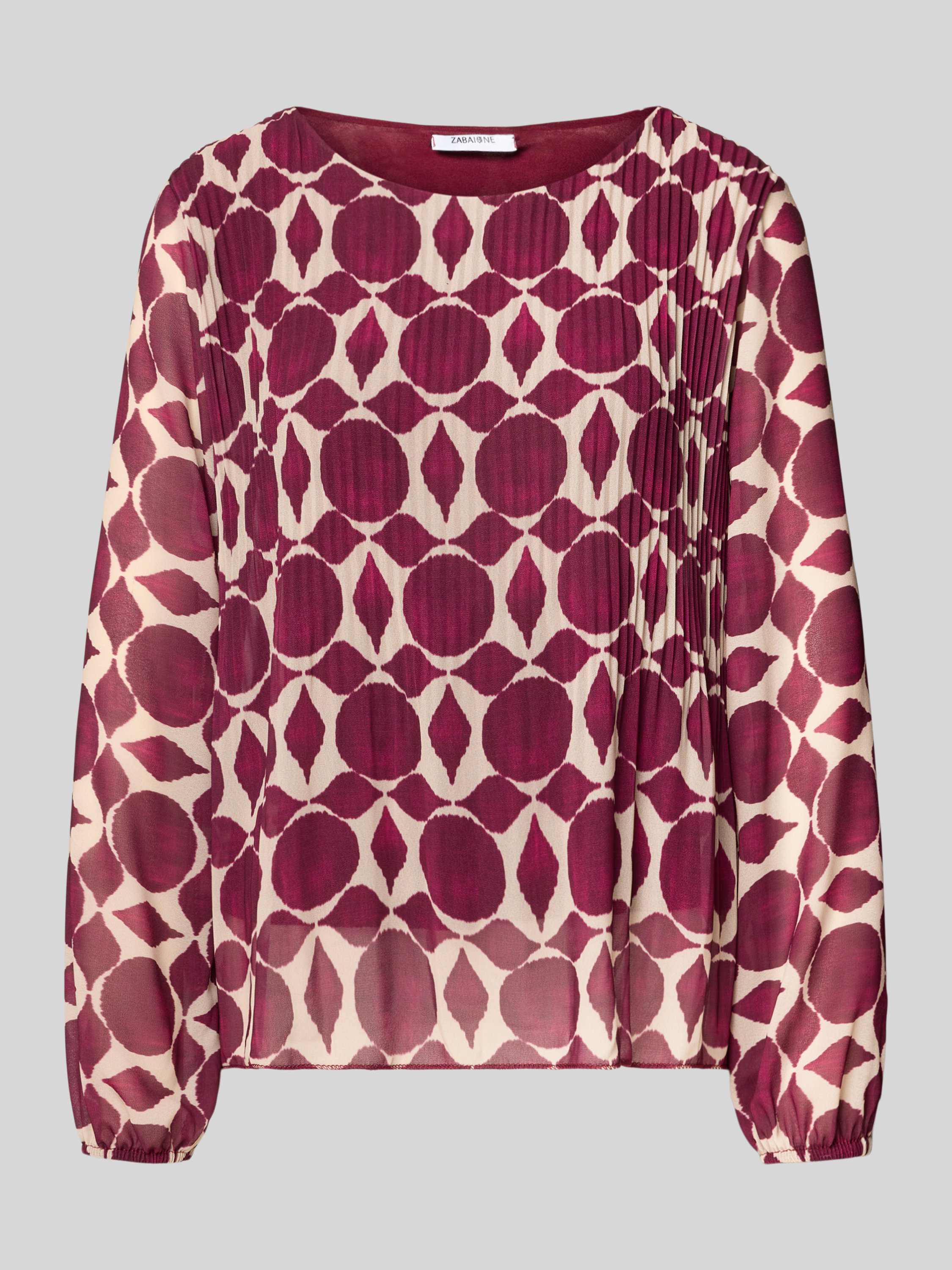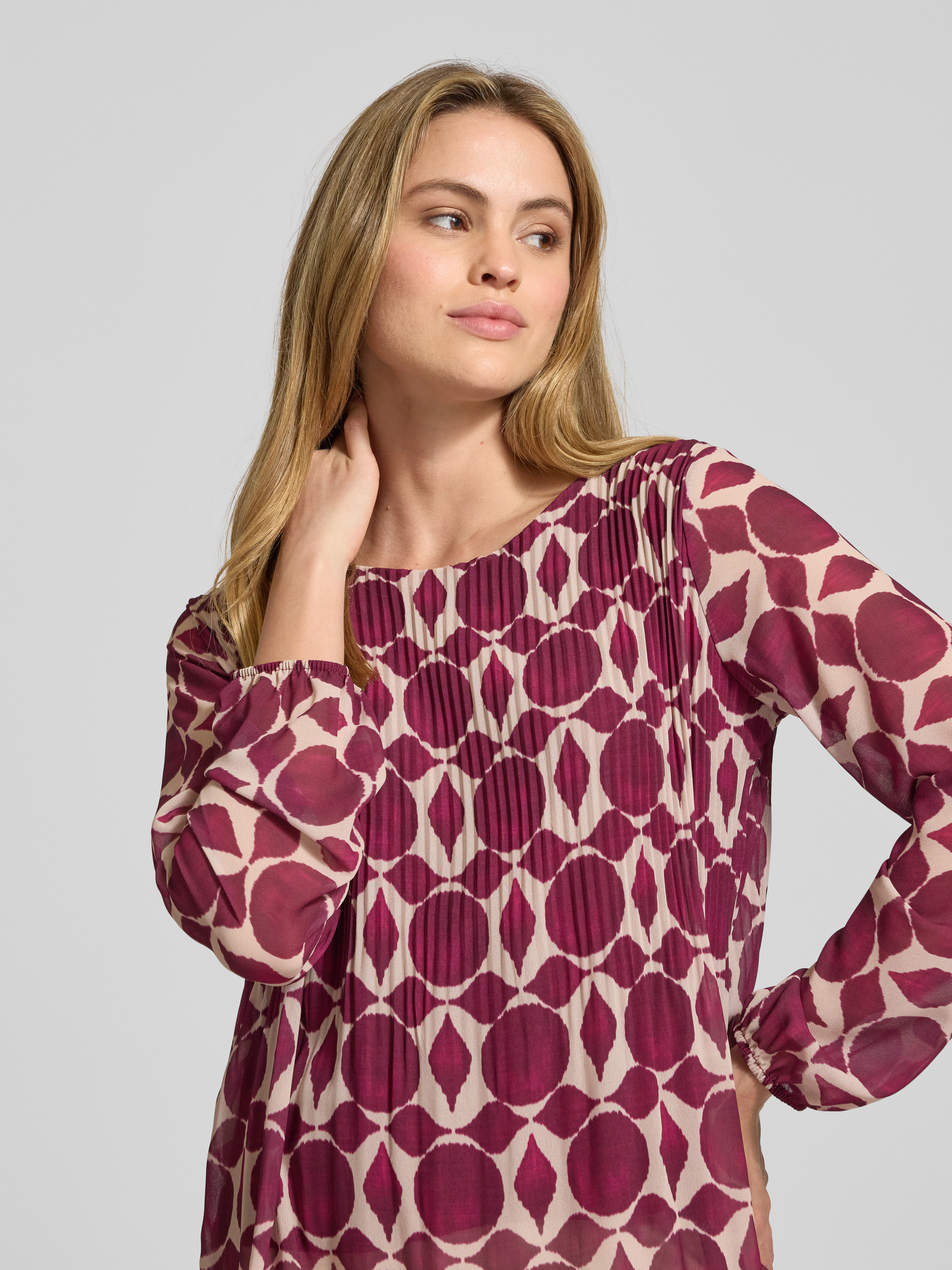 Blouseshirt met ronde hals en plissévouwen in fuchsia