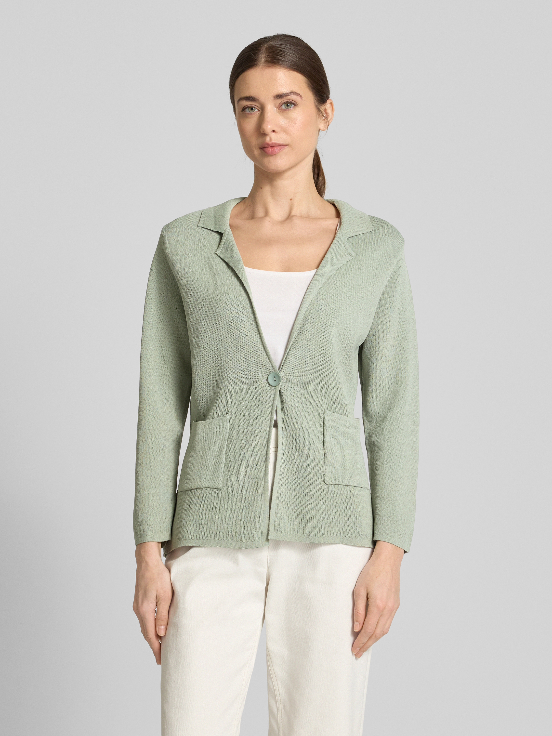 Gebreide cardigan met opgestikte steekzakken in rietgroen