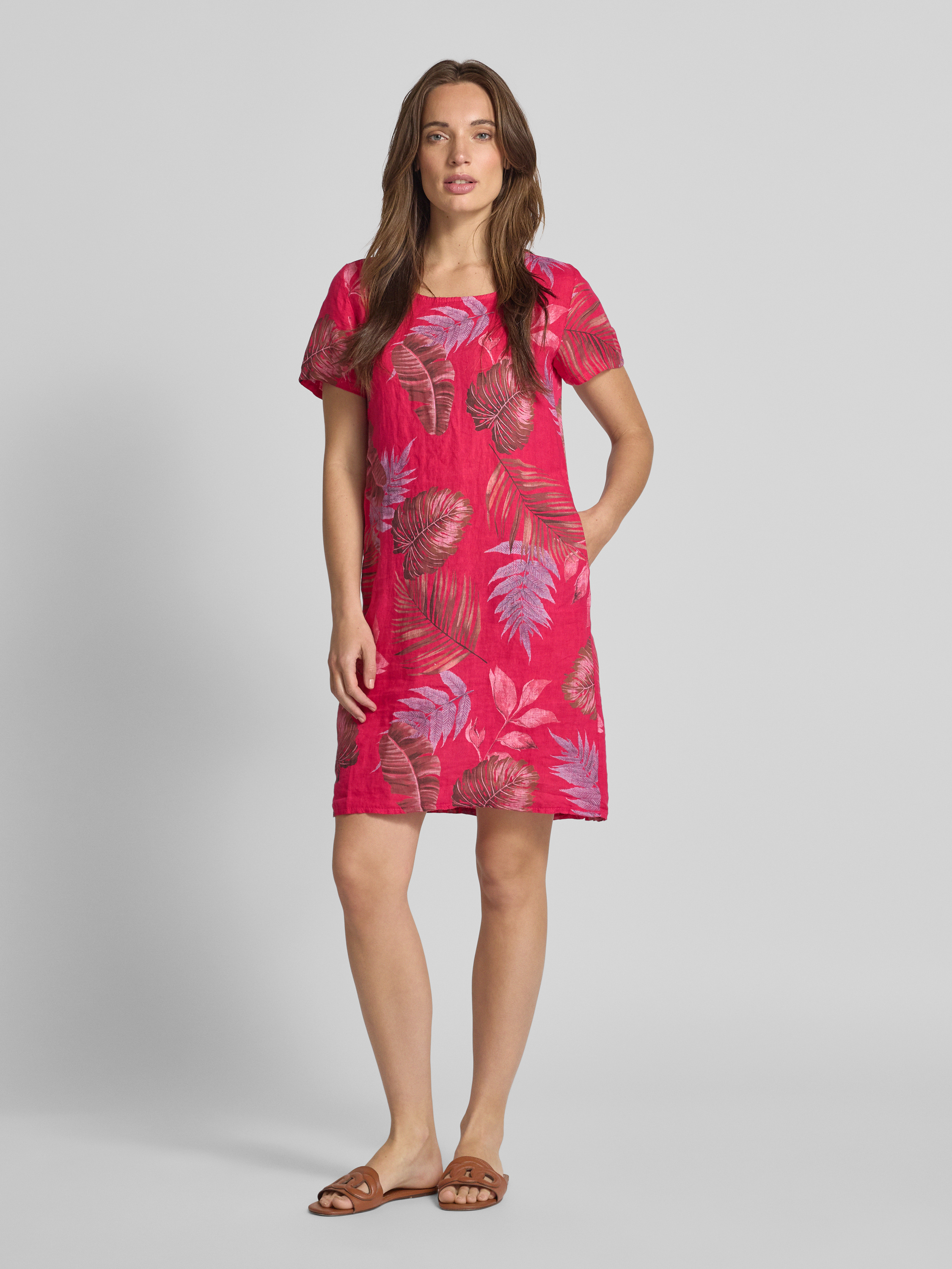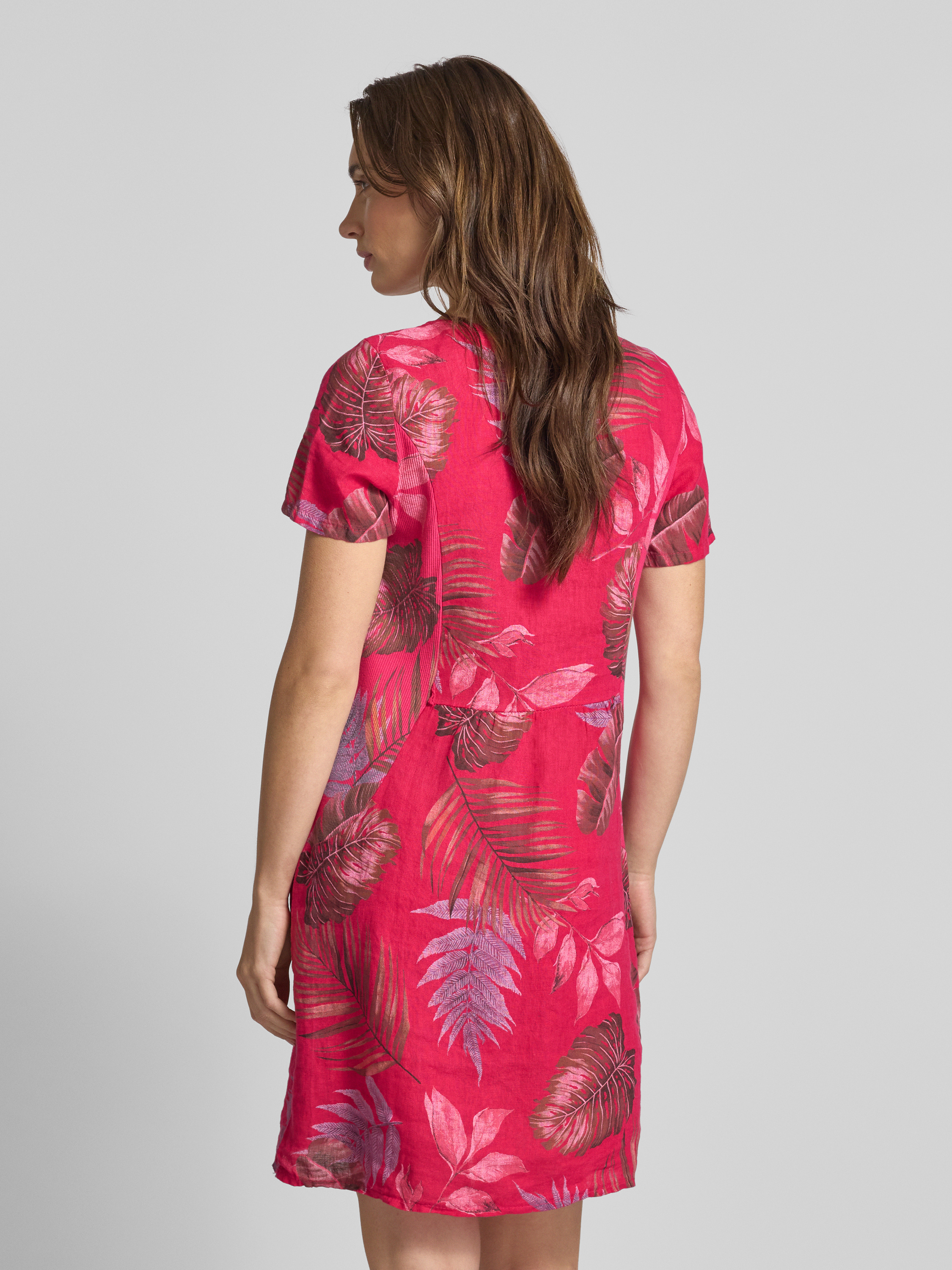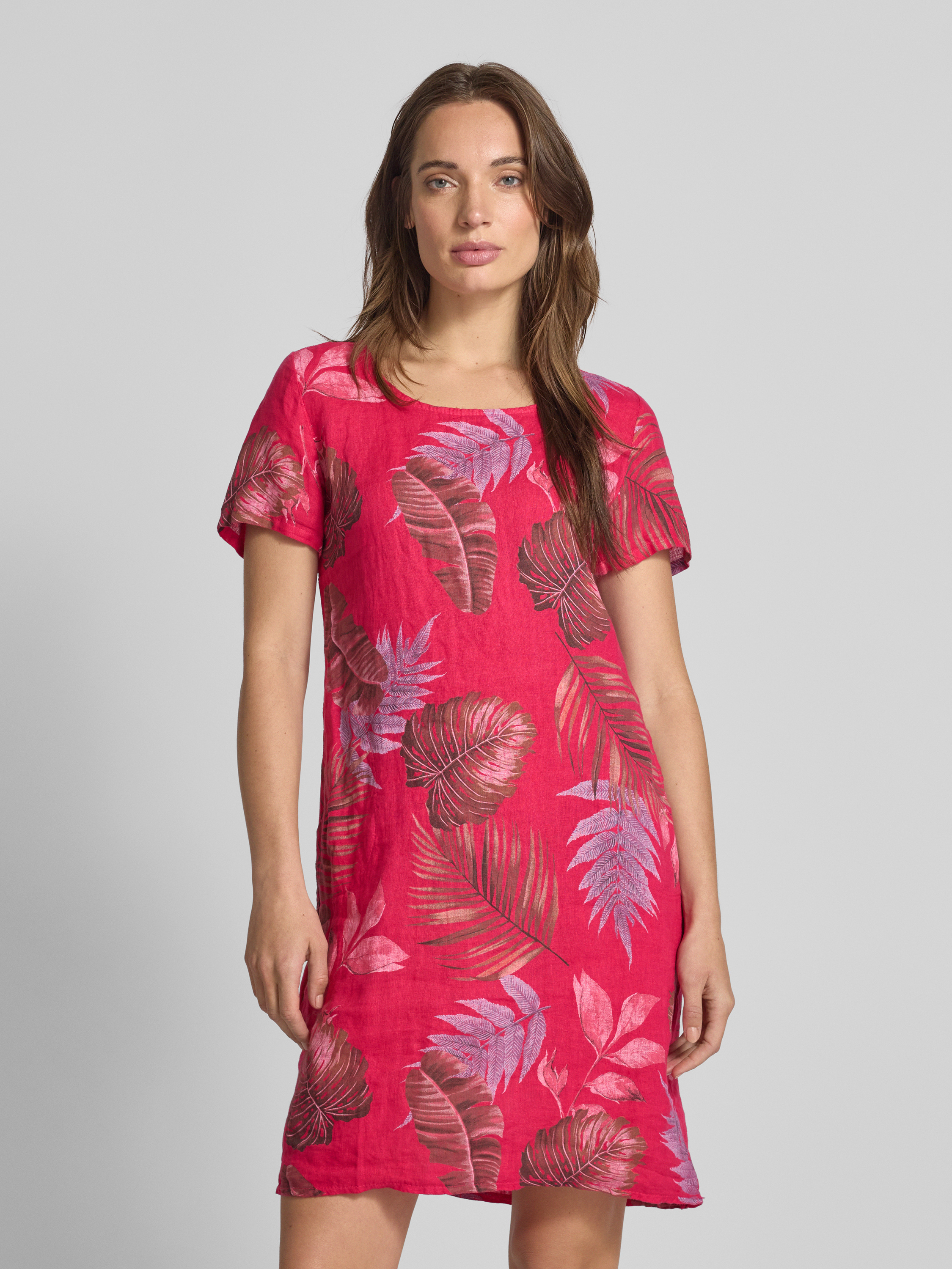 Knielange jurk van lamsshearlingmix met ronde hals in felroze