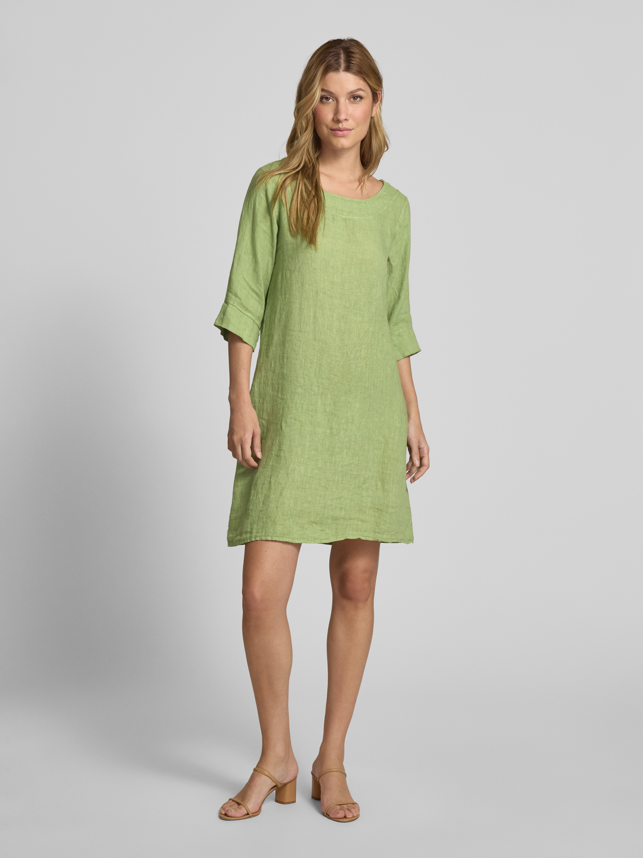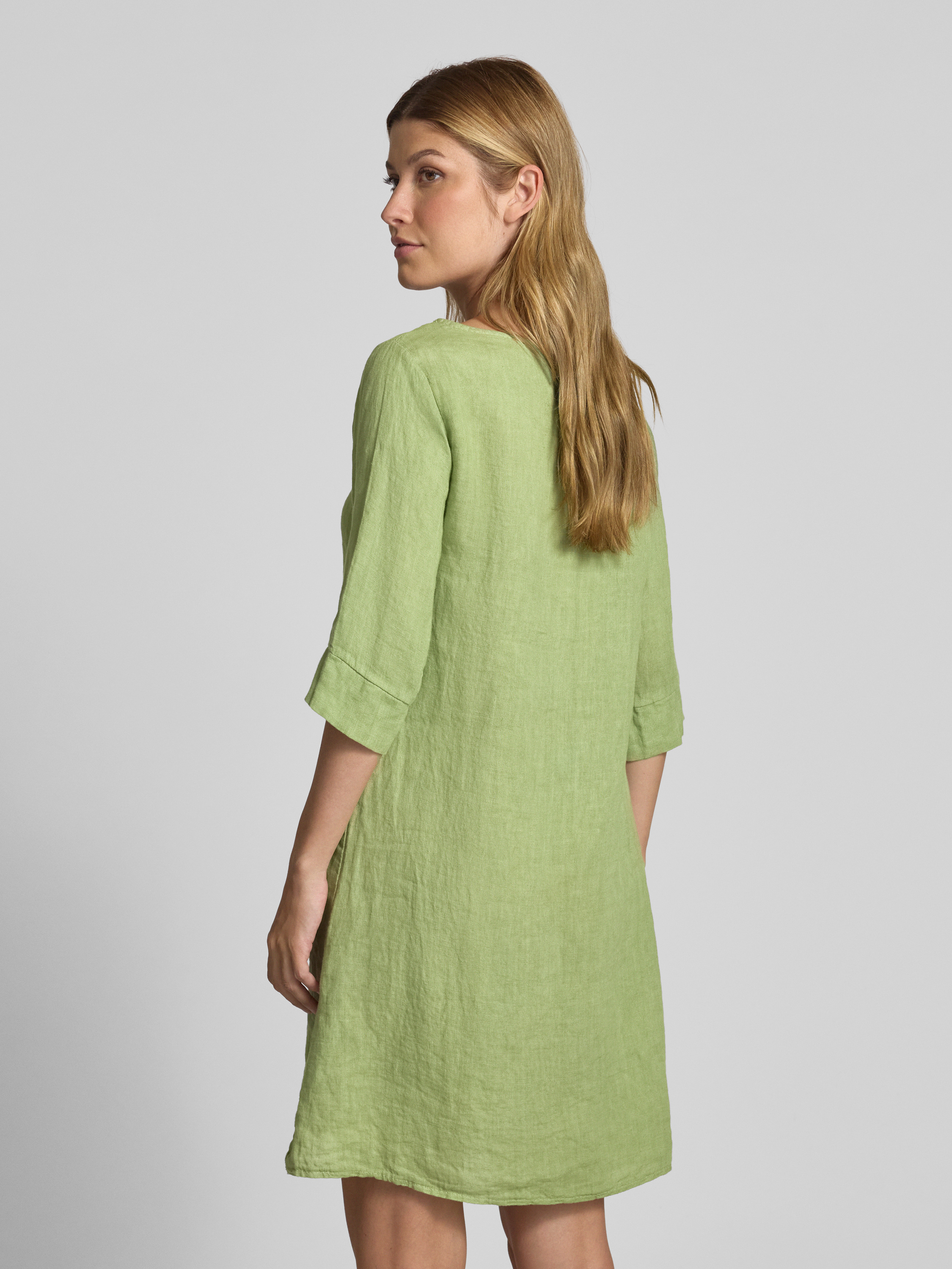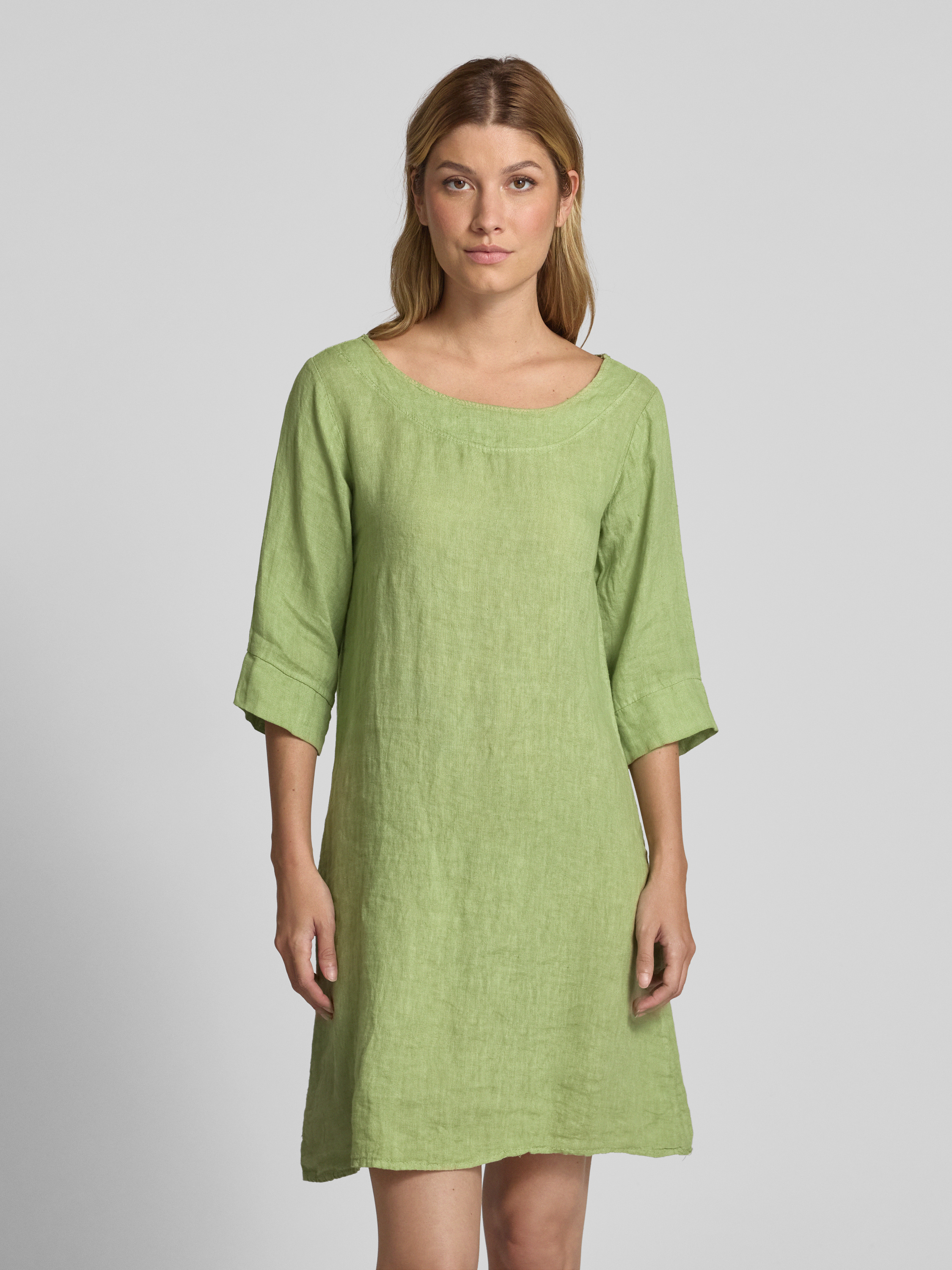 Knielange jurk van puur linnen in lichtgroen