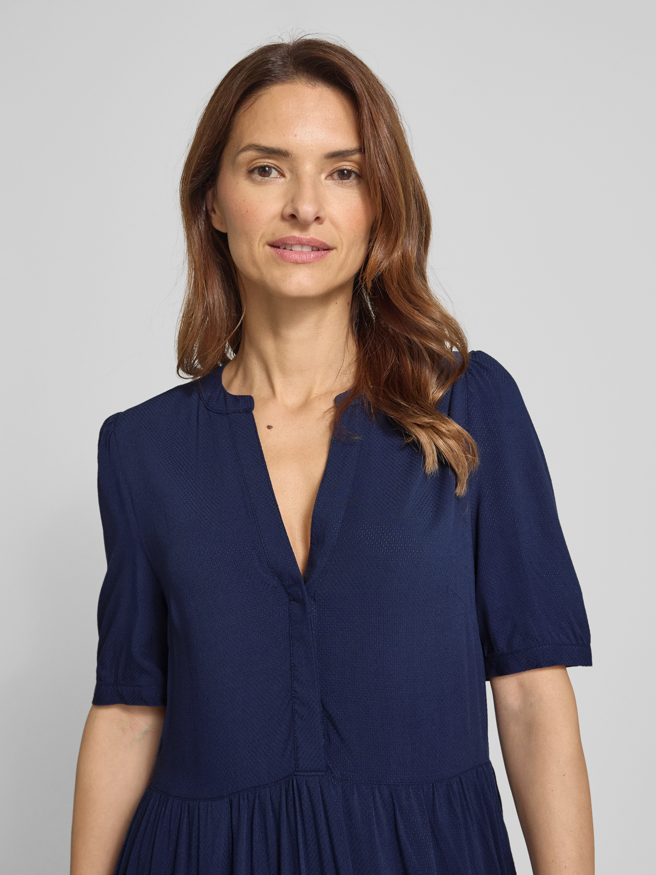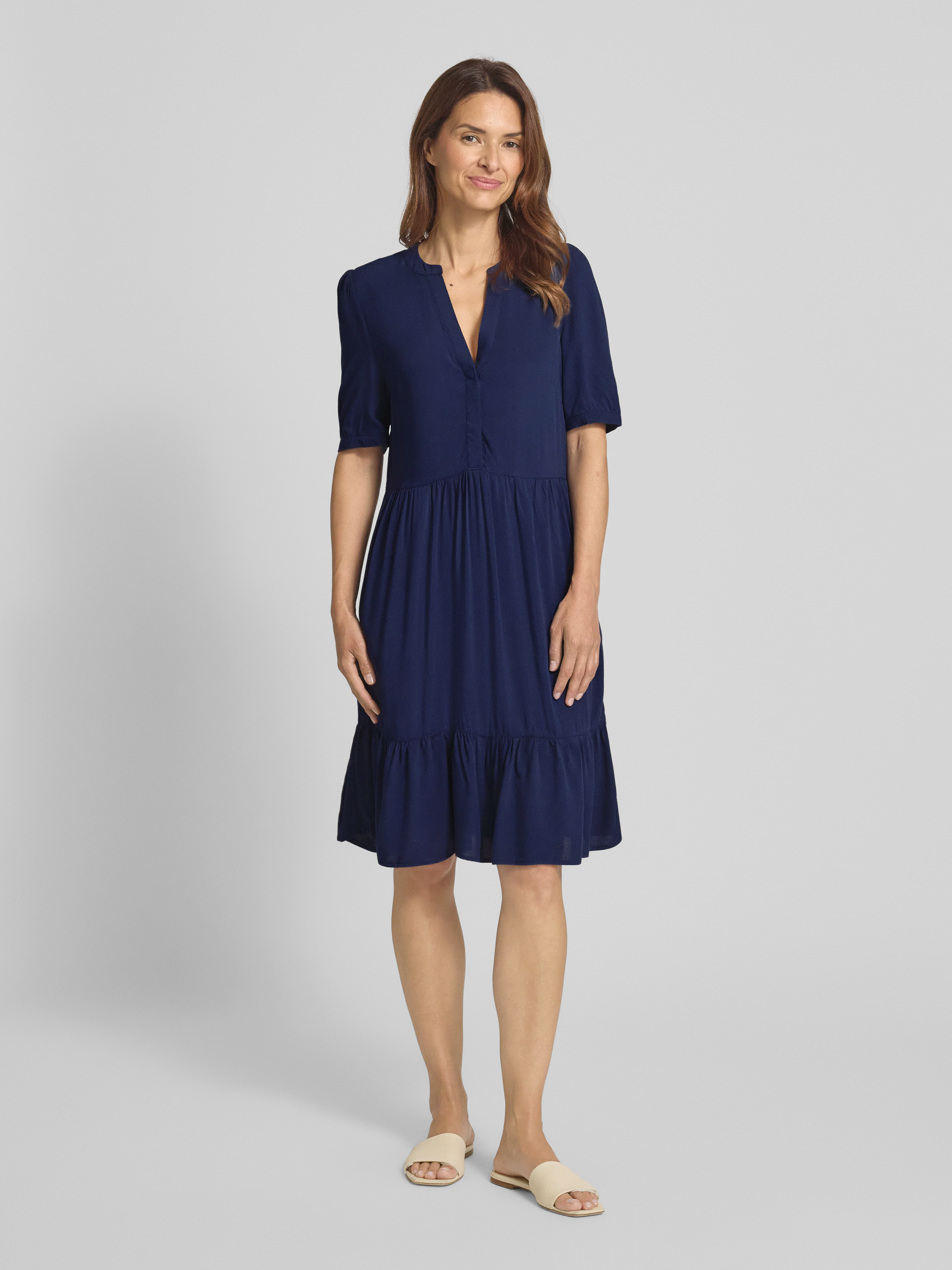 ZABAIONEKnielange jurk van viscose, model 'Am44elia' in marineblauw